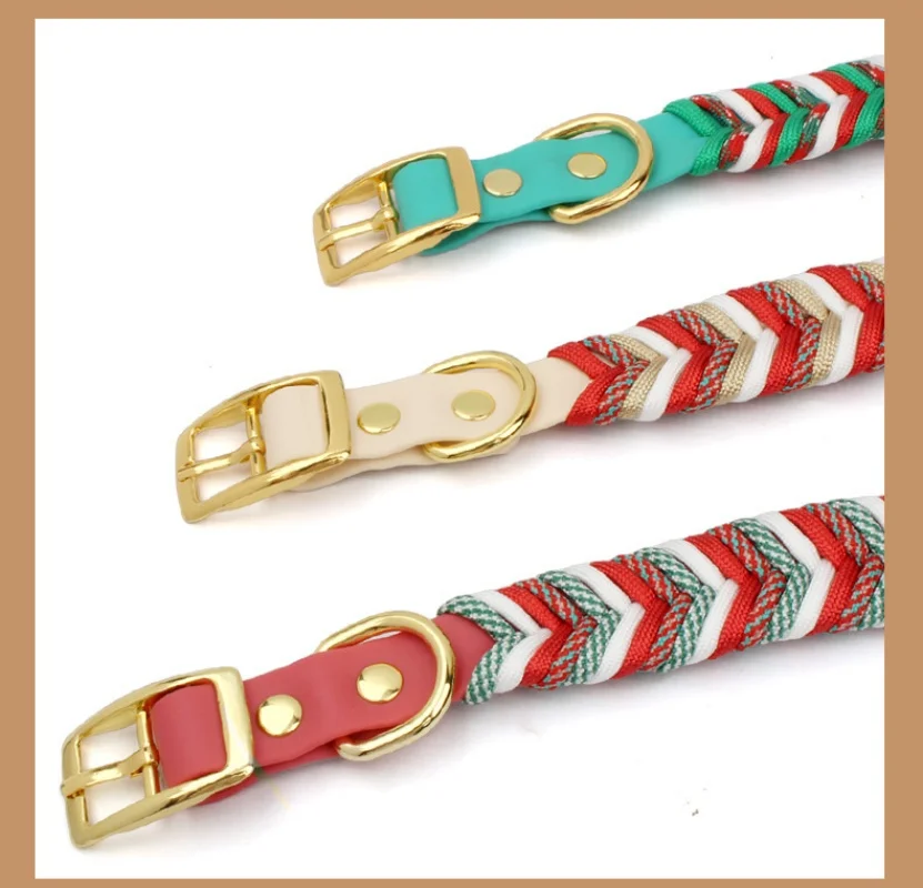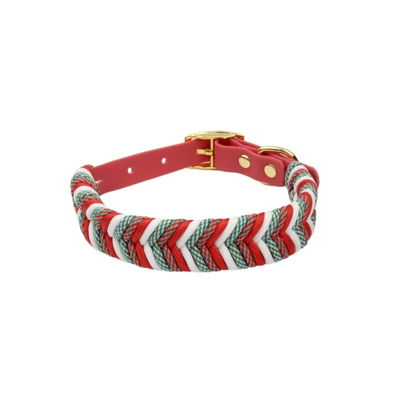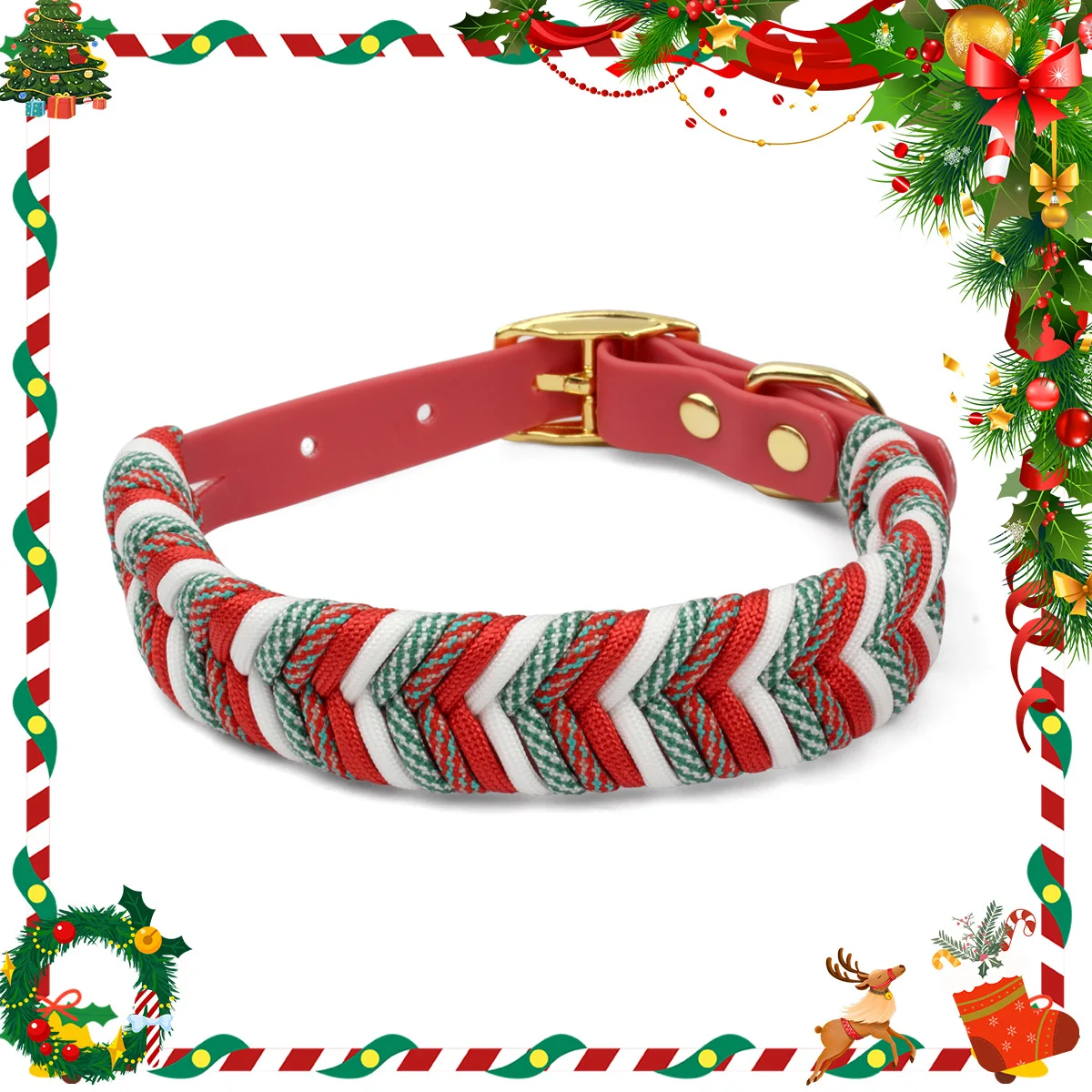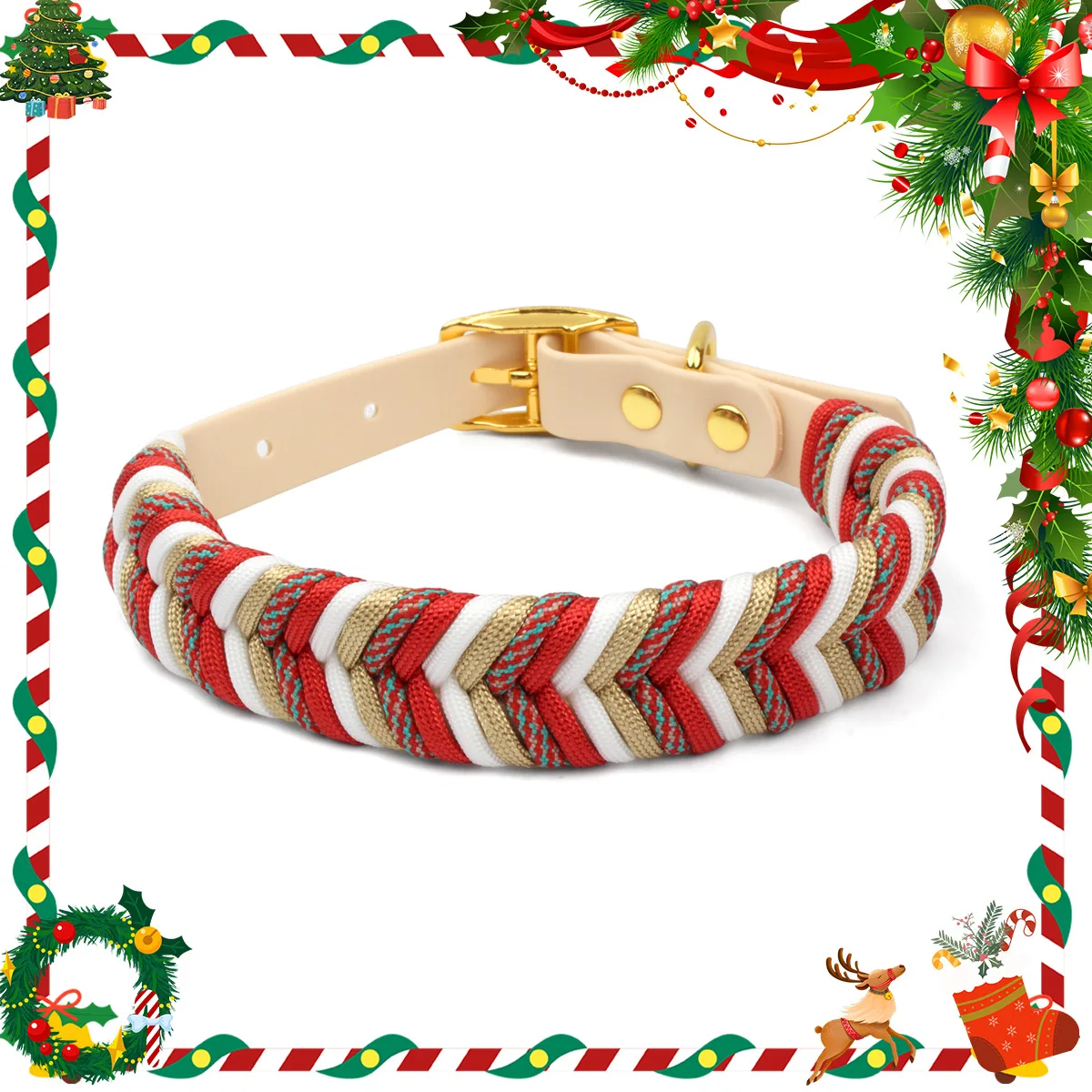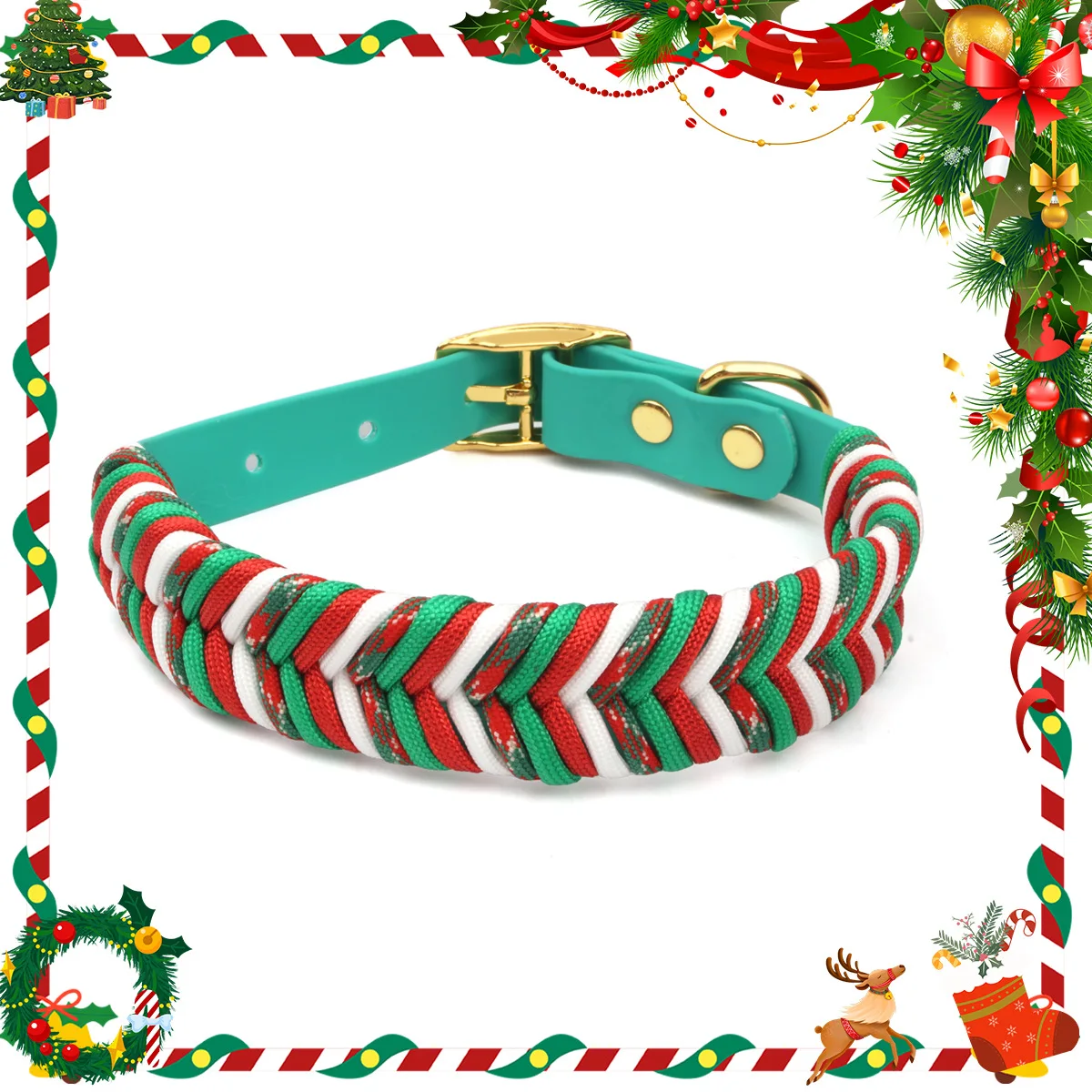 Collar de perro trenzado hecho a mano de Navidad, cuerda de nailon trenzada resistente, Collar de perro para mascotas, Collar ajustable para caminar y entrenar