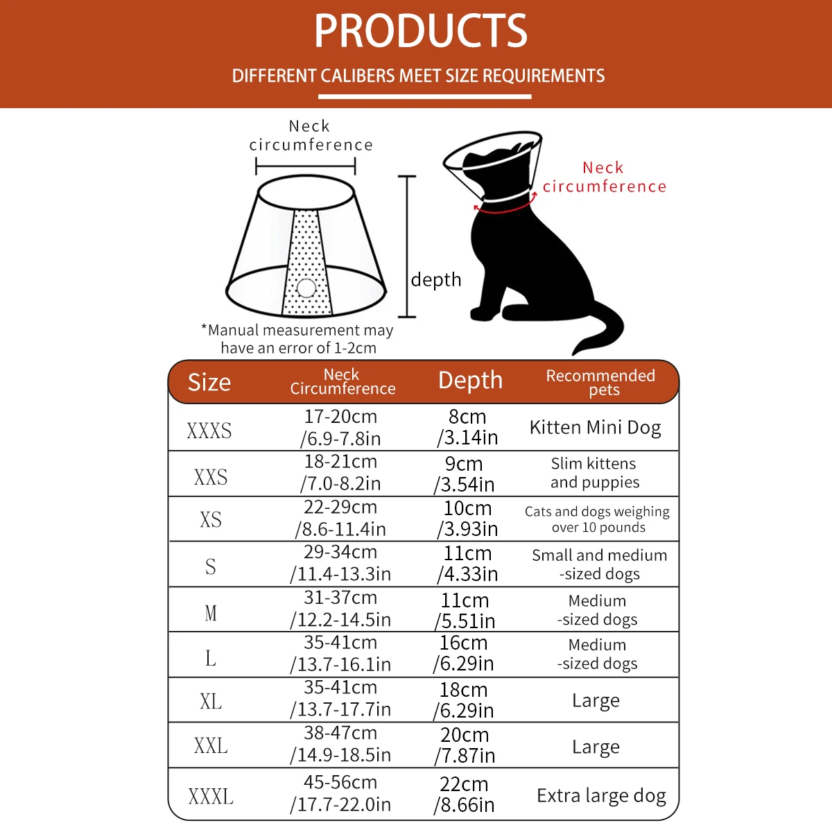 ADECUADO PARA LA MAYORÍA DE GATOS Y PEQUEÑOS: circunferencia del cuello 7,2-9,0 pulgadas, ancho 5,0 pulgadas, el collar elizabético es adecuado para la mayoría de gatos, perros pequeños y mini perros.Diferentes proveedores tienen una guía de tallas diferente, consulte nuestra tabla de tallas antes de realizar el pedido. Si su mascota está cerca del tamaño máximo, puede considerar pedir uno más grande.