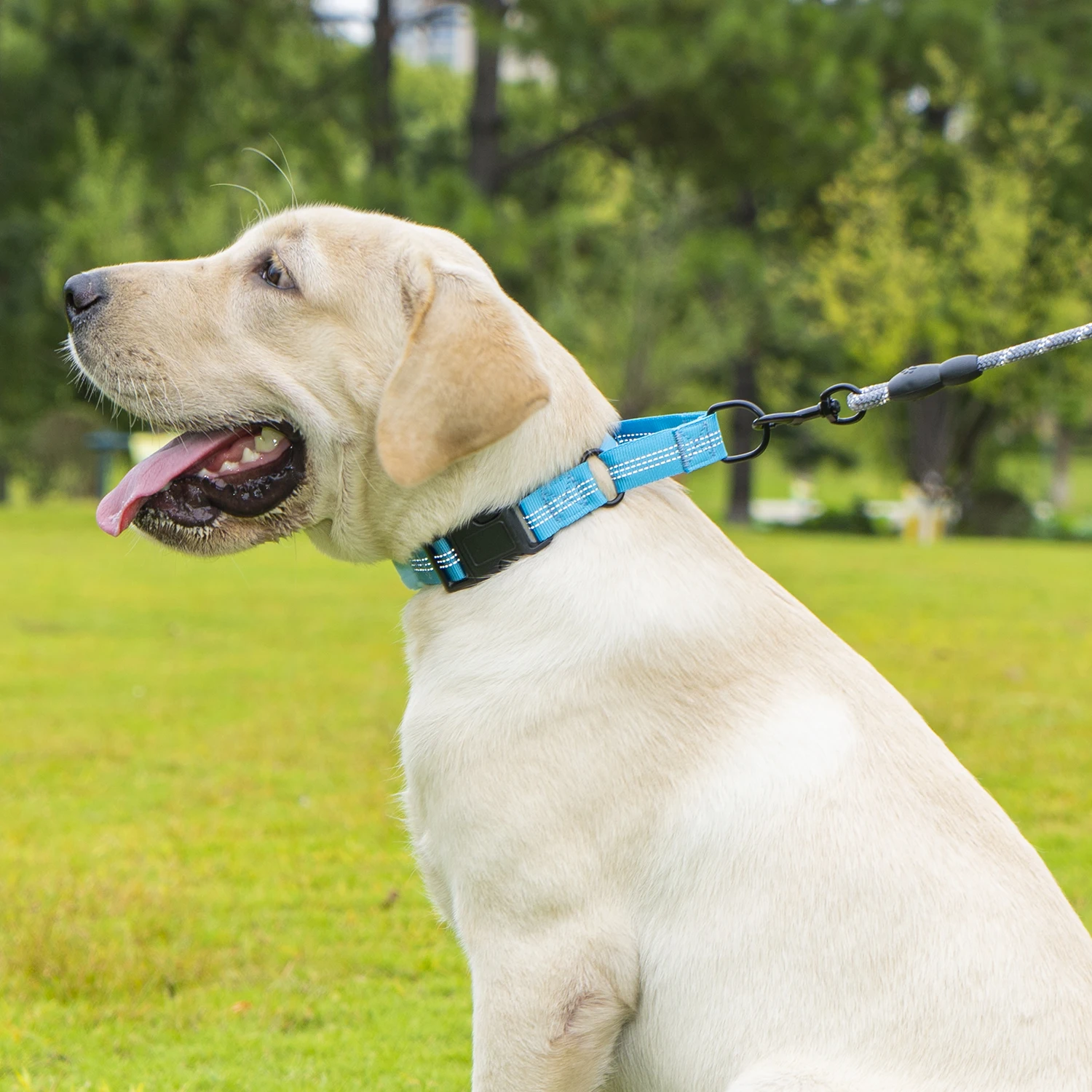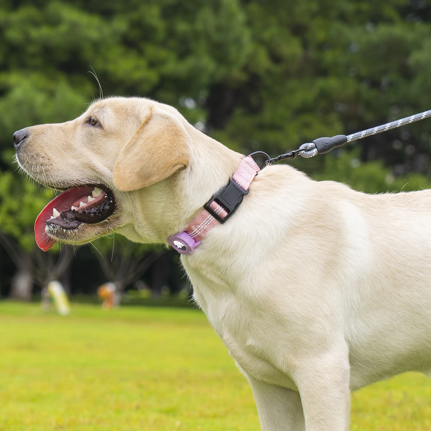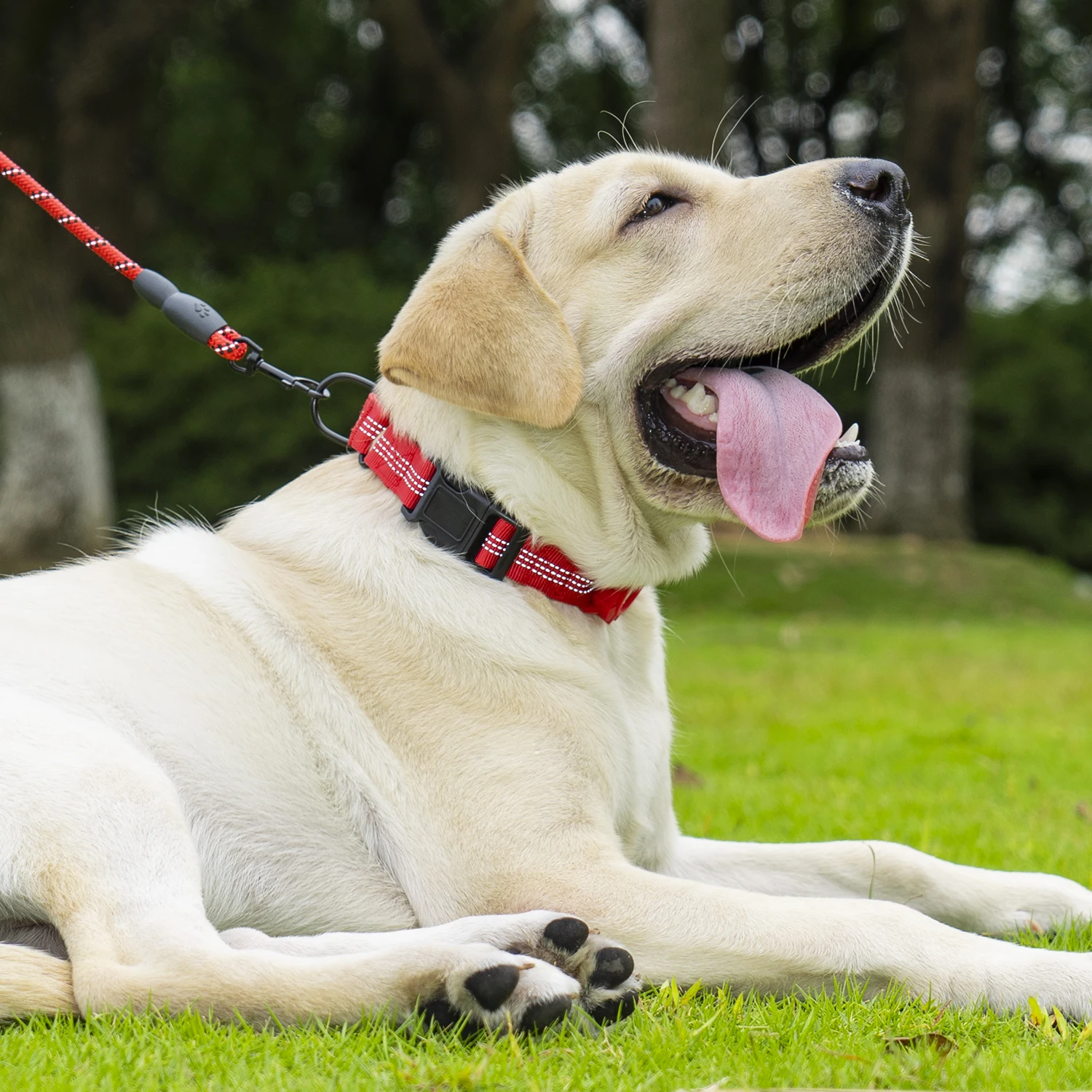 Confeccionado con nailon reflectante, este collar garantiza la seguridad de su perro durante los paseos nocturnos, mejorando la visibilidad.