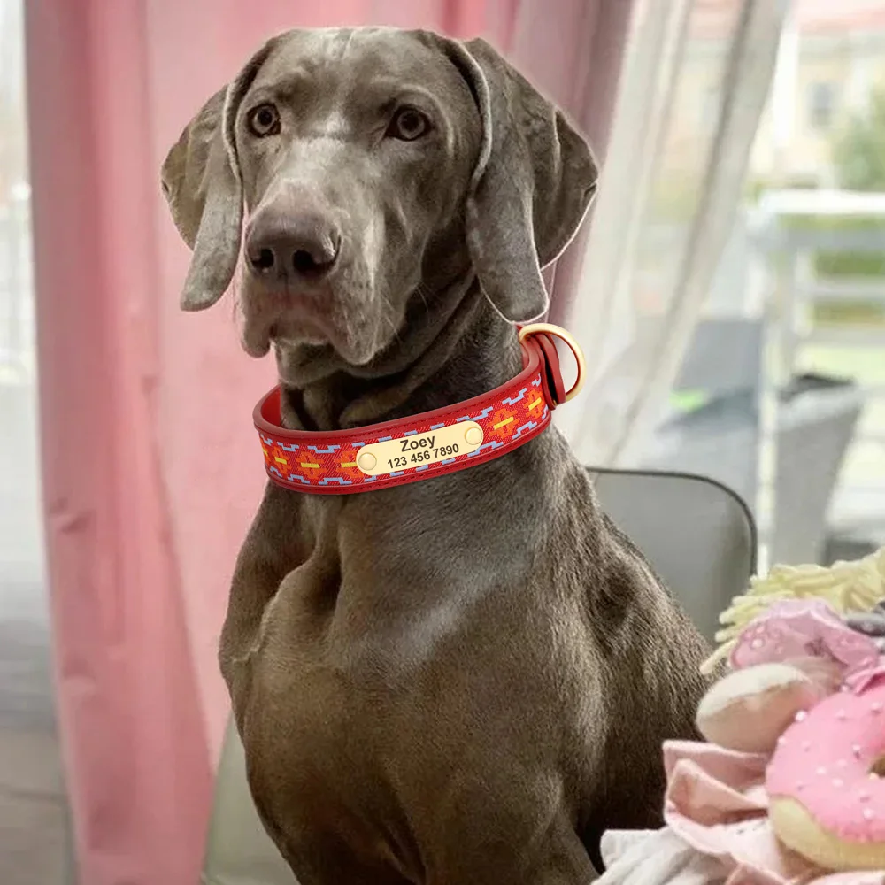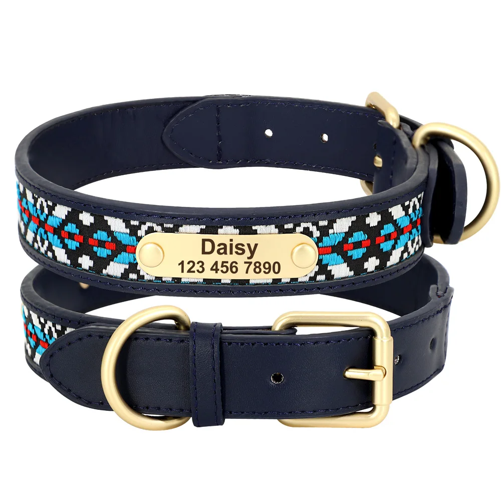 Collar de perro personalizado con bordado étnico, collar de cuero hecho a mano para perros y gatos, collares para perros pequeños, medianos y grandes, suministros para mascotas
