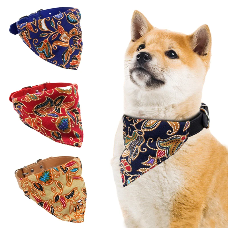 Collar personalizado con corbata para perro, conjunto de vendaje Triangular con estampado, duradero, PU, para perros pequeños y medianos, Yorkshire Shiba Inu
