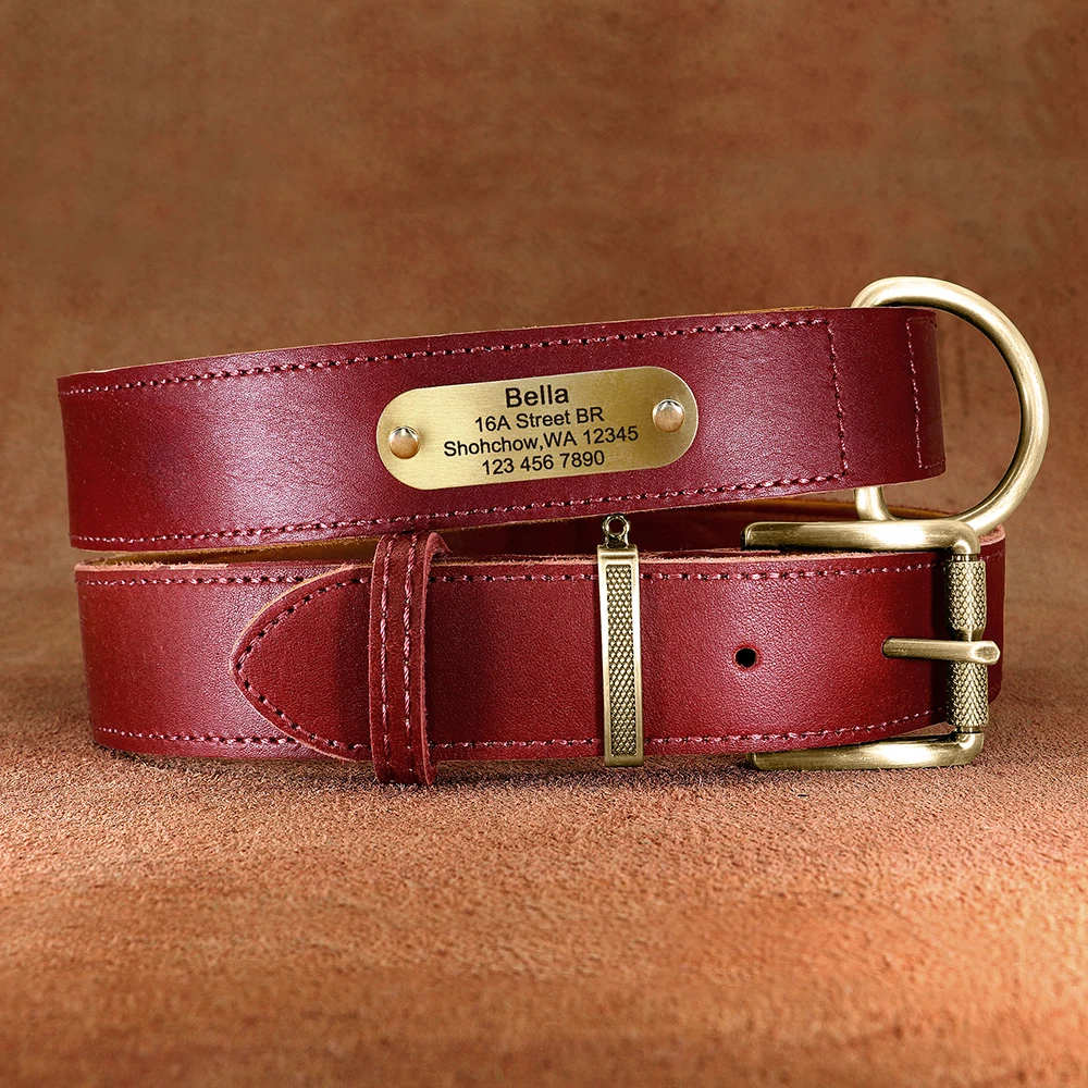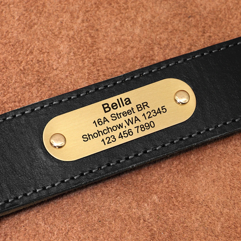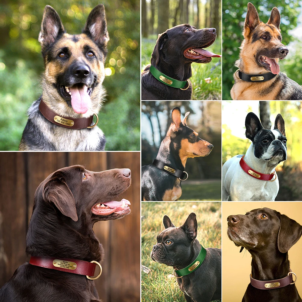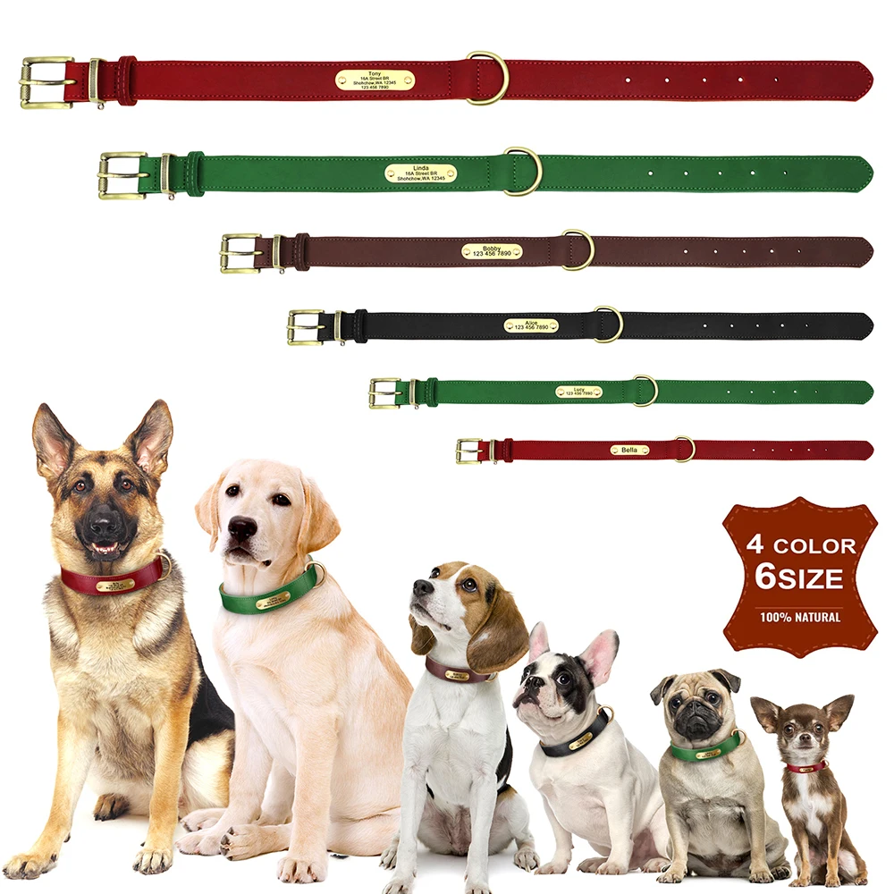 Collar de Cuero Real Personalizado para Perros, Etiqueta de Identificación Grabada, Placa de Nombre Ajustable para Perros Pequeños, Medianos y Grandes