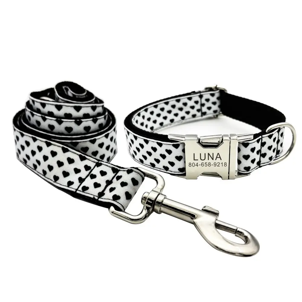 Nombre del producto: Collar personalizado con diseño de corazón para mascotas Etiqueta de identificación personalizada para cachorros Accesorio ajustable para gatos Correa de collares básicos negros para perros