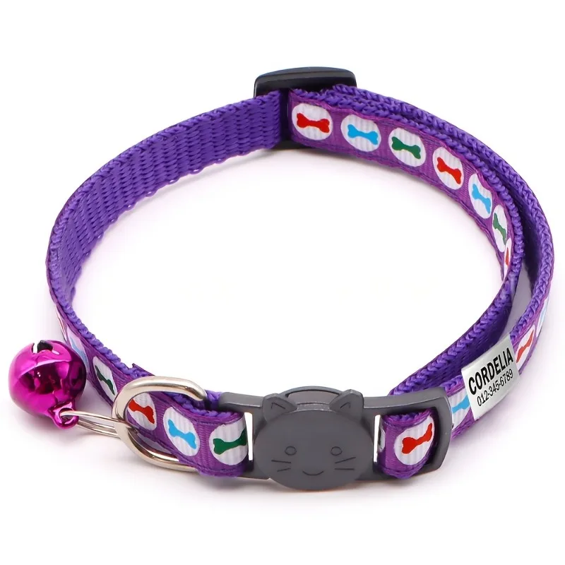 Collar personalizado con etiqueta con nombre de mascota para gato, con campana, hueso de dibujos animados, perro, cachorro, gatito, Collar de seguridad ajustable, joyería para gato