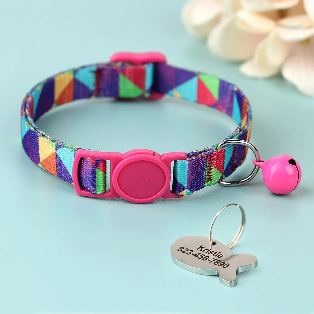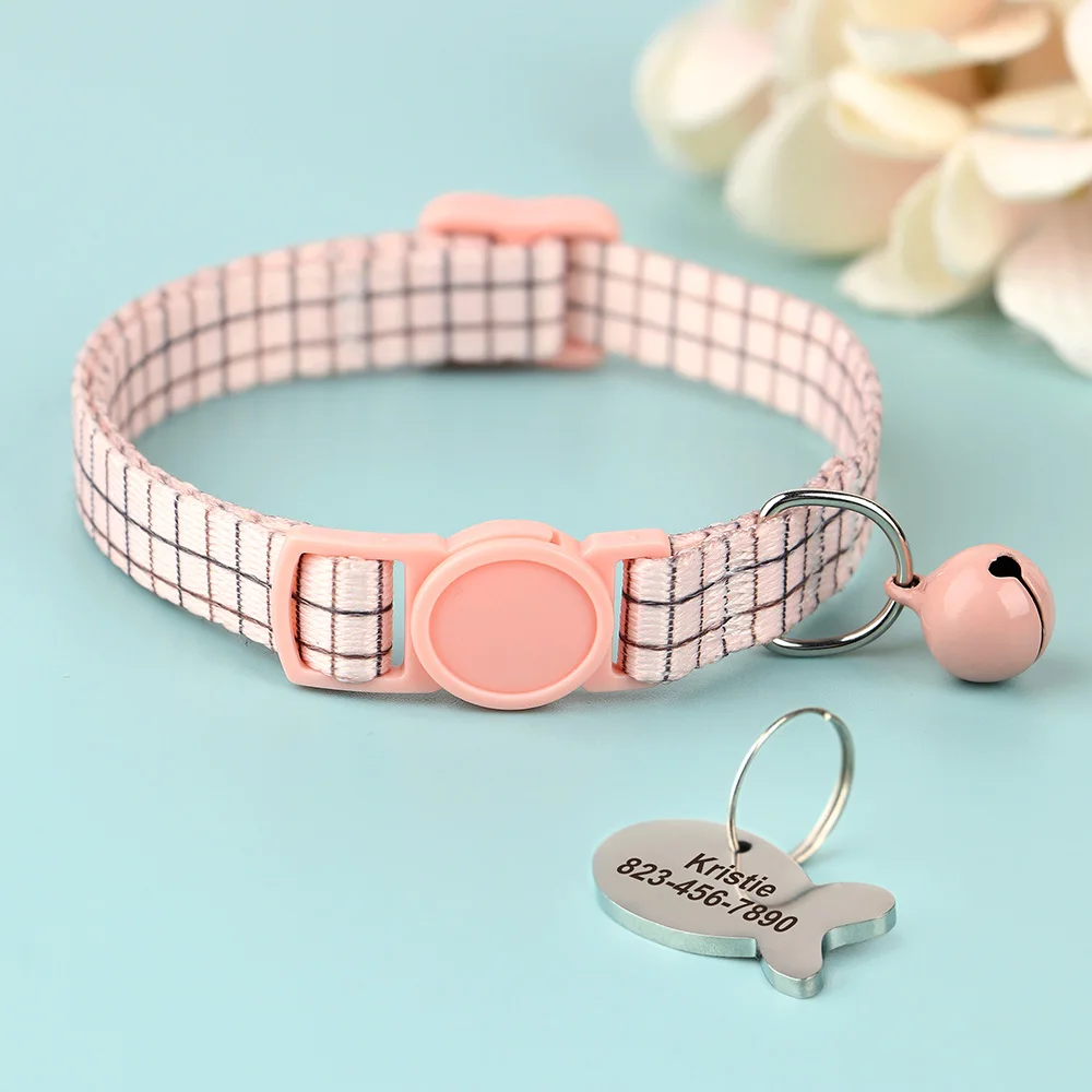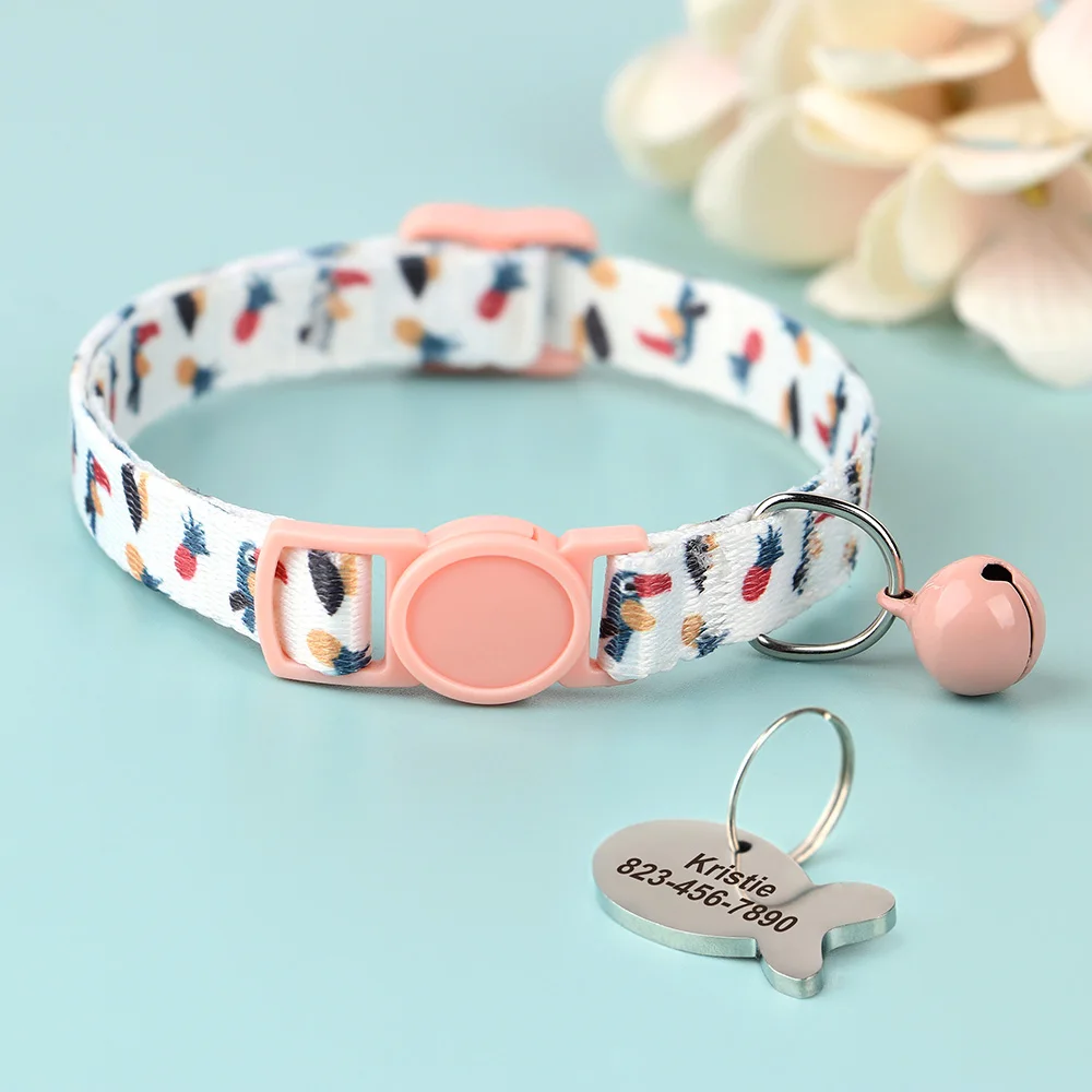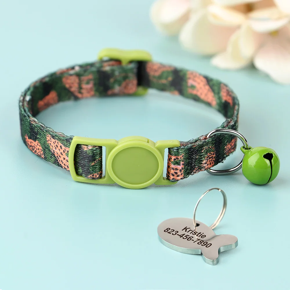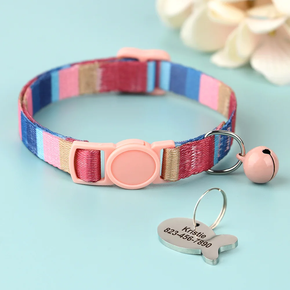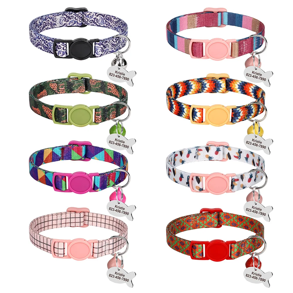 Collar personalizado para gatos, collares para gatitos y cachorros de liberación rápida, collar ajustable para mascotas con etiqueta de identificación grabada, campana para perros pequeños y gatos