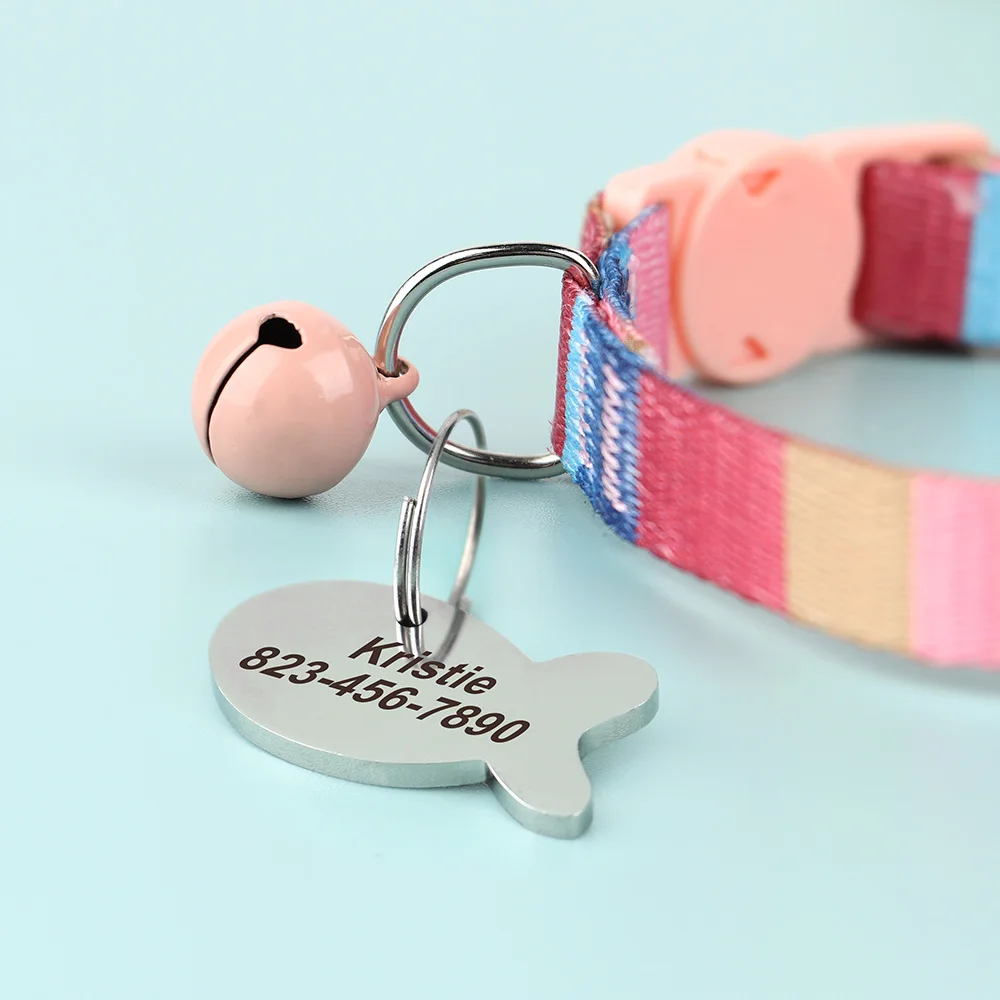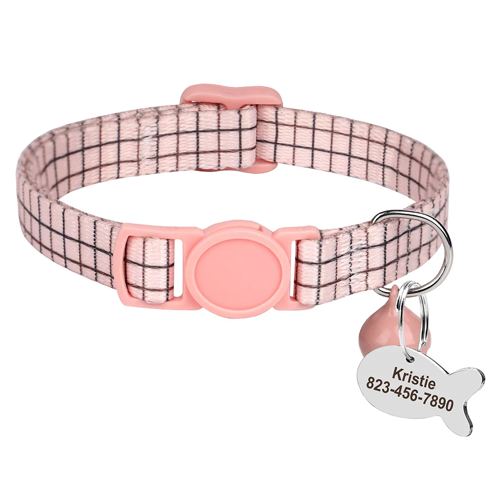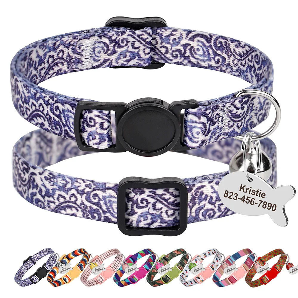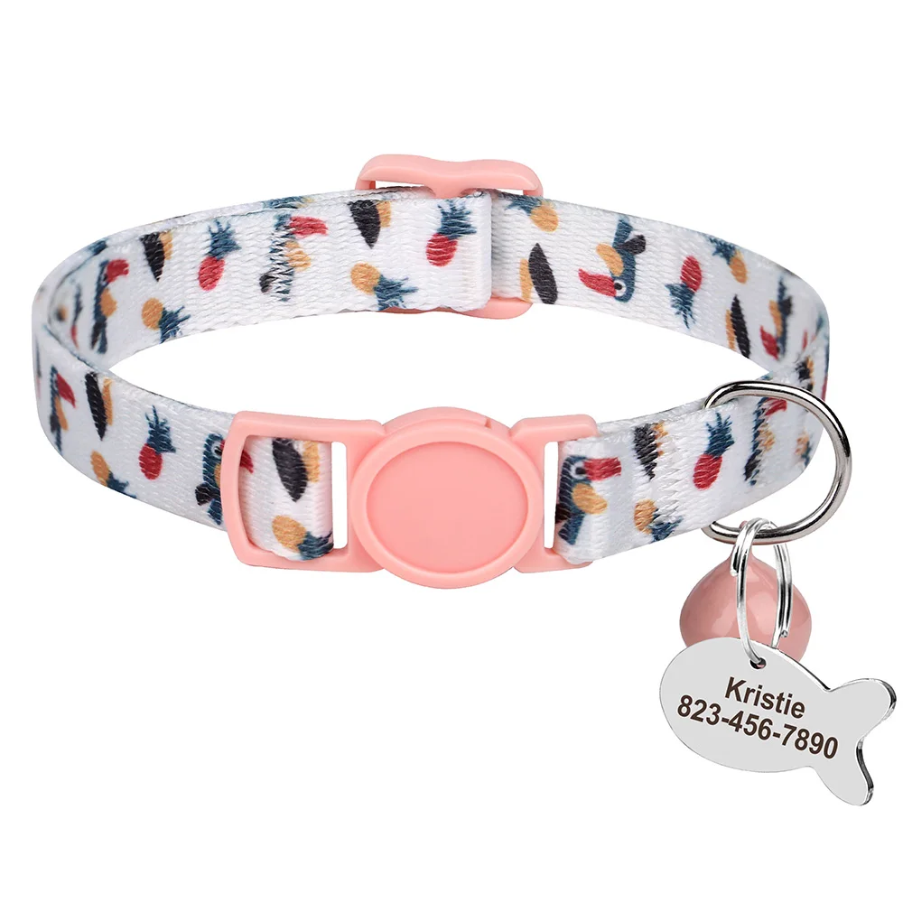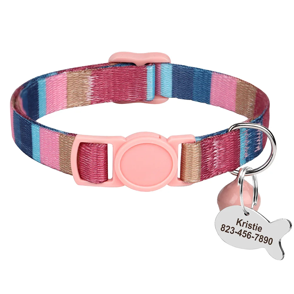 Collar personalizado para gatos, collares para gatitos y cachorros de liberación rápida, collar ajustable para mascotas con etiqueta de identificación grabada, campana para perros pequeños y gatos