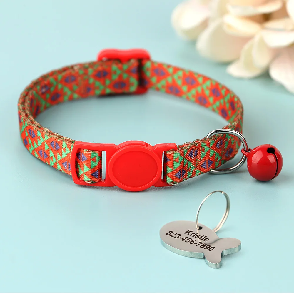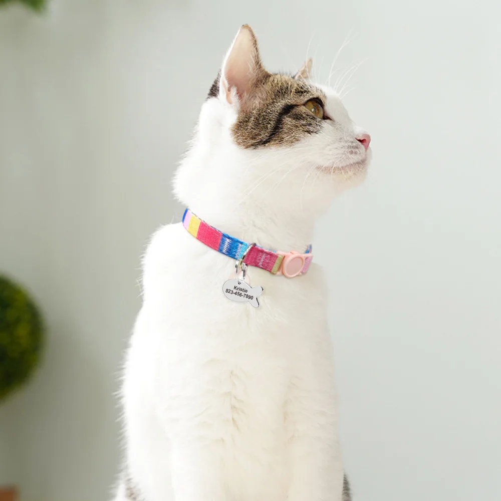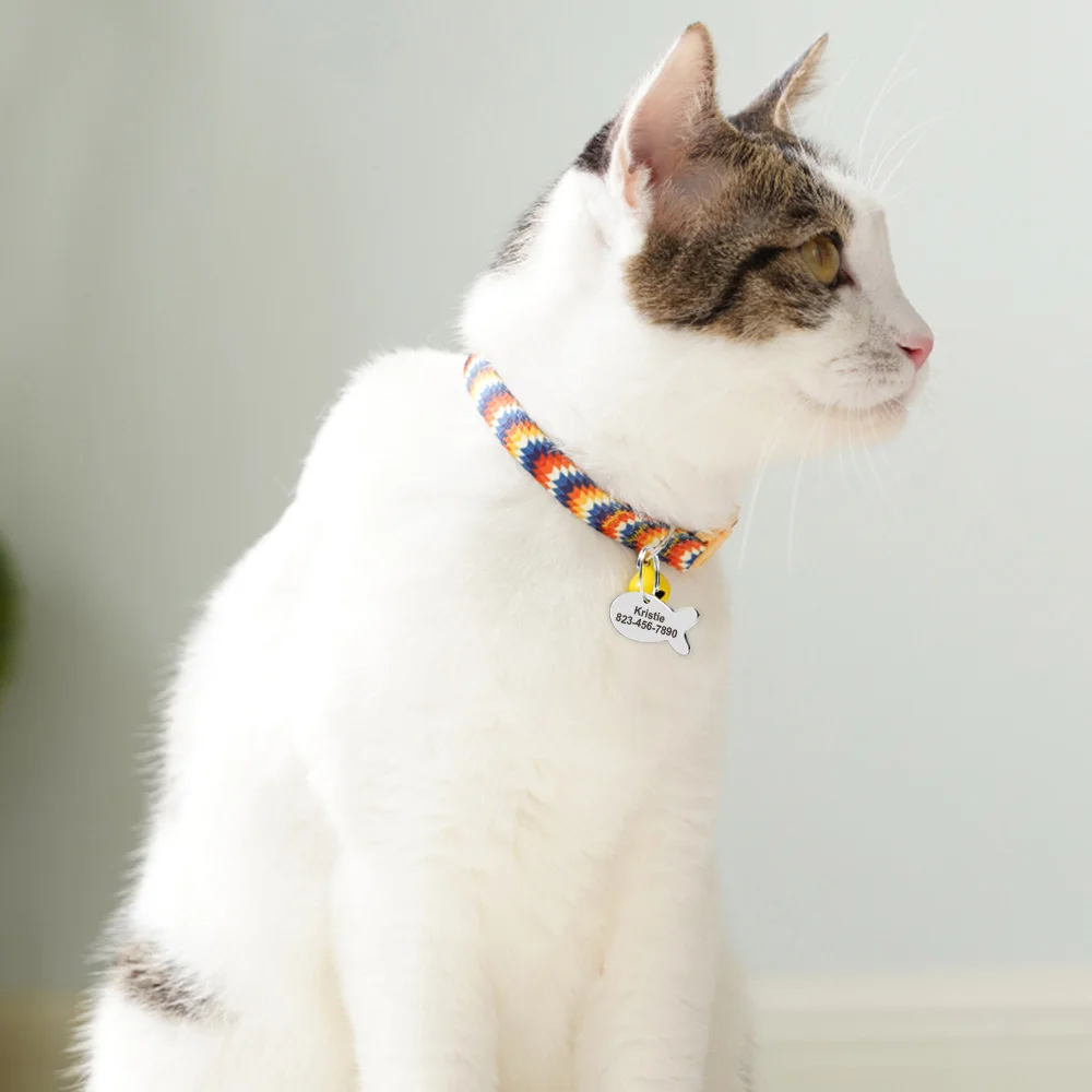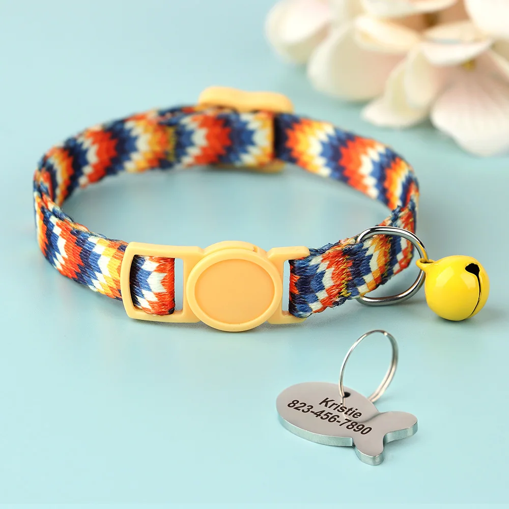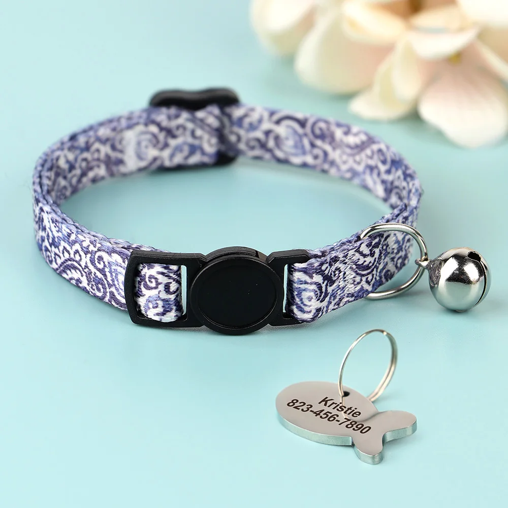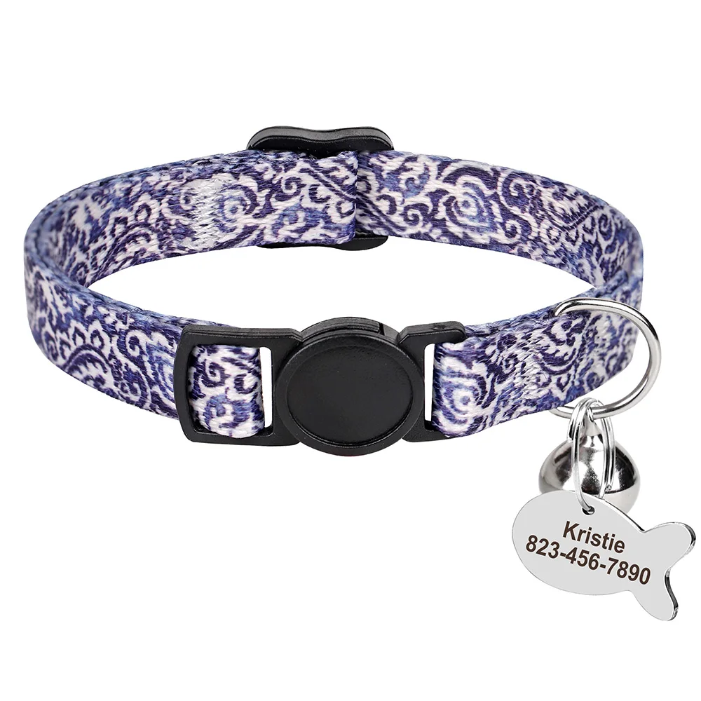 Collar personalizado para gatos, collares para gatitos y cachorros de liberación rápida, collar ajustable para mascotas con etiqueta de identificación grabada, campana para perros pequeños y gatos