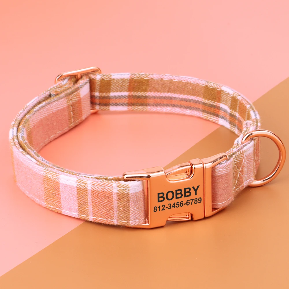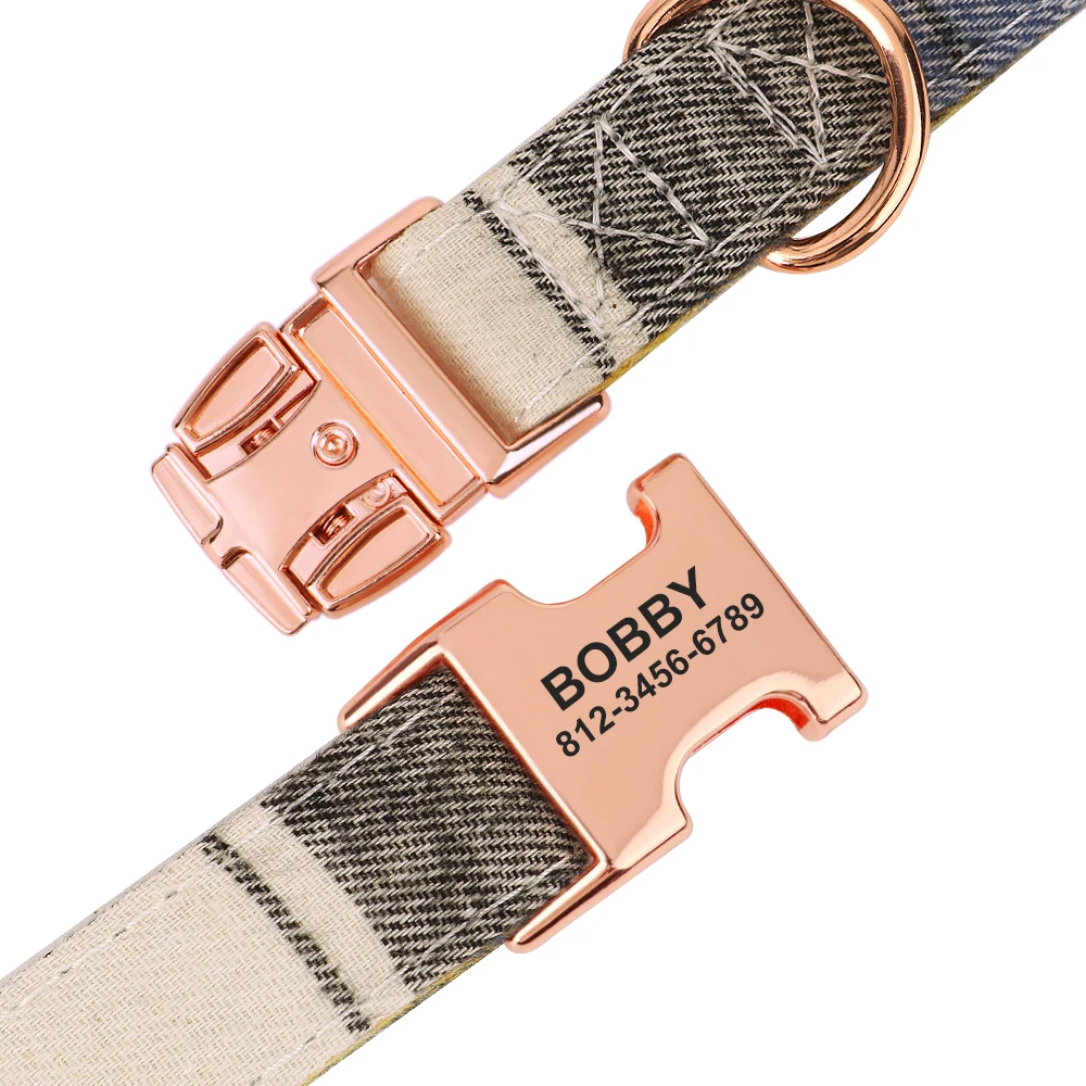 Collar de perro con lazo personalizado, collares de perro a cuadros de nailon, collar de placa de identificación de mascota personalizado grabado gratis para perros pequeños, medianos y grandes