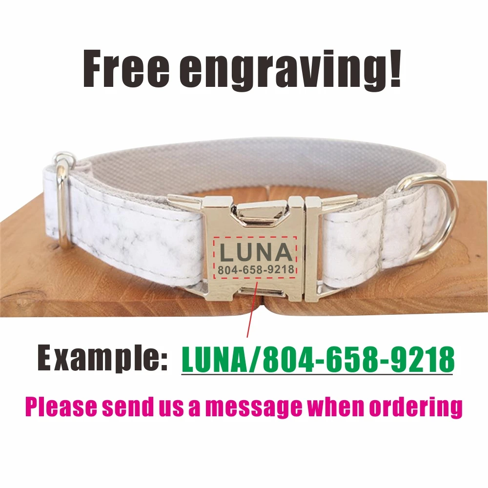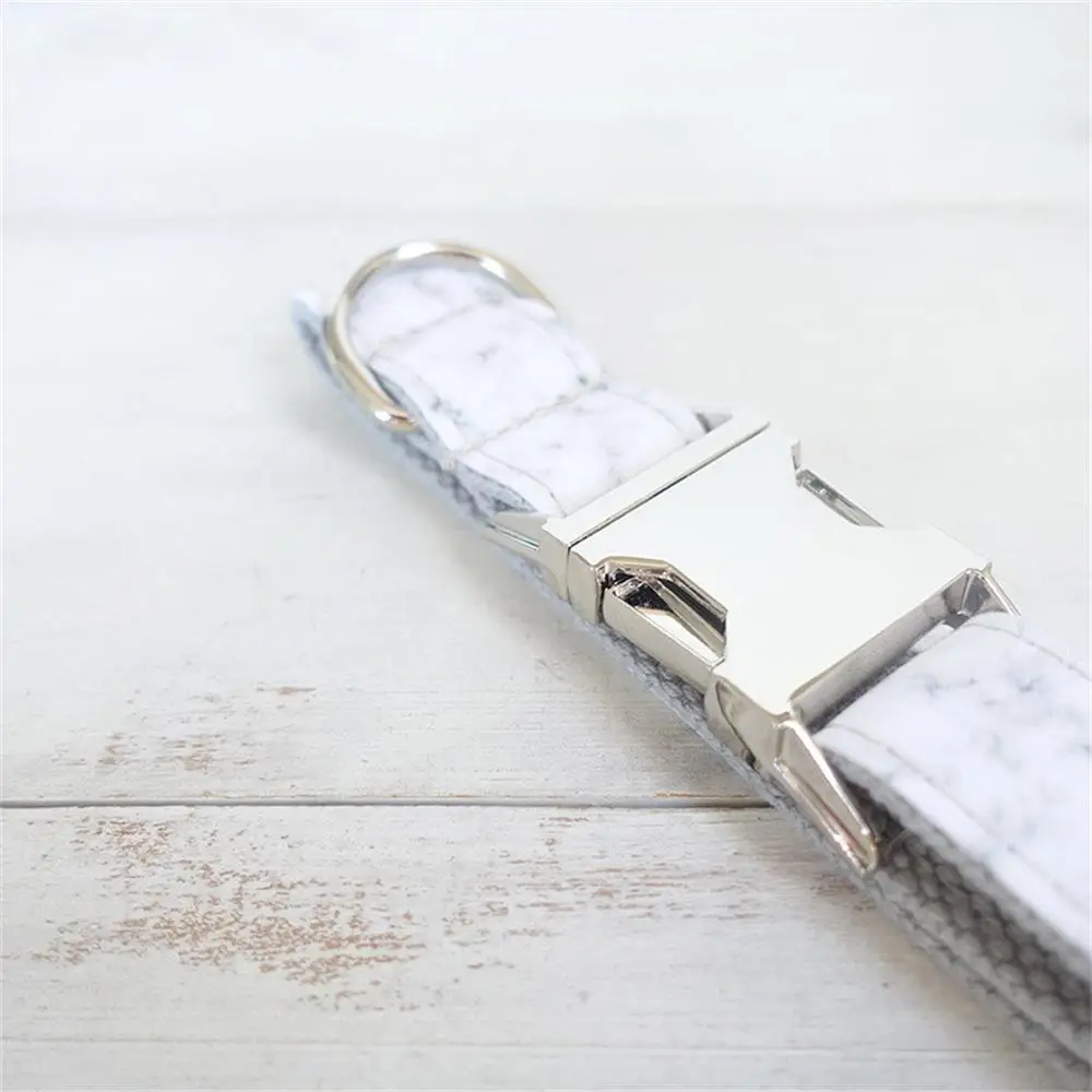 Nombre del producto: Collar para mascotas de mármol blanco personalizado Etiqueta de identificación para cachorros personalizada Accesorio ajustable para gatos Juego de correas para collares básicos para perros