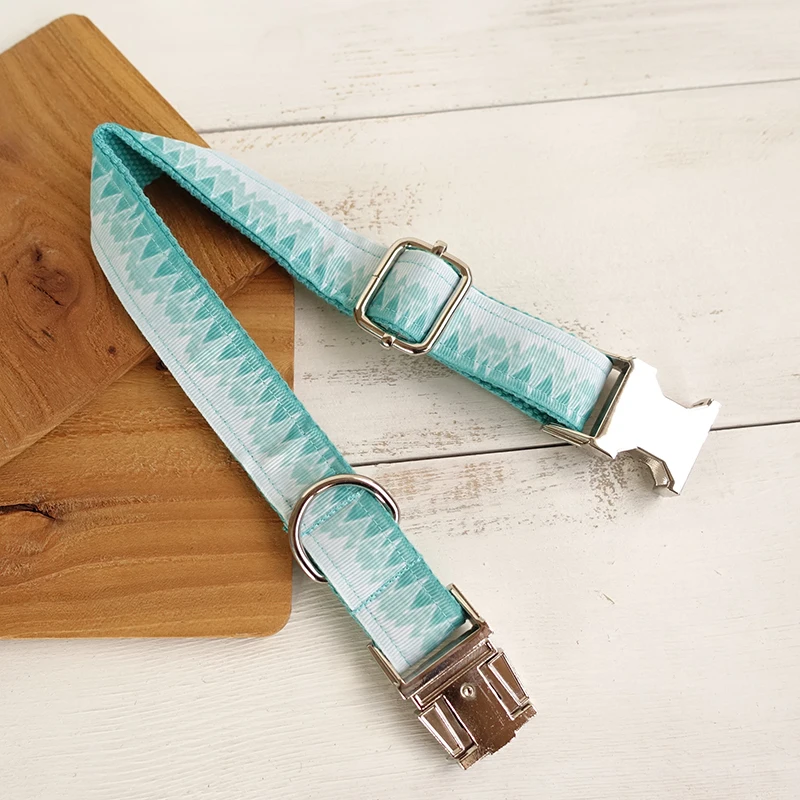 Nombre del producto: Collar personalizado para mascotas, placa de identificación personalizada, etiqueta de identificación ajustable, bosque azul, montaña, gato, collares para perros, conjunto de correa de plomo