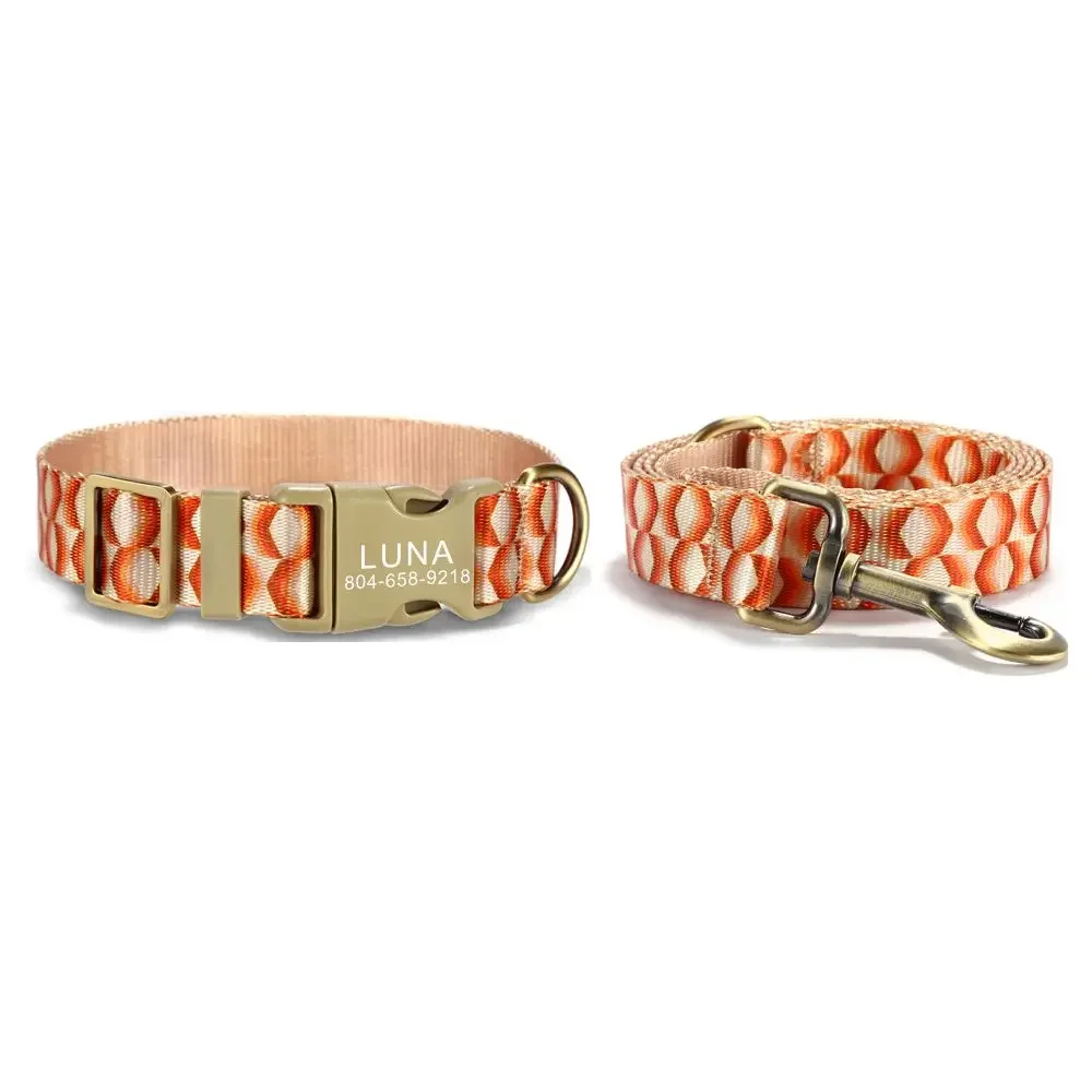 Nombre del producto: Collar personalizado para mascotas, placa con identificación personalizada, rombo naranja ajustable, collares para perros y gatos de fibra suave, correa de plomo