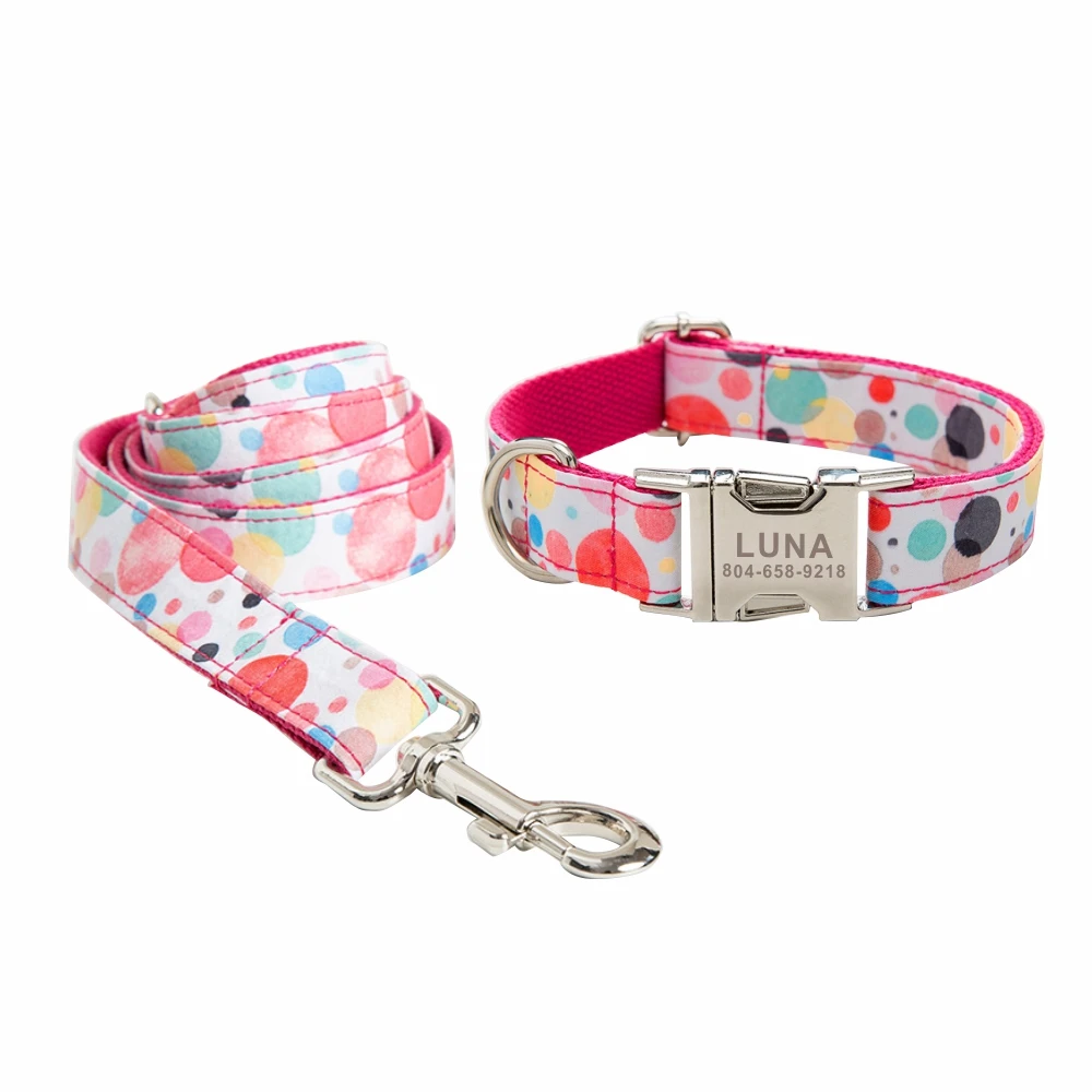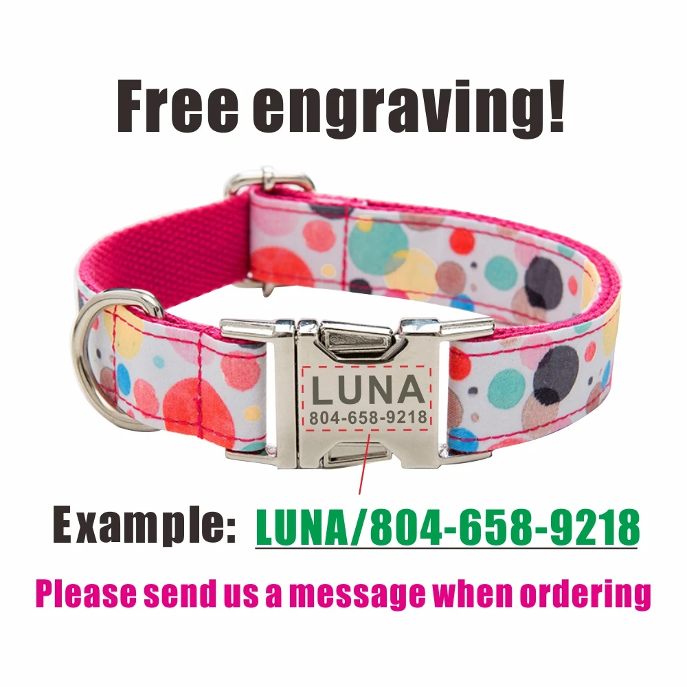 Nombre del producto: Collar personalizado para mascotas, placa con identificación personalizada para cachorros, hebilla ajustable, collares de grabado sin burbujas de arcoíris fuertes, juego de correa