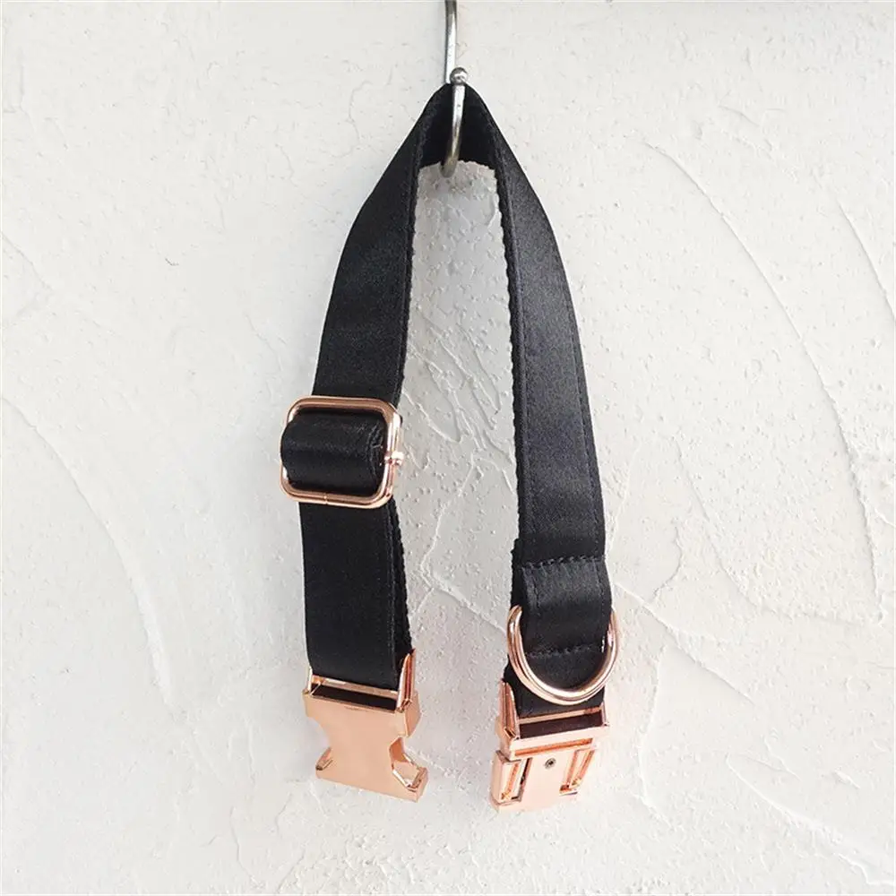 Nombre del producto: Collar personalizado para mascotas, placa con identificación personalizada, etiqueta de identificación, fibra negra ajustable, hebilla roja rosa, collares para perros y gatos, juego de correa de plomo