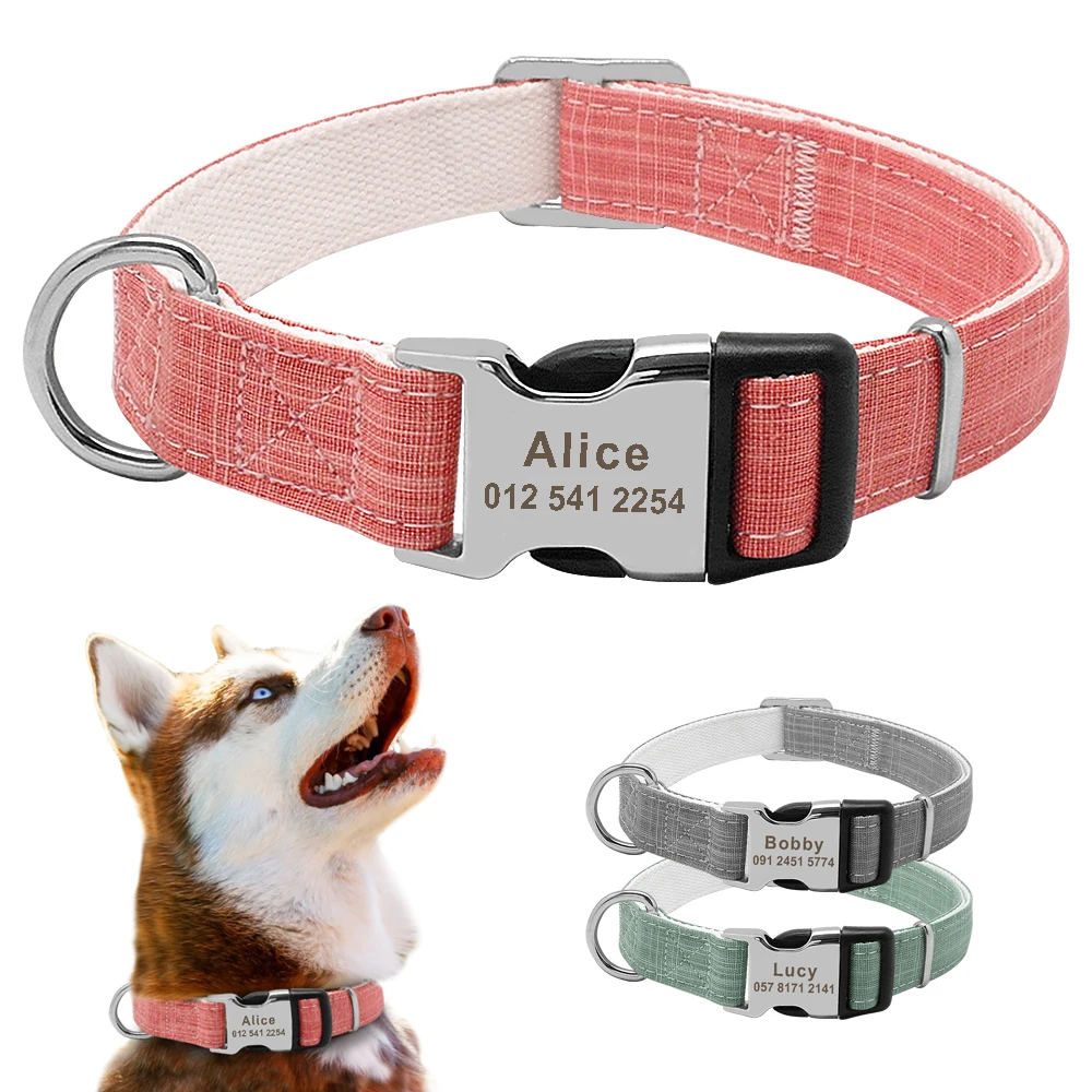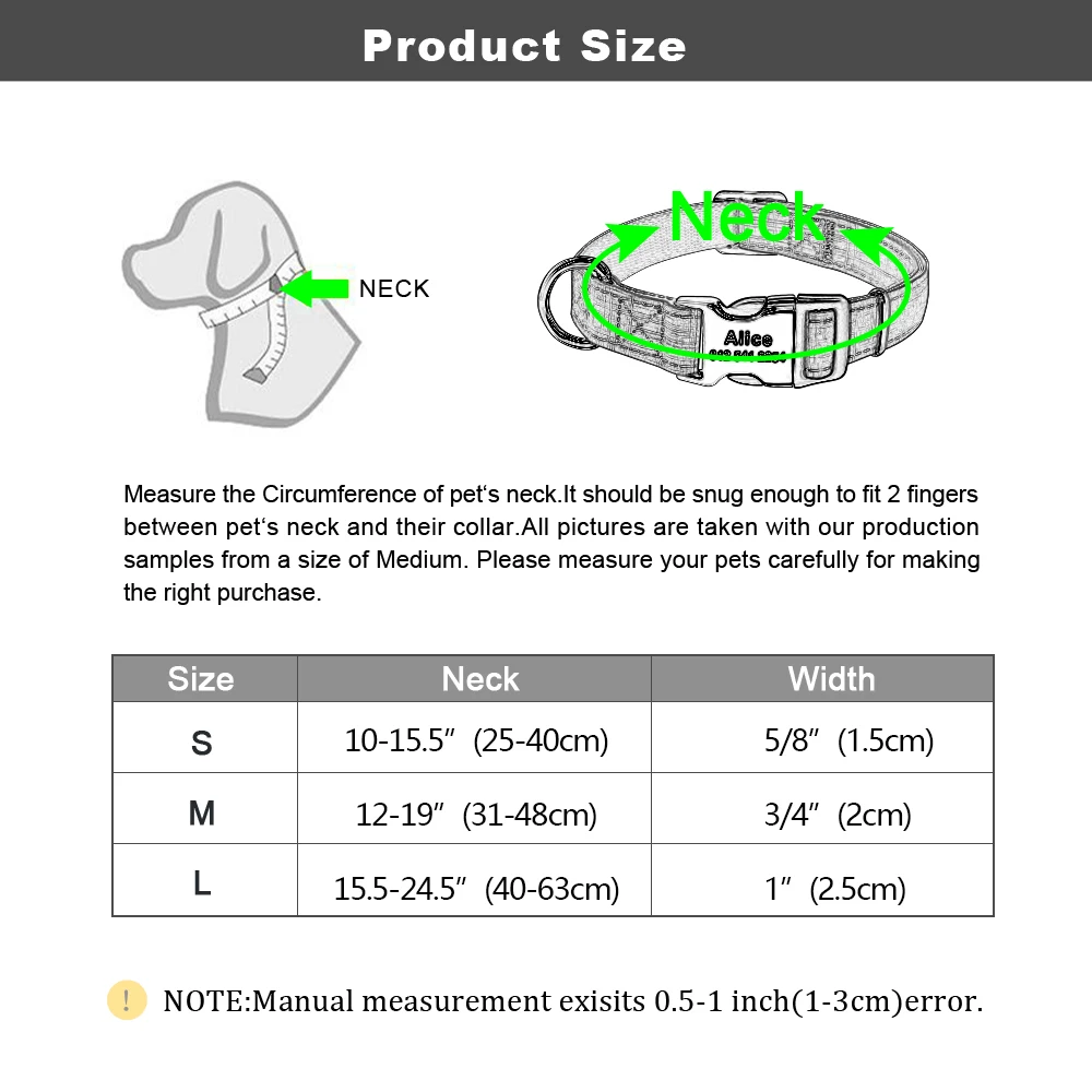 Tipo: Collar de perro personalizado de nailon a la moda, collares de perro con nombre grabado, Collar personalizado para cachorros y mascotas, etiqueta de identificación para perros pequeños, medianos y grandes