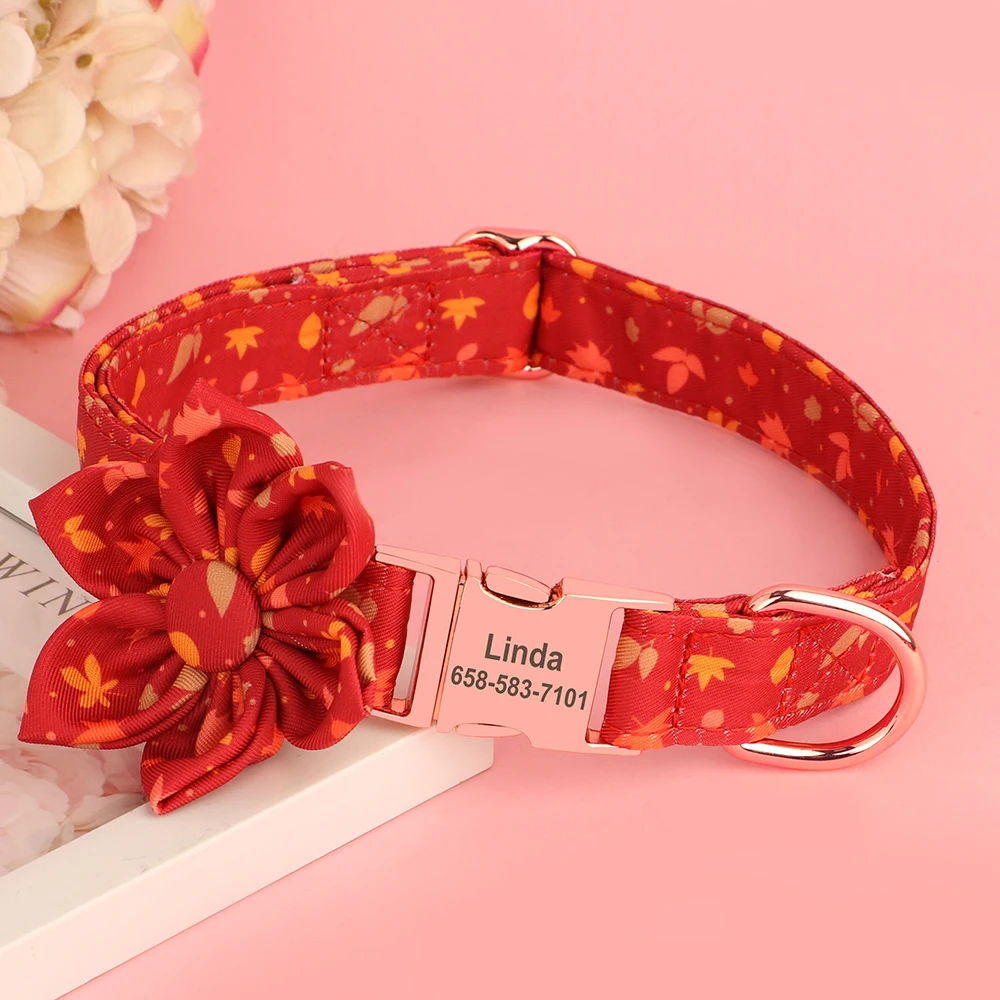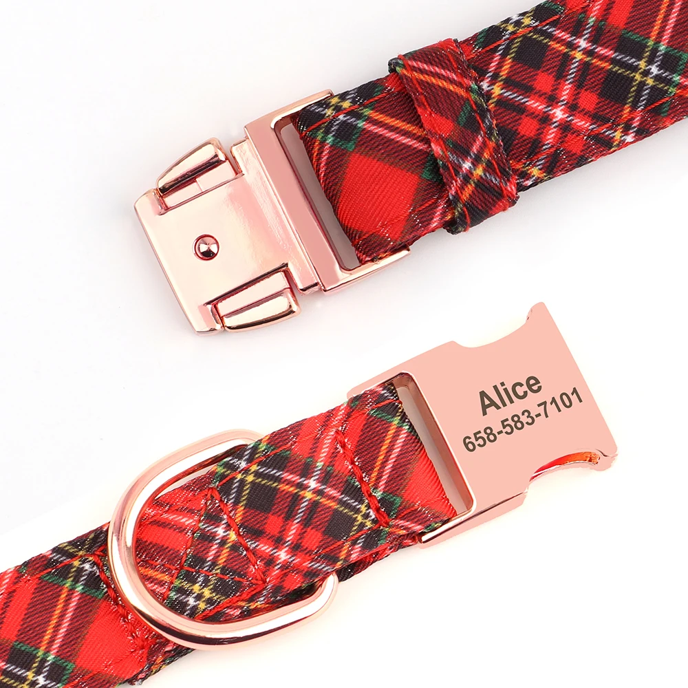 Collar de Navidad personalizado para perro, collares para mascotas a cuadros personalizados con placa de identificación grabada sin flores para perros pequeños, medianos y grandes