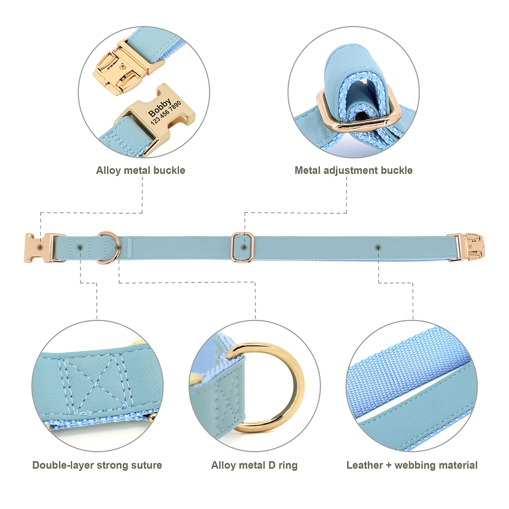 Collar con nombre de perro personalizado, collares con hebilla de identificación de perros de nailon de cuero, collar con placa con nombre para mascotas antipérdida para perros pequeños y grandes Pitbull