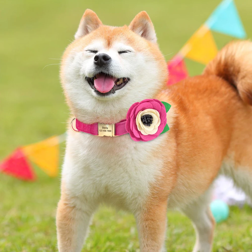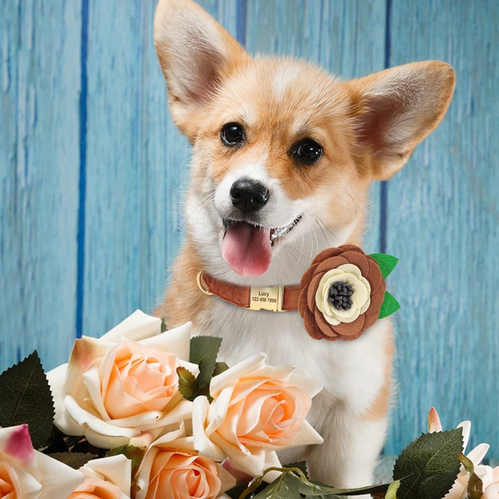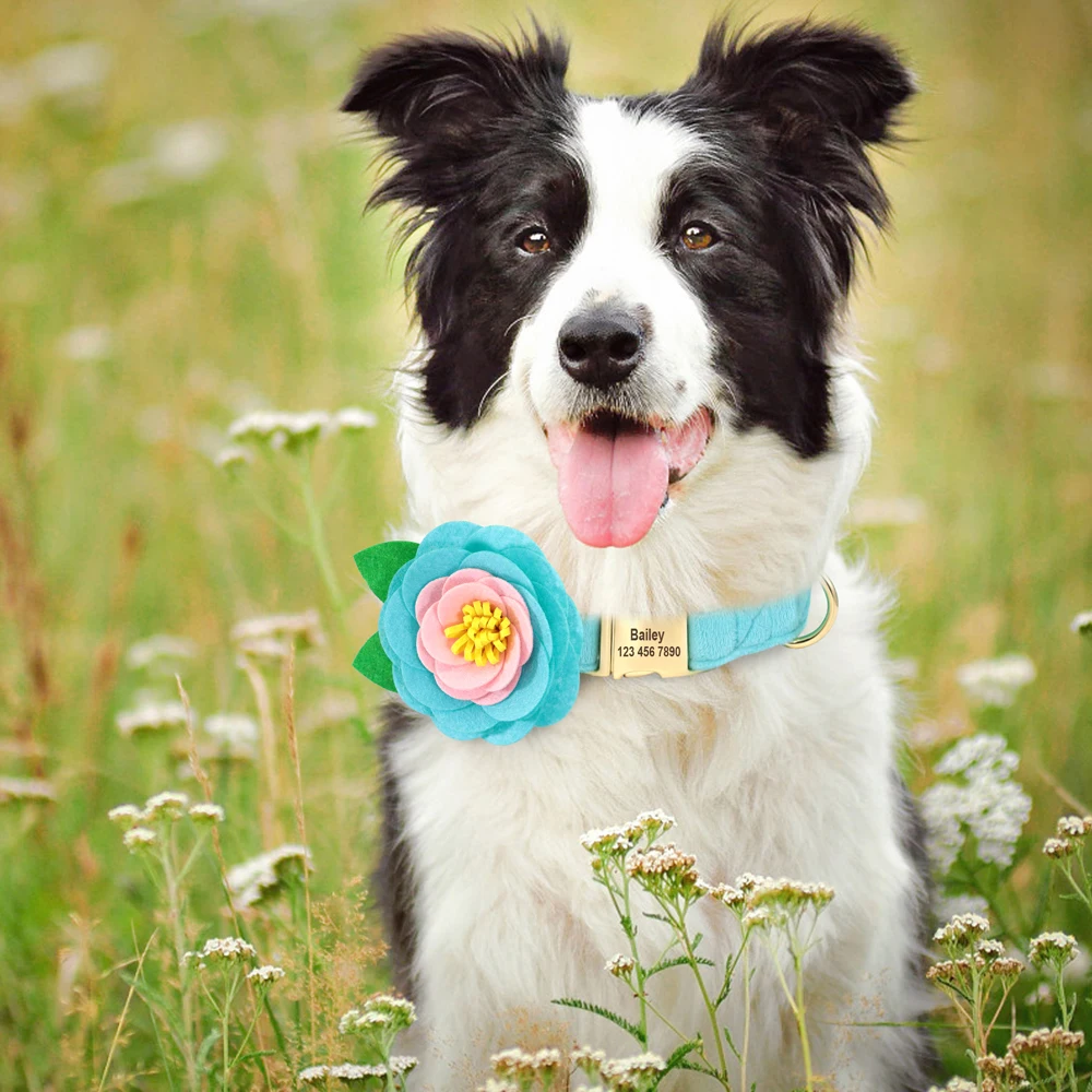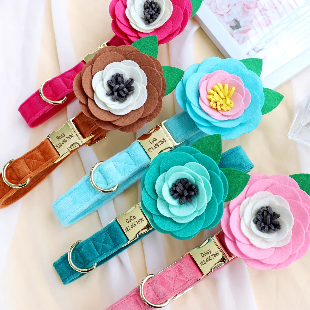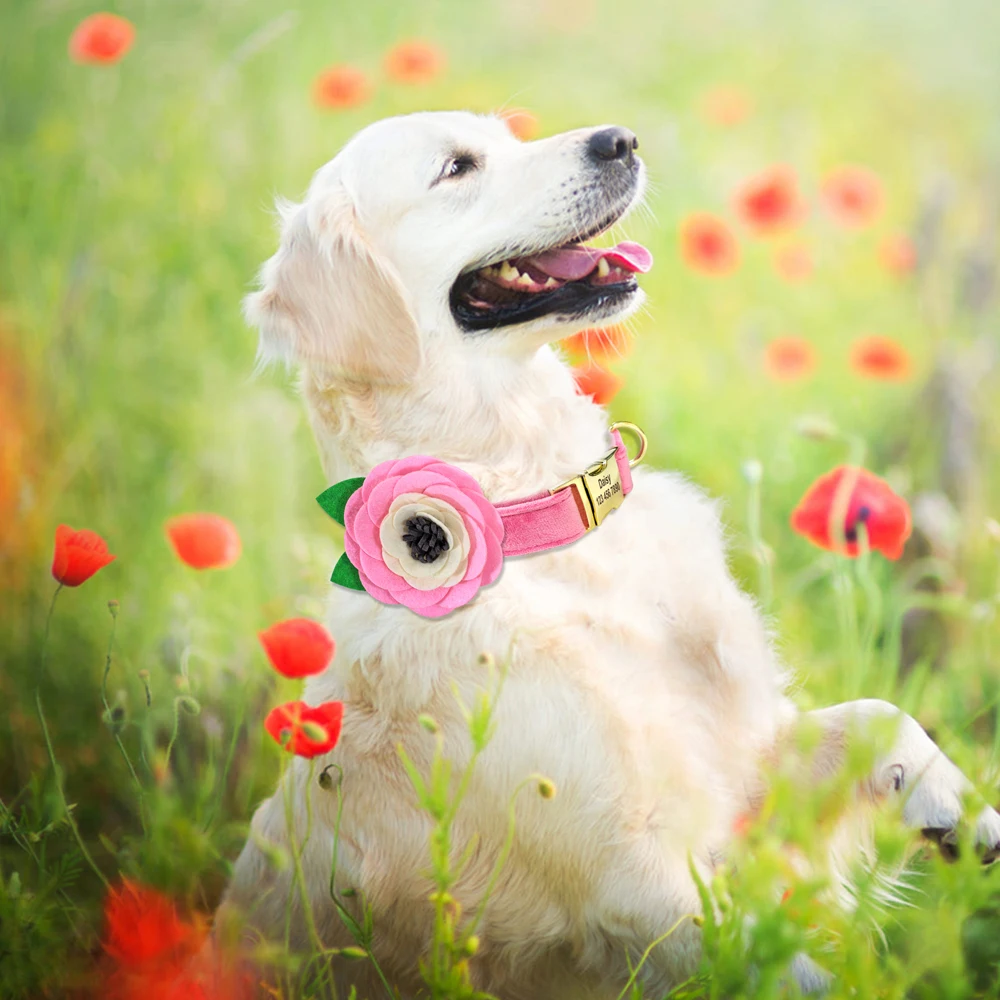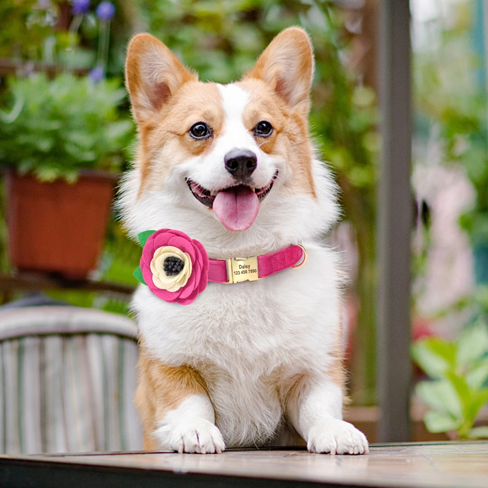 Collar de perro personalizado, collares florales para cachorros y gatos, hebilla grabada gratis para perros pequeños, medianos y grandes, accesorios bonitos de flores