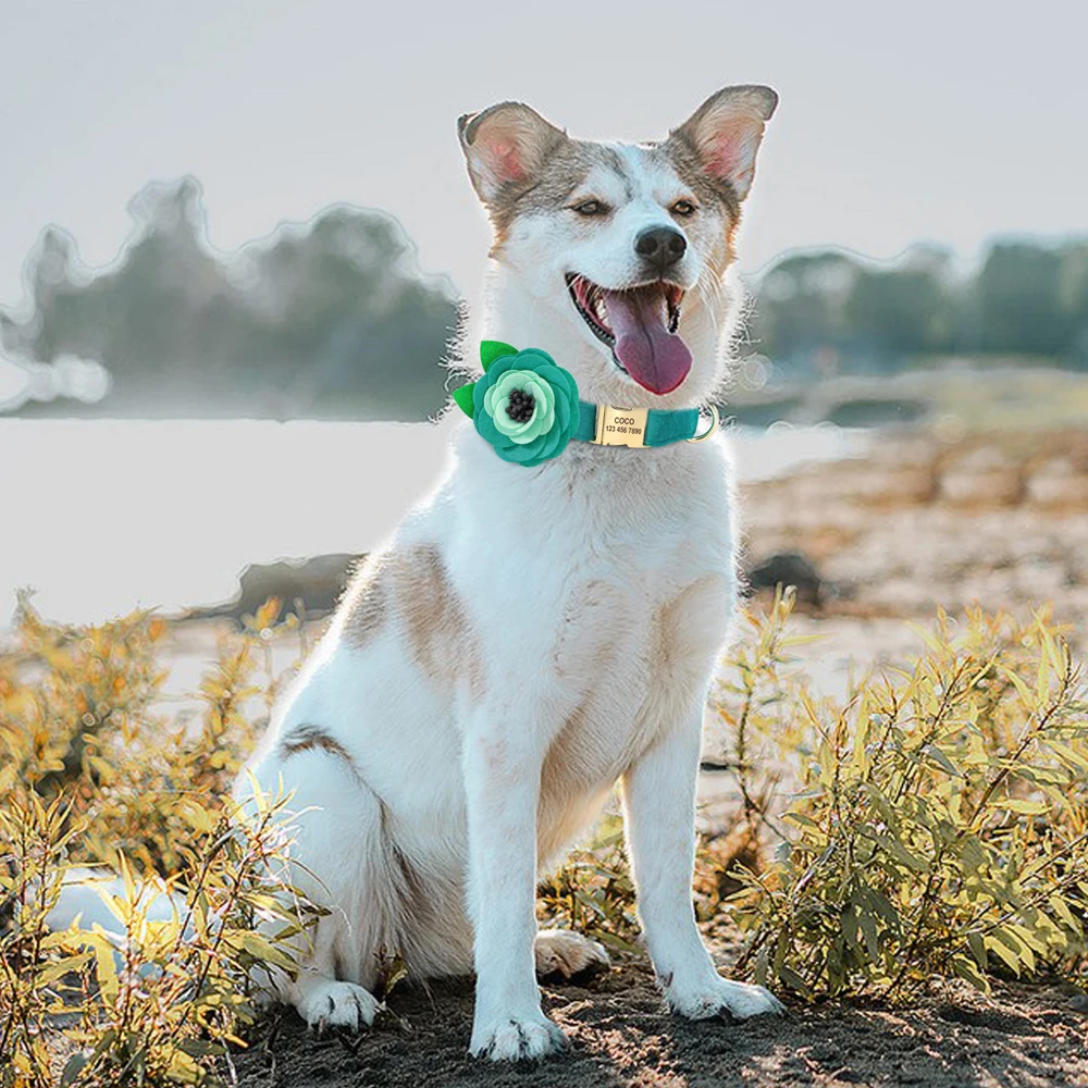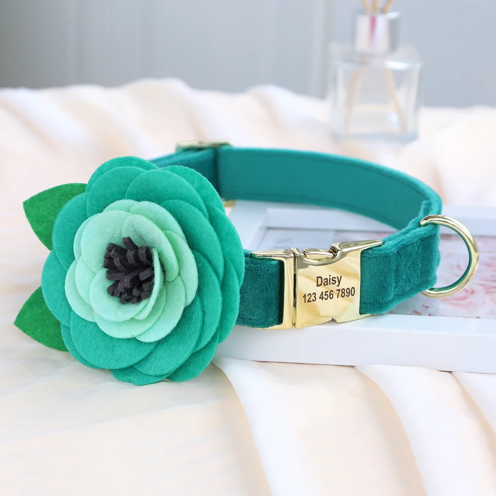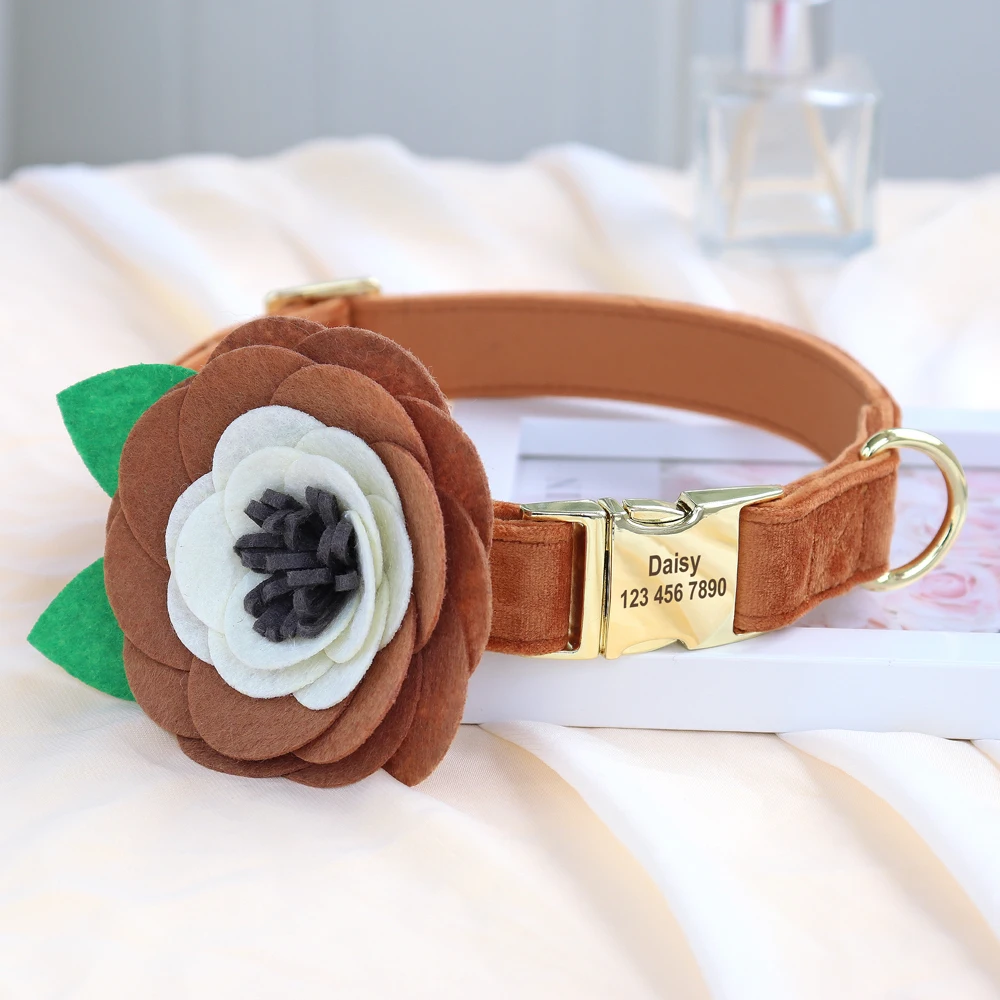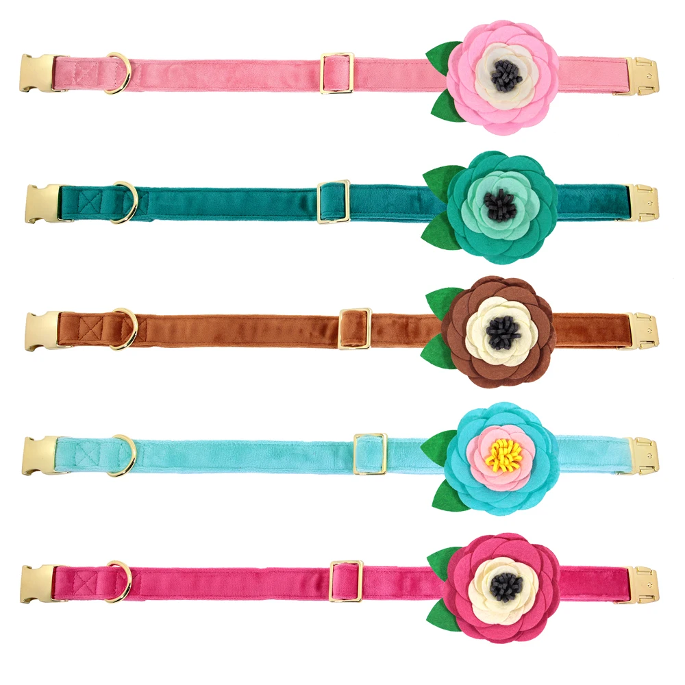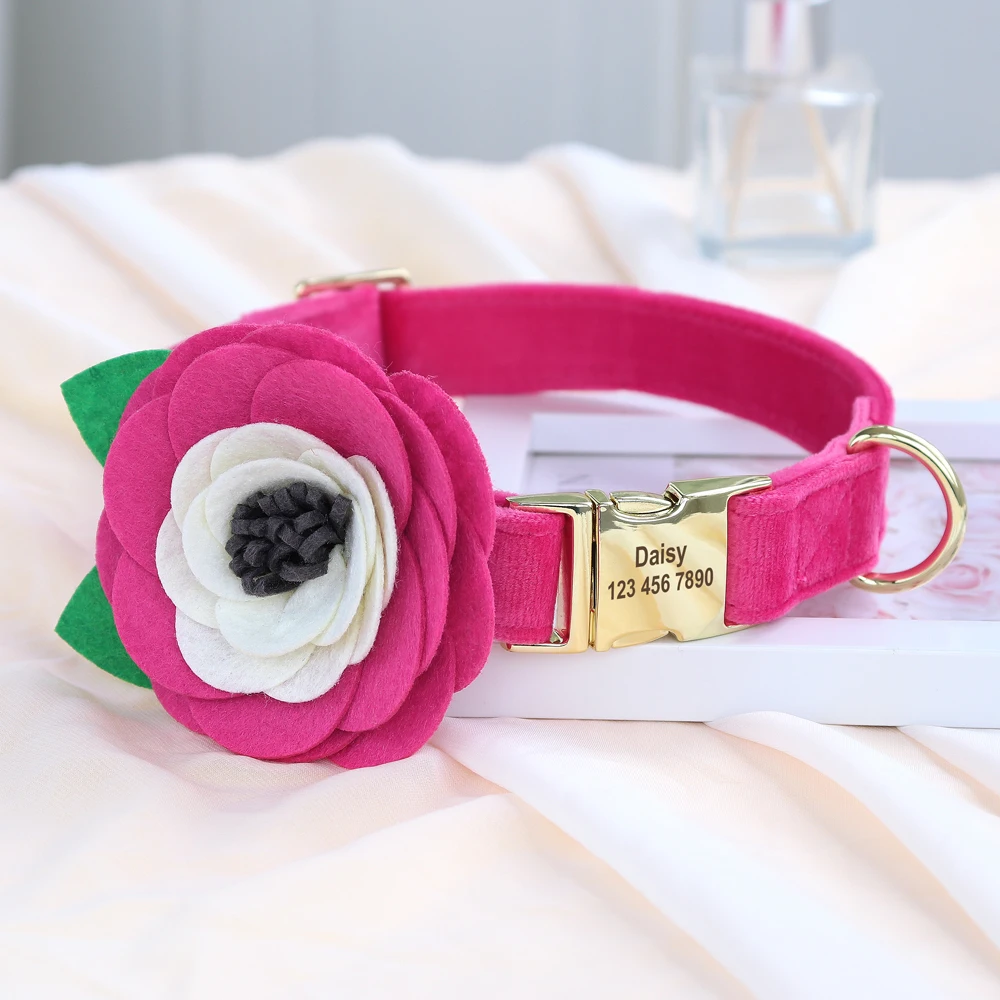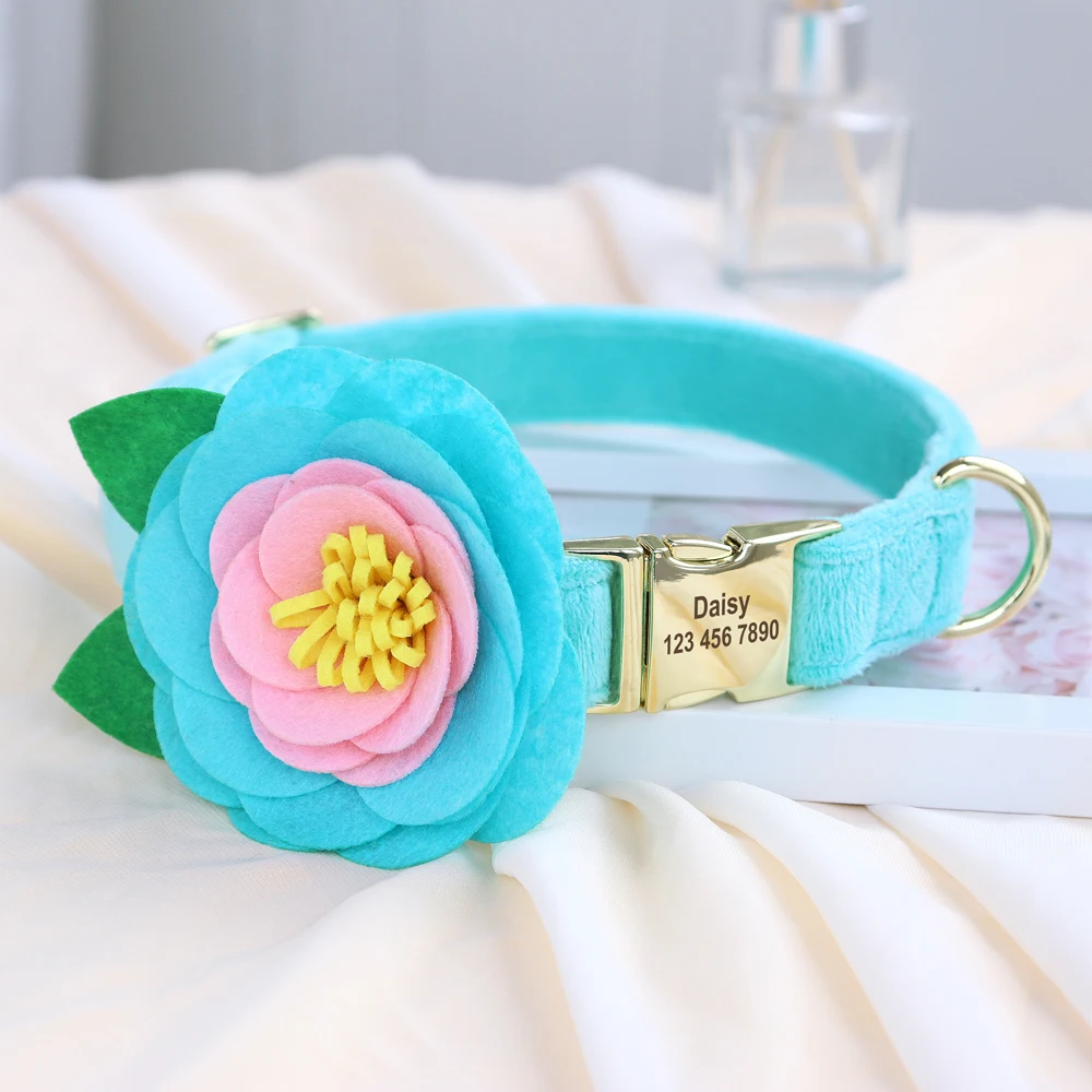 Collar de perro personalizado, collares florales para cachorros y gatos, hebilla grabada gratis para perros pequeños, medianos y grandes, accesorios bonitos de flores