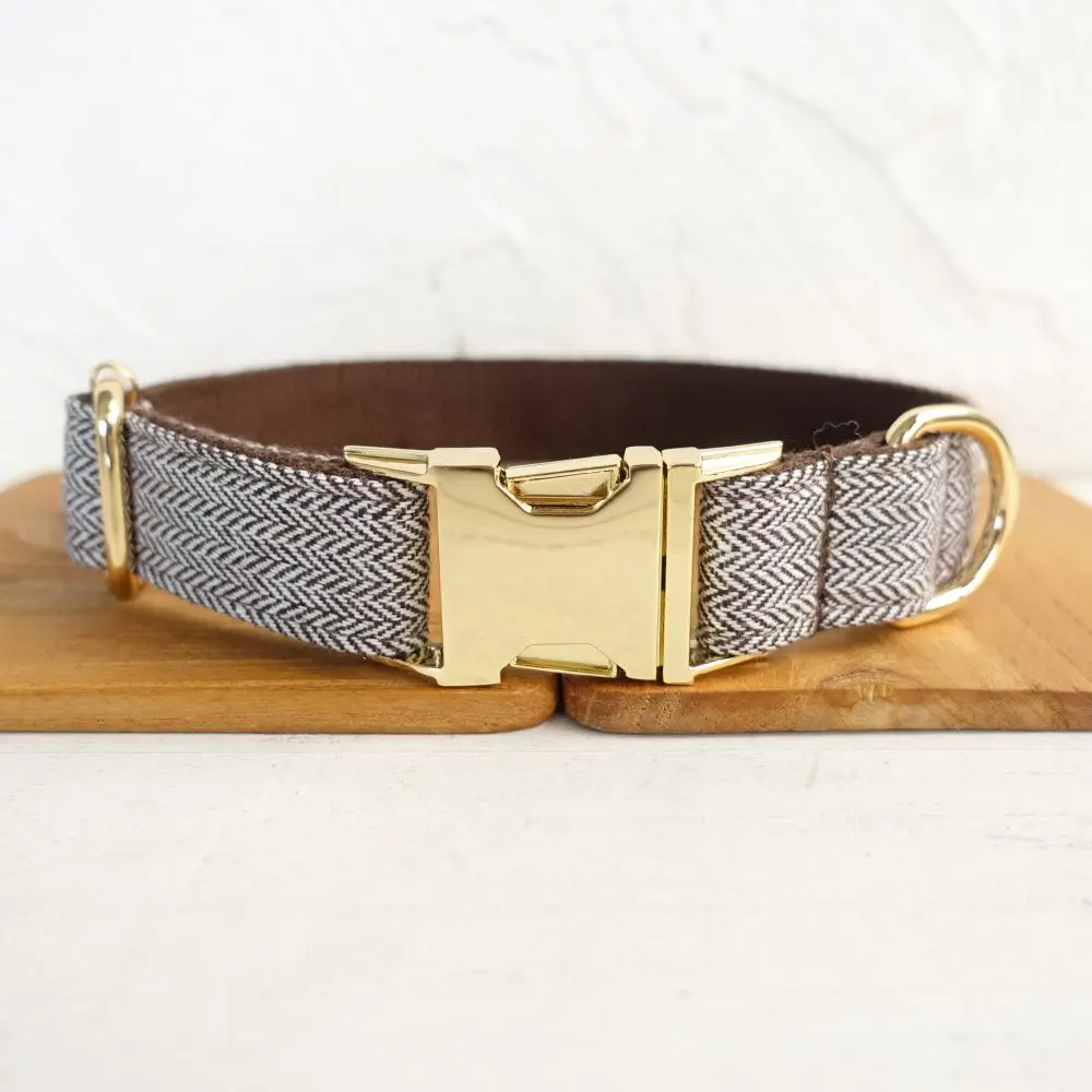 Nombre del producto: Collar personalizado para perros Collar personalizado para mascotas Grabado gratuito Etiqueta de nombre de identificación Accesorio para mascotas Traje grueso marrón Juego de correa de collar de cachorro de fibra