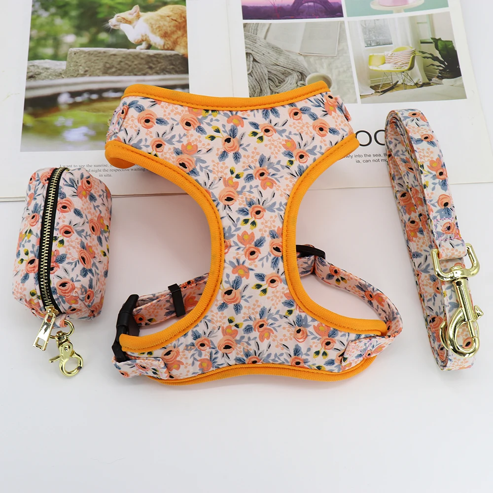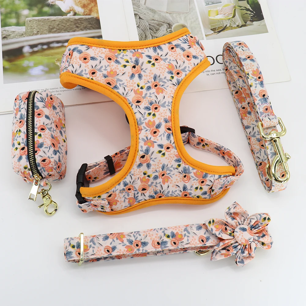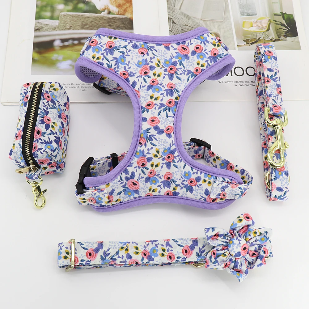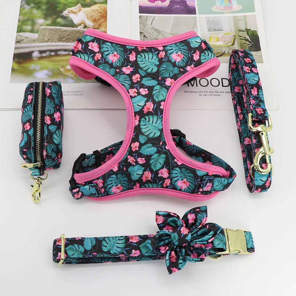 Collar personalizado para perro, correa, arnés, bolsa de golosinas, Collar grabado Floral para mascotas, soporte para bolsa de caca para perros pequeños, medianos y grandes, 3 unids/set