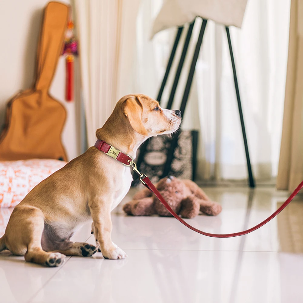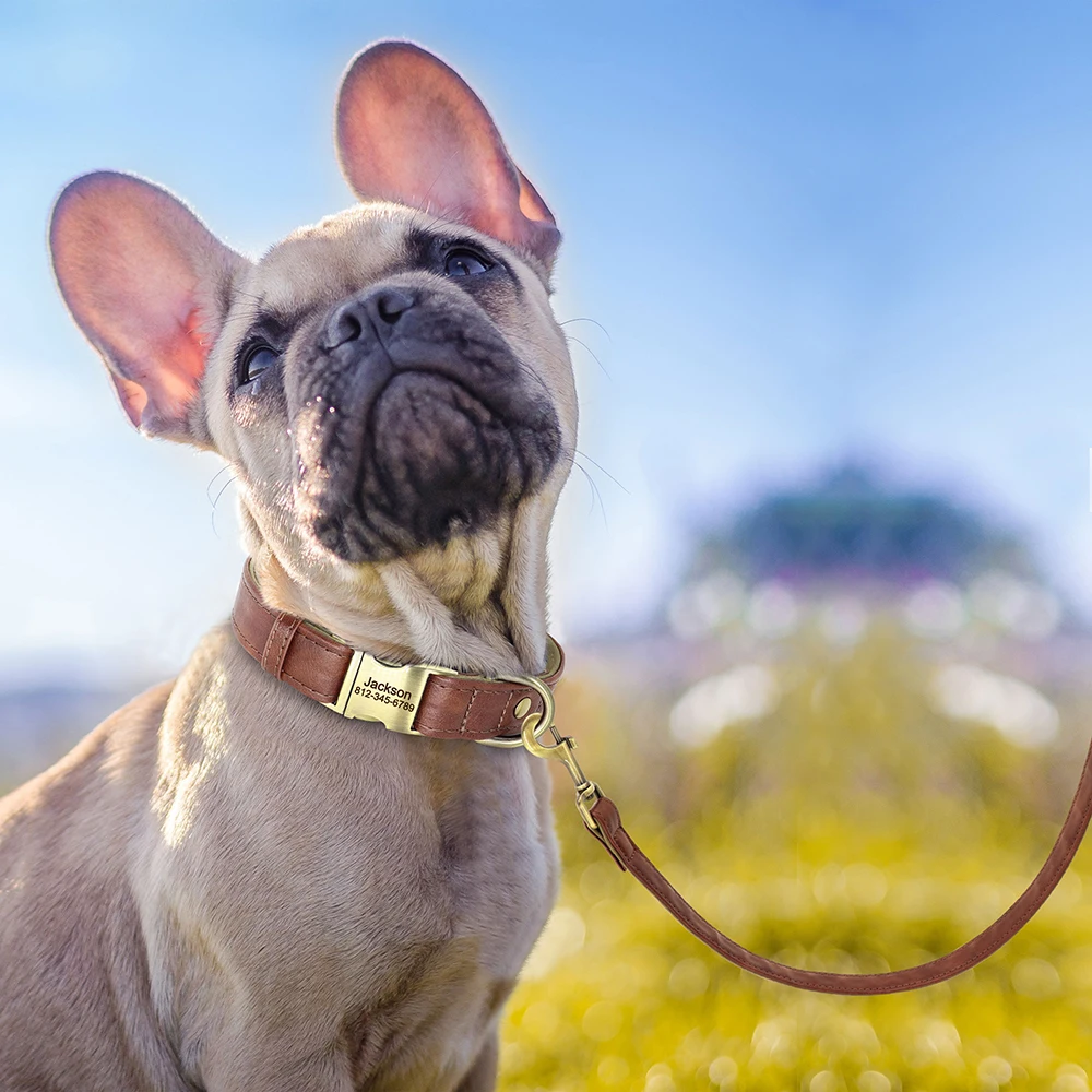 Collar personalizado para perro, conjunto de correa de cuero PU suave, collares con hebilla para perros con correa de plomo para perros pequeños, medianos y grandes, Pitbull Pug