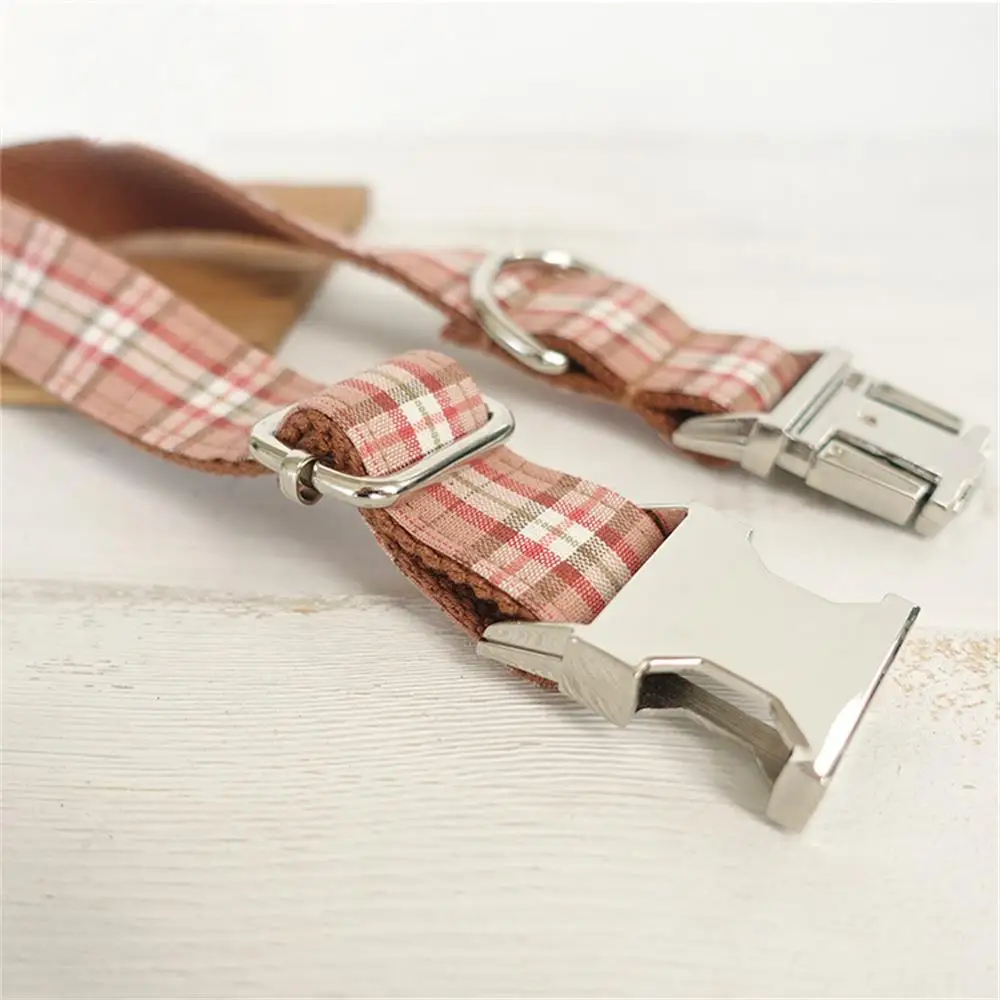 Collar personalizado para perro, Correa con grabado gratis, etiqueta de nombre de identificación, accesorio para mascota, Collar para cachorro a cuadros naranja