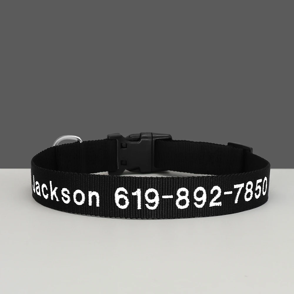 Nombre: Collar de perro grande personalizado, collar de cachorro bordado personalizado, proveedor de perro bordado ajustable para perro pequeño, mediano y grande.