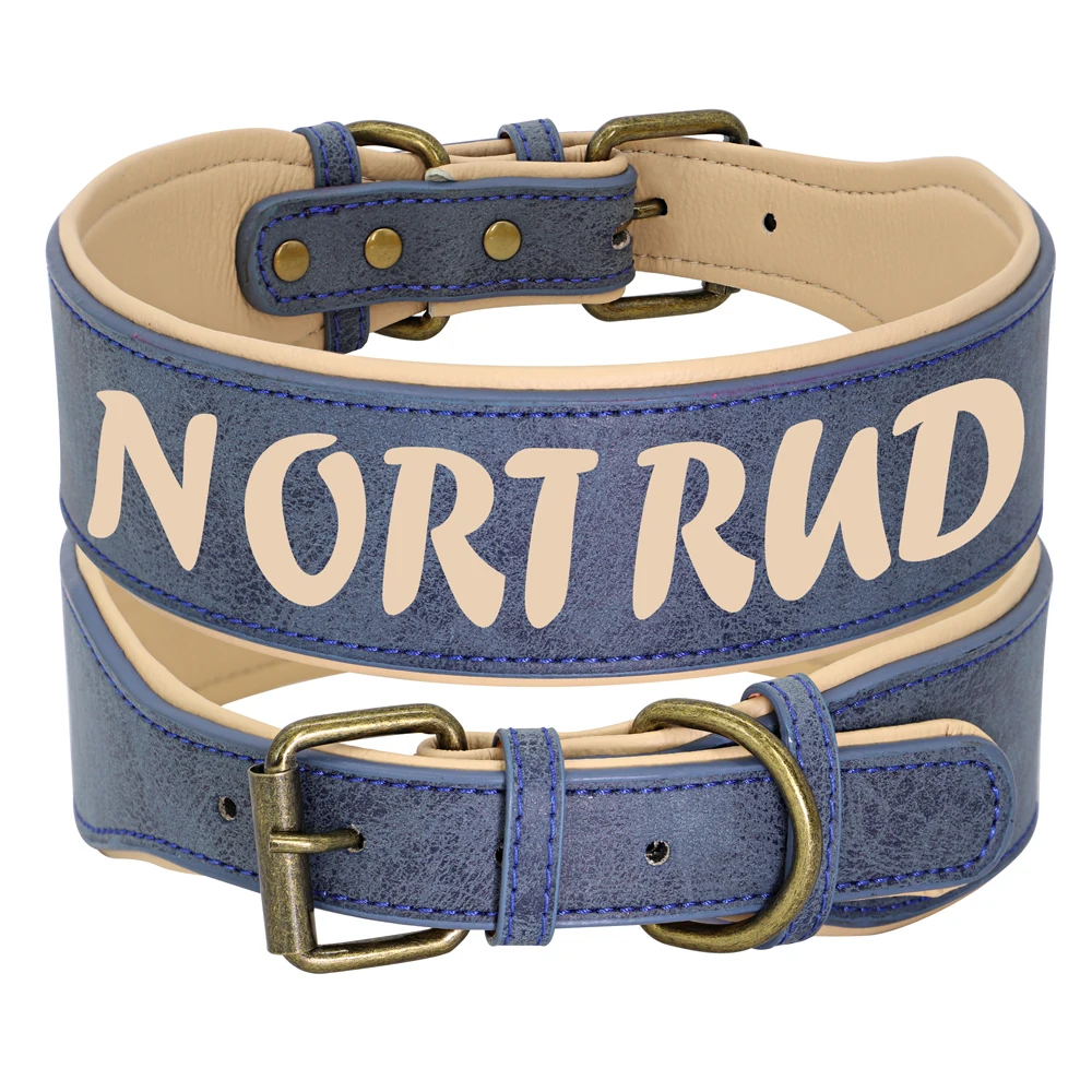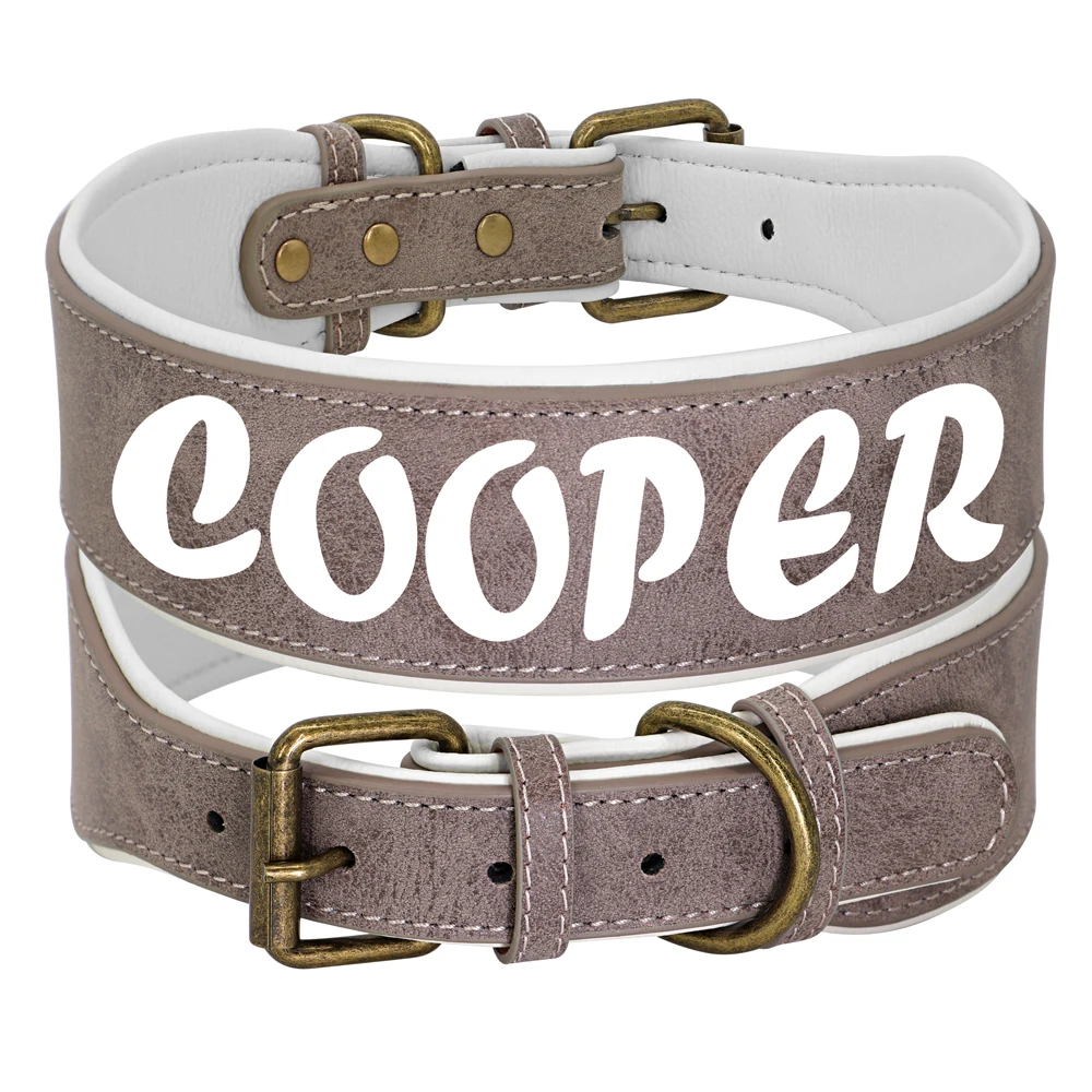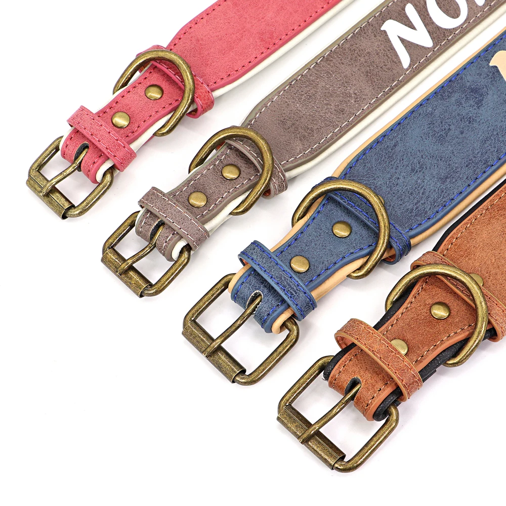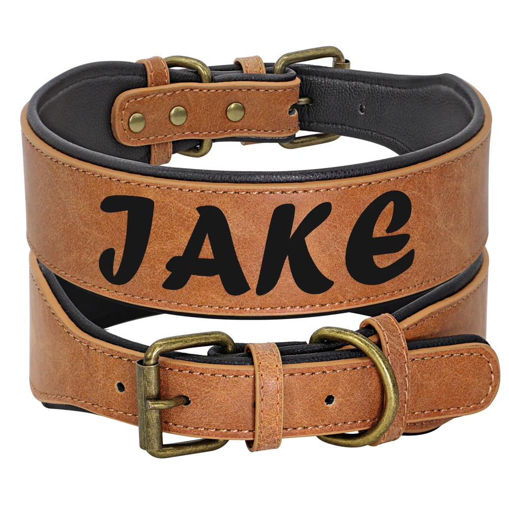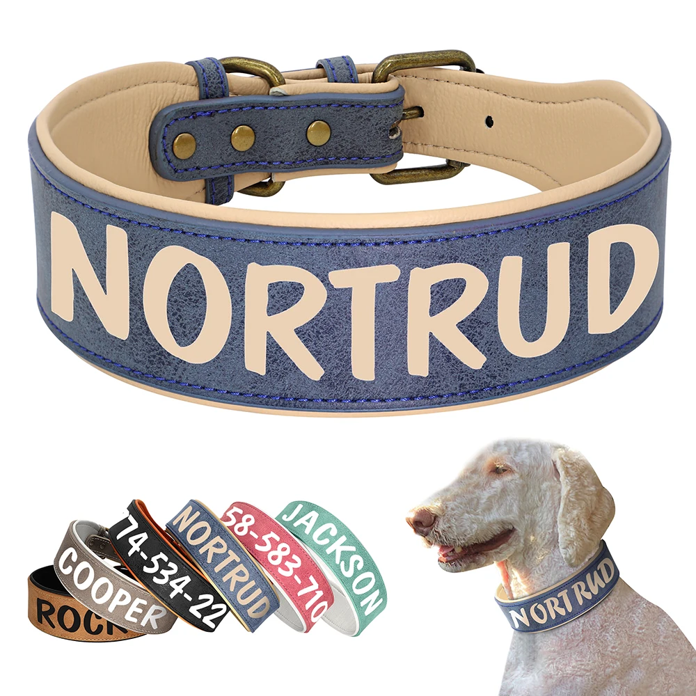 Nombre: Collar de perro grande personalizado de cuero ancho, collares personalizados para perros medianos y grandes, collares personalizados para perros, identificación de nombre impresa