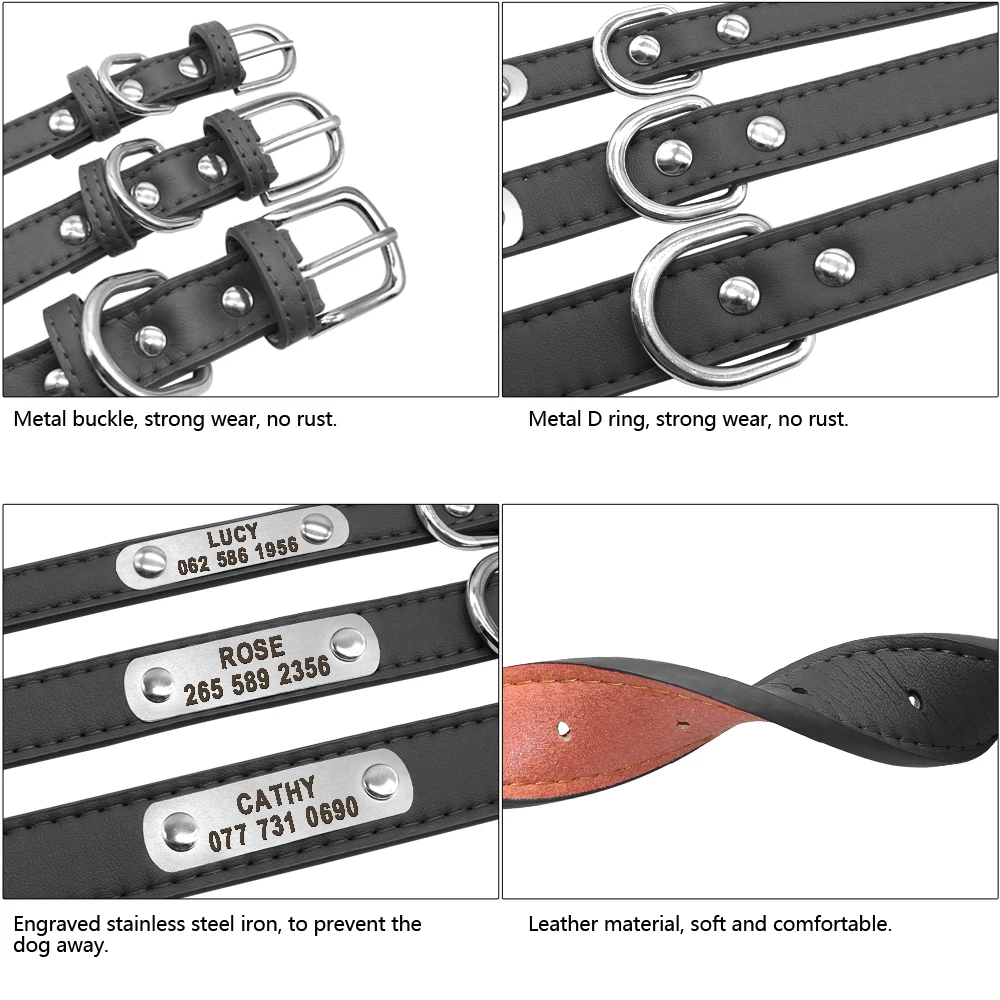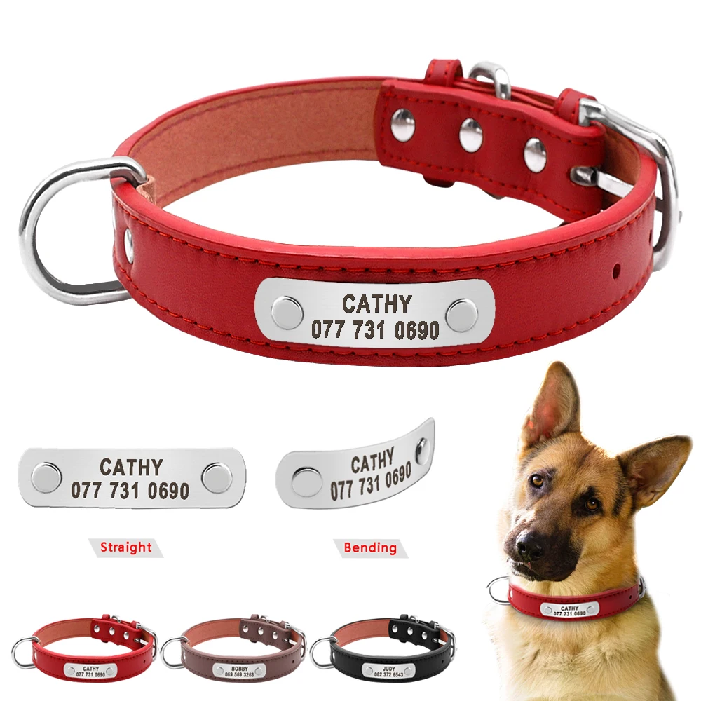 Collar de Identificación Personalizado de Cuero PU para Mascotas Pequeñas y Medianas, Collar para Perros y Gatos con Grabado Personalizado, Placa de Identificación Gratuita