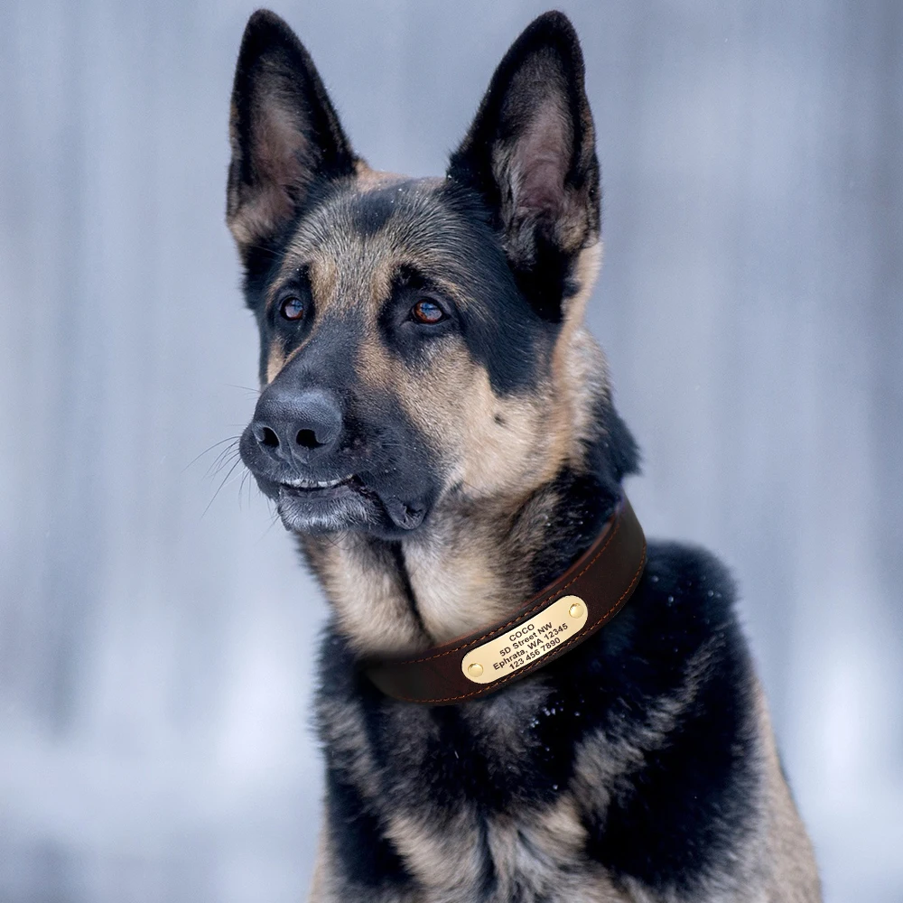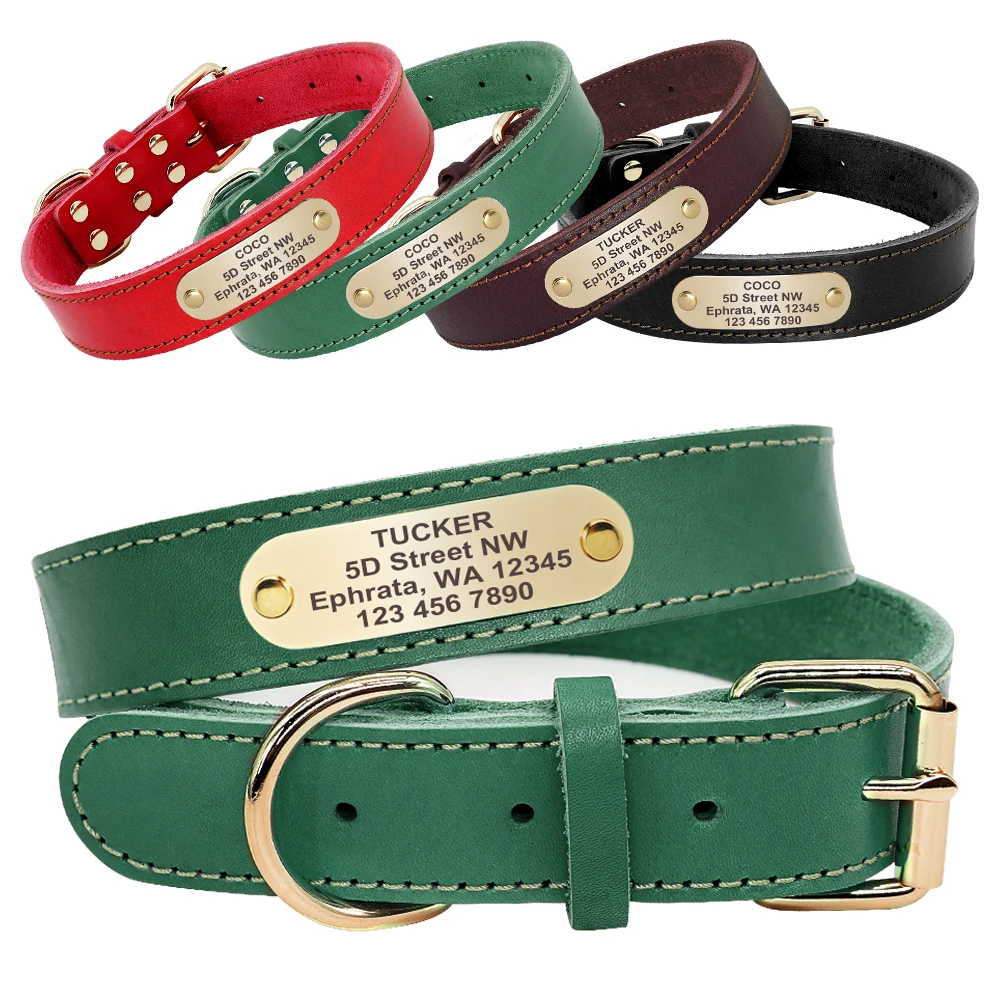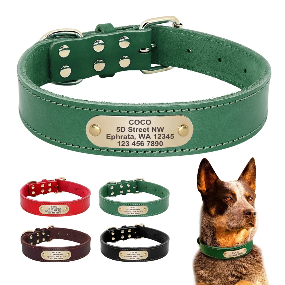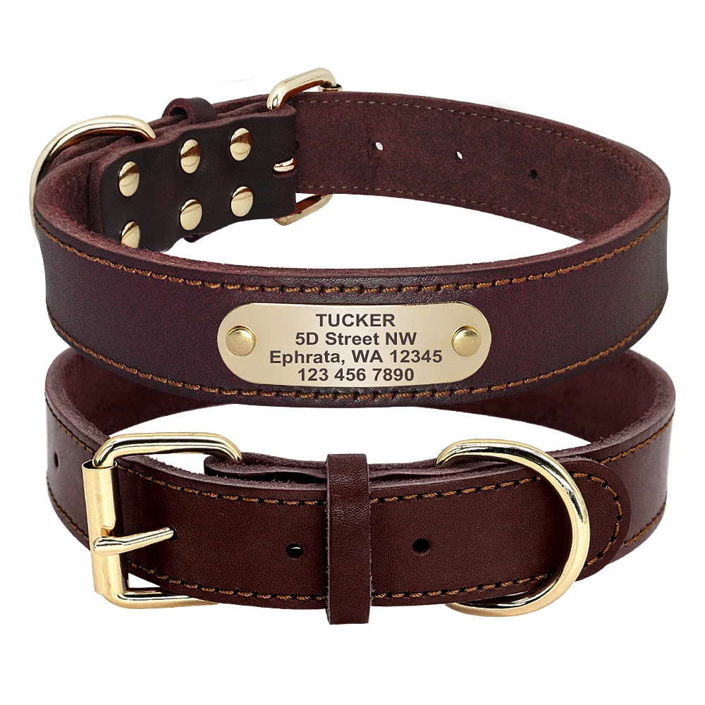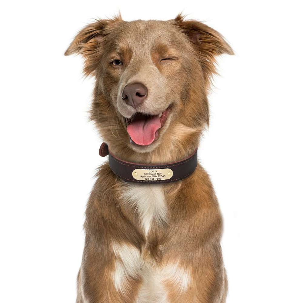 Nombre: Collar de perro grande de cuero auténtico, collares de perro medianos y grandes, collares personalizados para mascotas para perros, nombre grabado