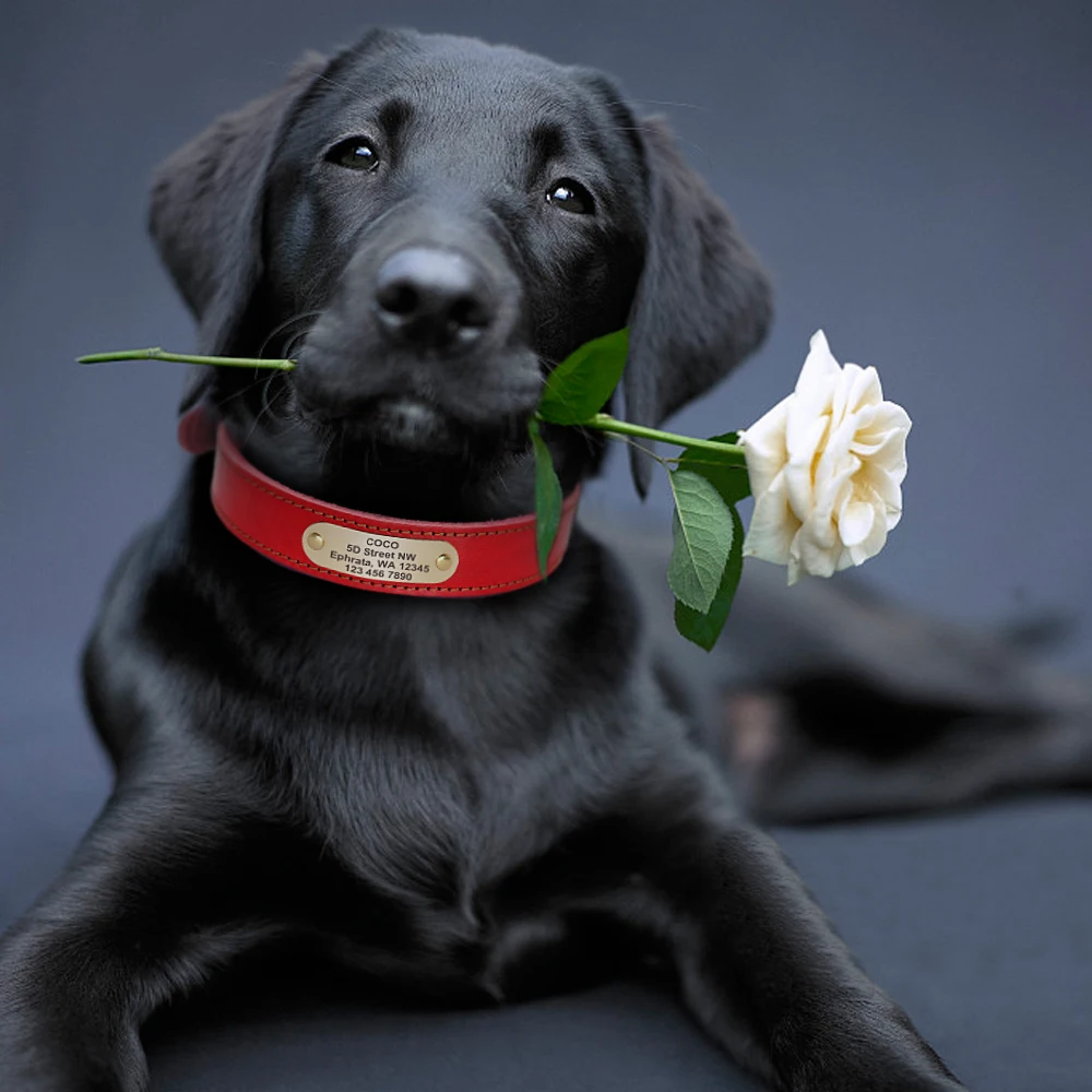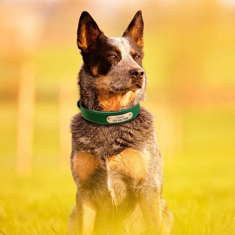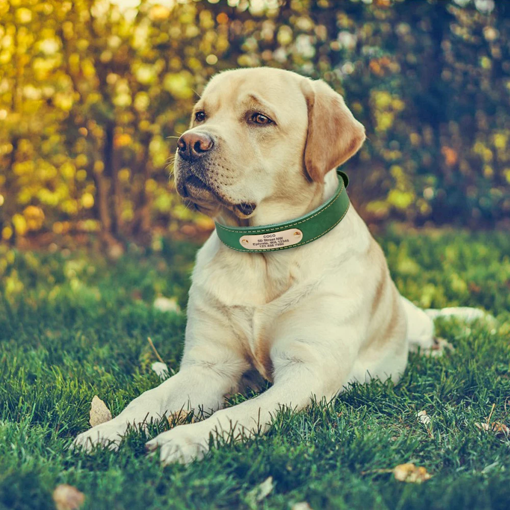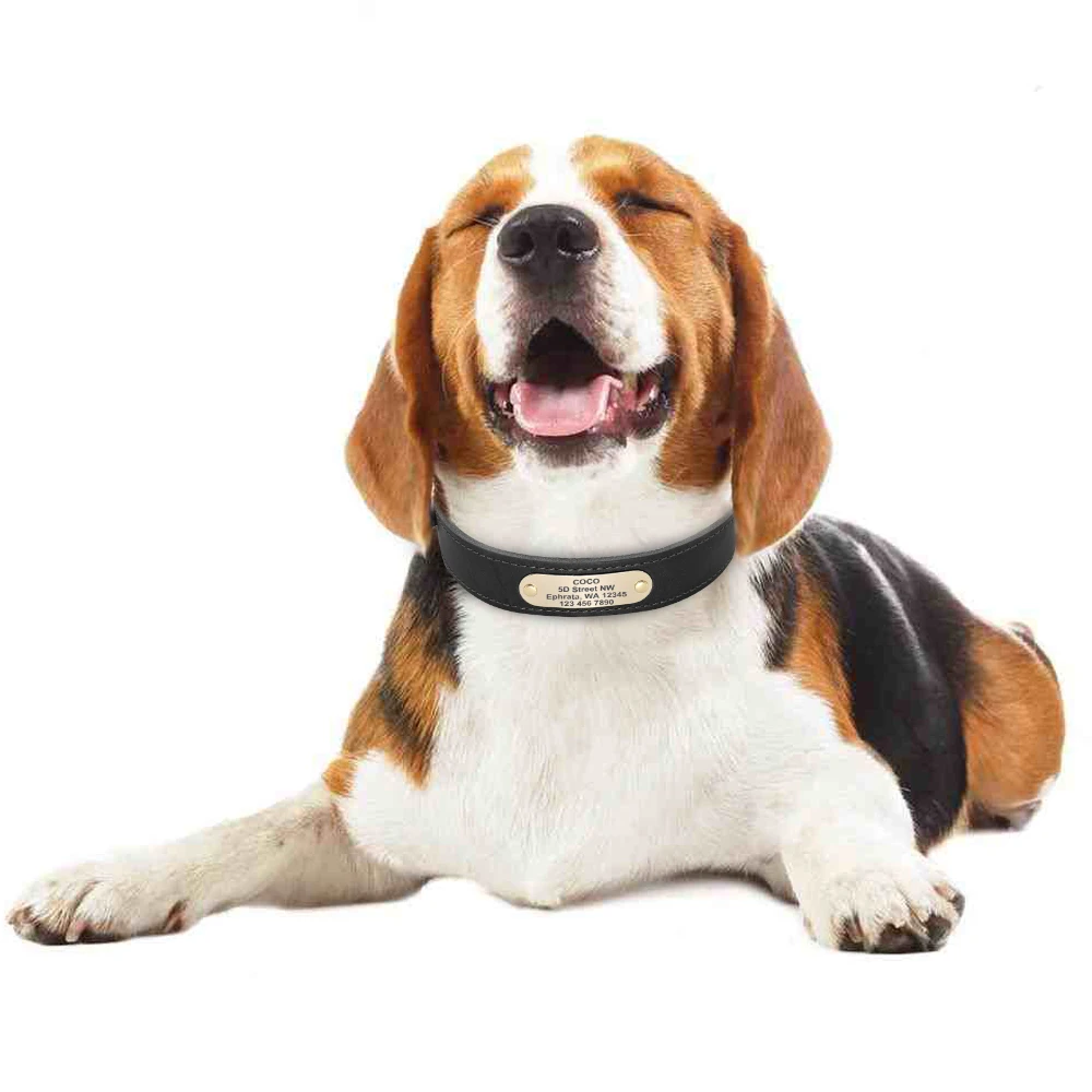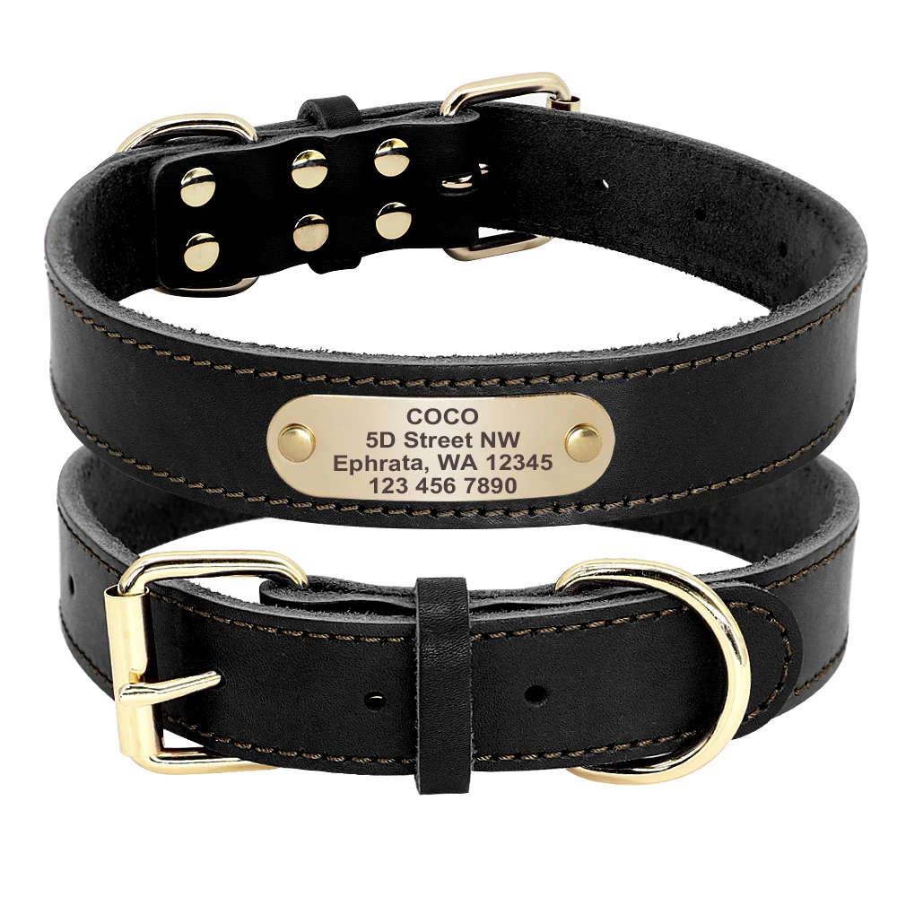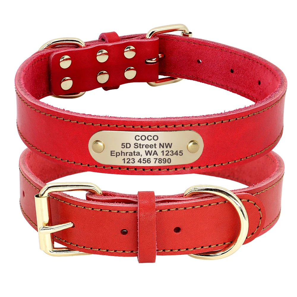 Nombre: Collar de perro grande de cuero auténtico, collares de perro medianos y grandes, collares personalizados para mascotas para perros, nombre grabado