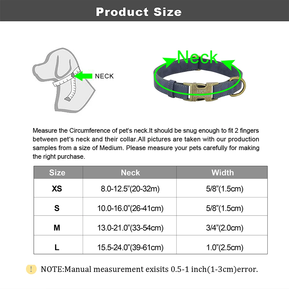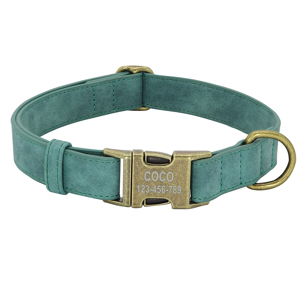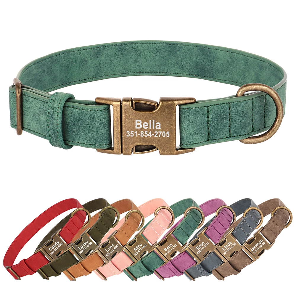 Collar de perro con grabado personalizado, collares de perro de cuero PU personalizados, Collar de identificación de mascota acolchado suave para perros pequeños, medianos y grandes Pitbull
