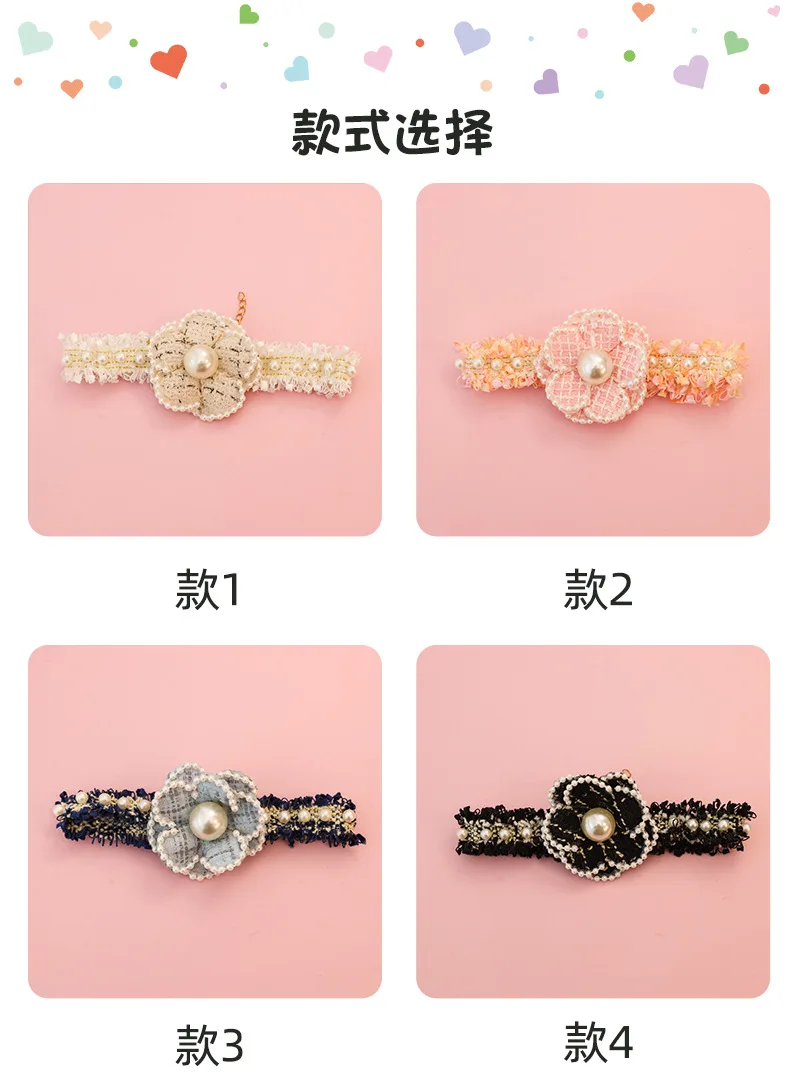 Collar de primavera/verano para mascotas, accesorios para gatitos, Collar de rosas y perlas de flores, accesorios para gatos de princesa para otoño e invierno