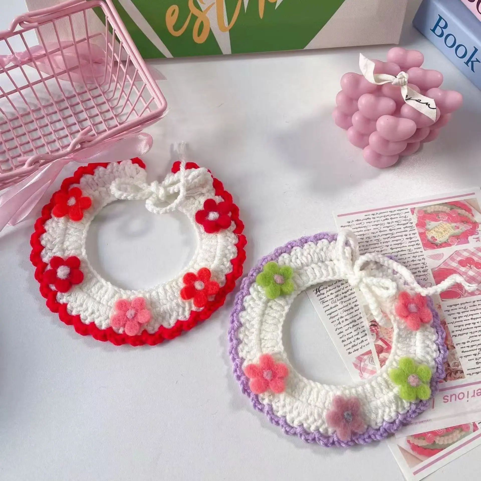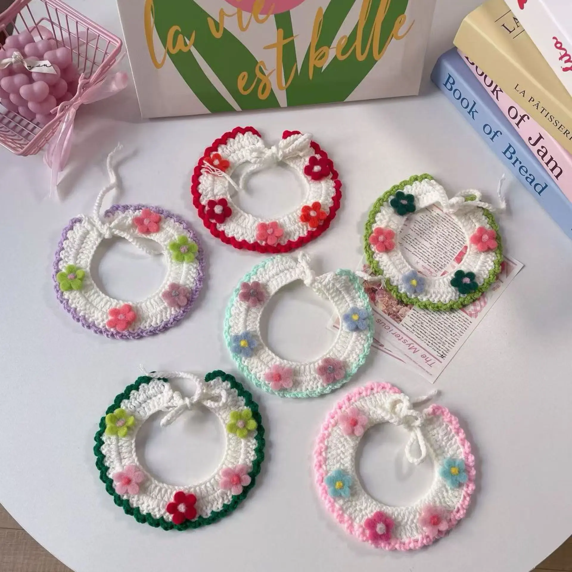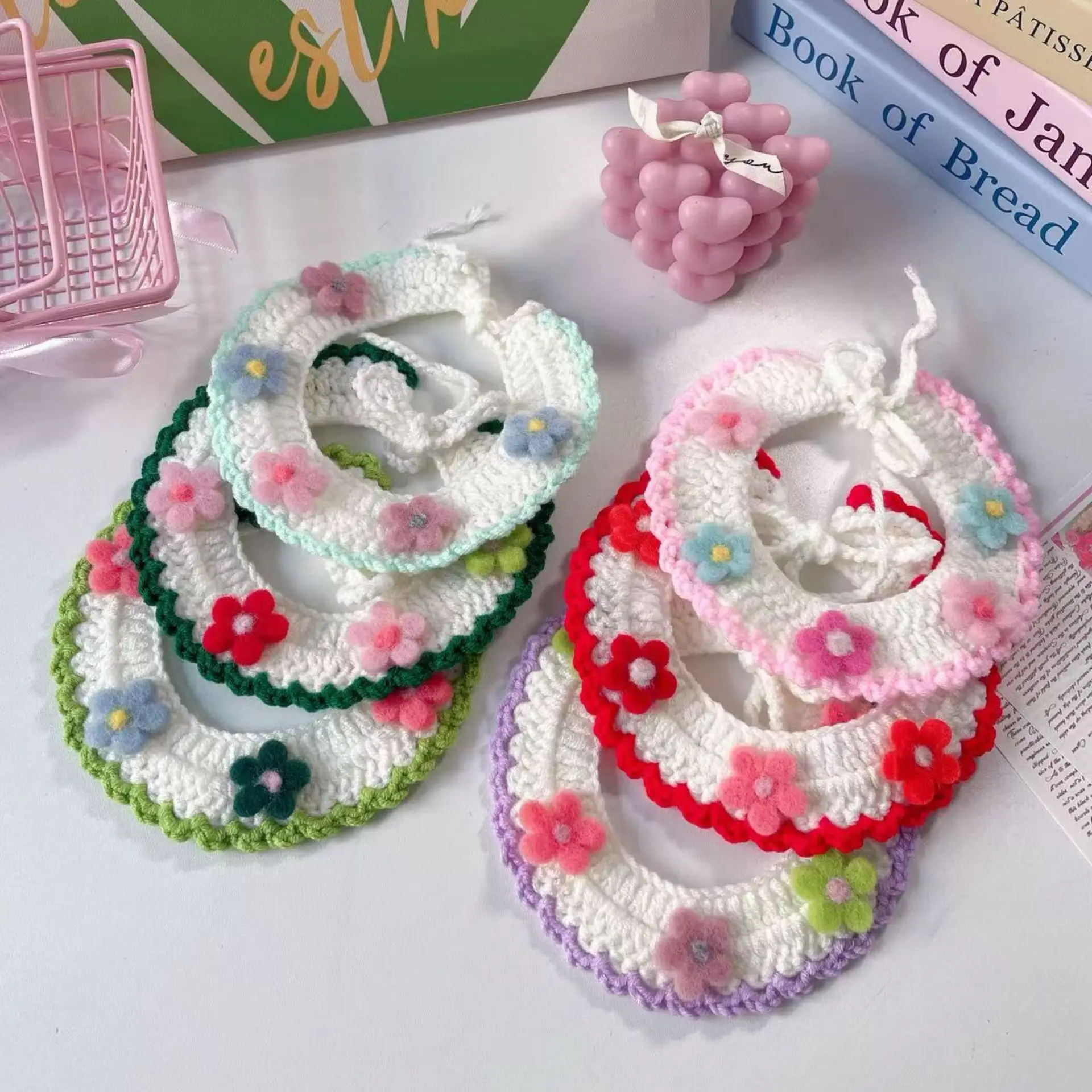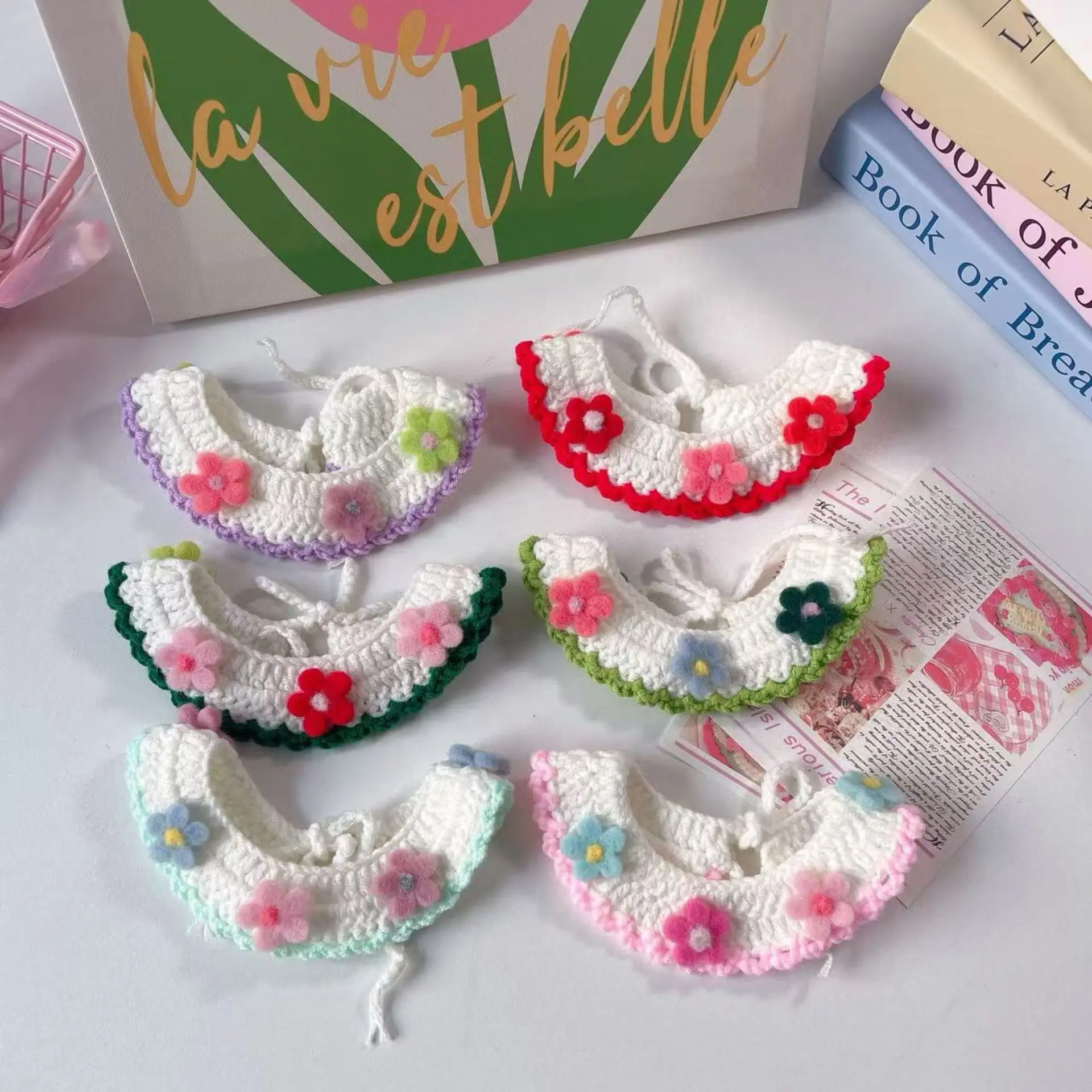 Collar de punto hecho a mano para perros y gatos, bufanda de lana con flores para las cuatro estaciones, bufanda de encaje, Collar de peluche, accesorios para perros pequeños
