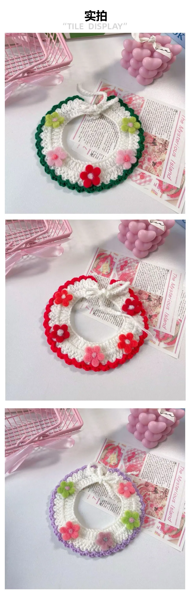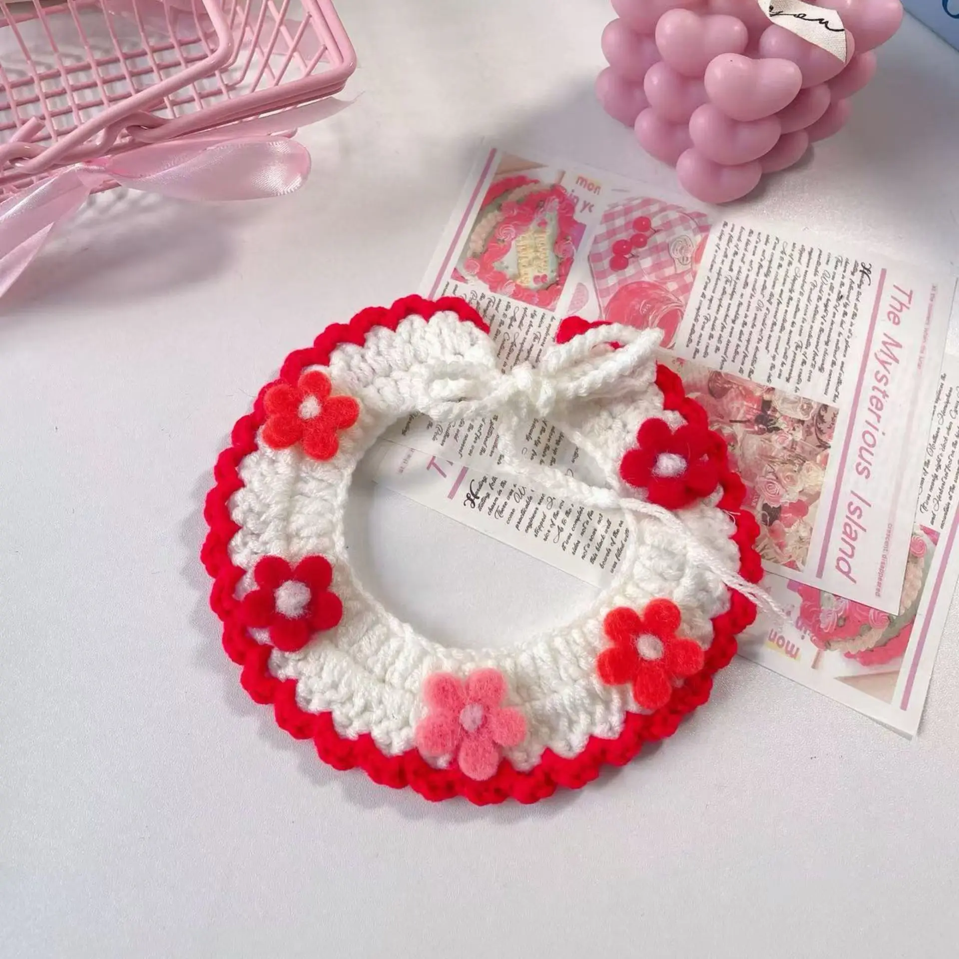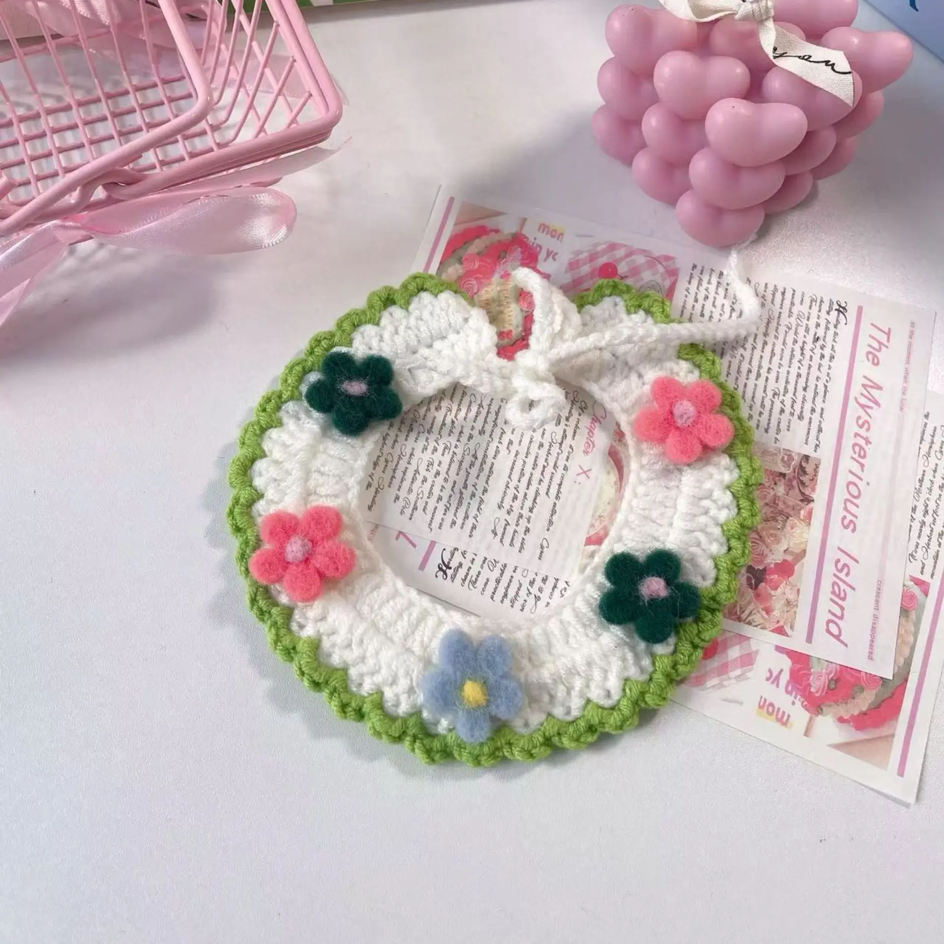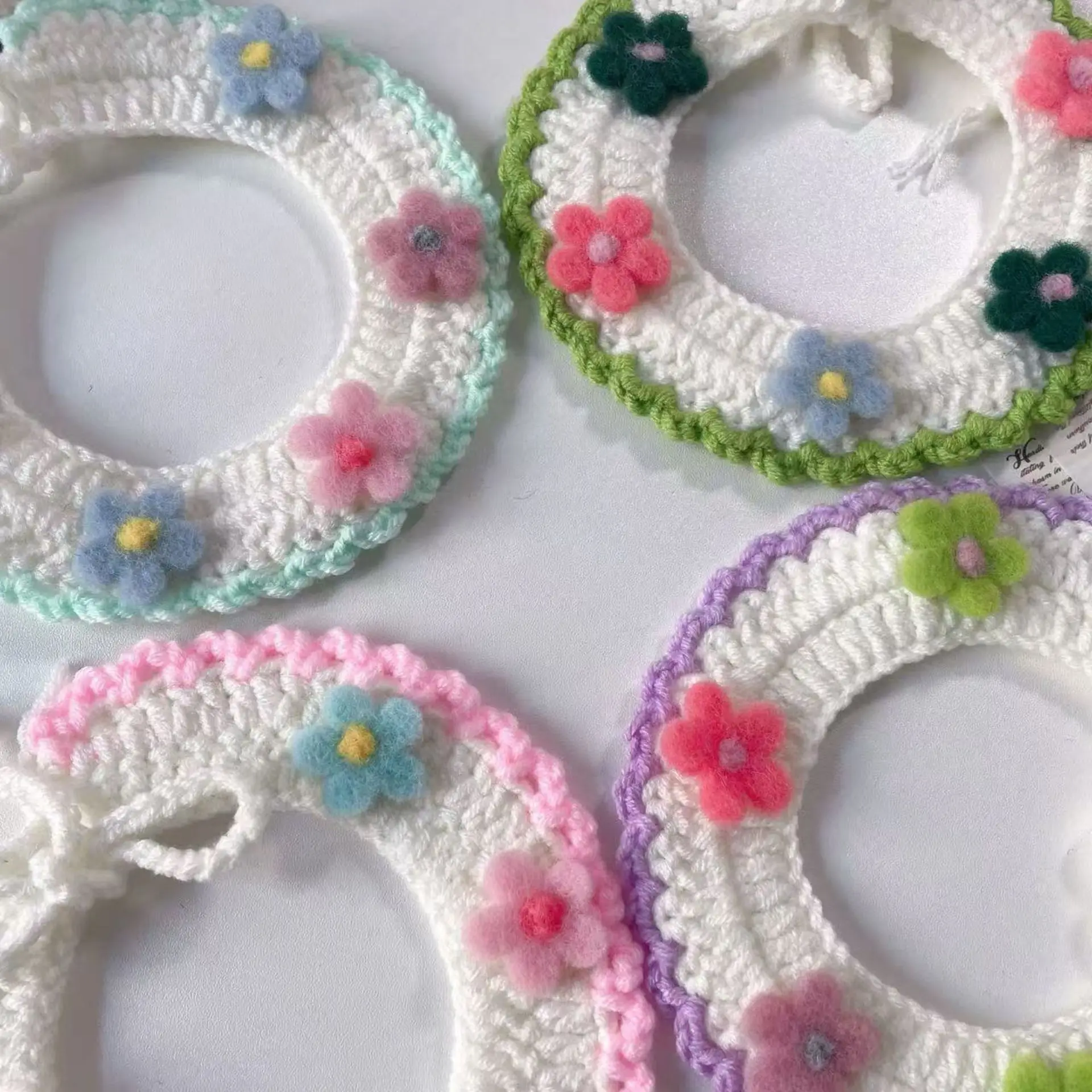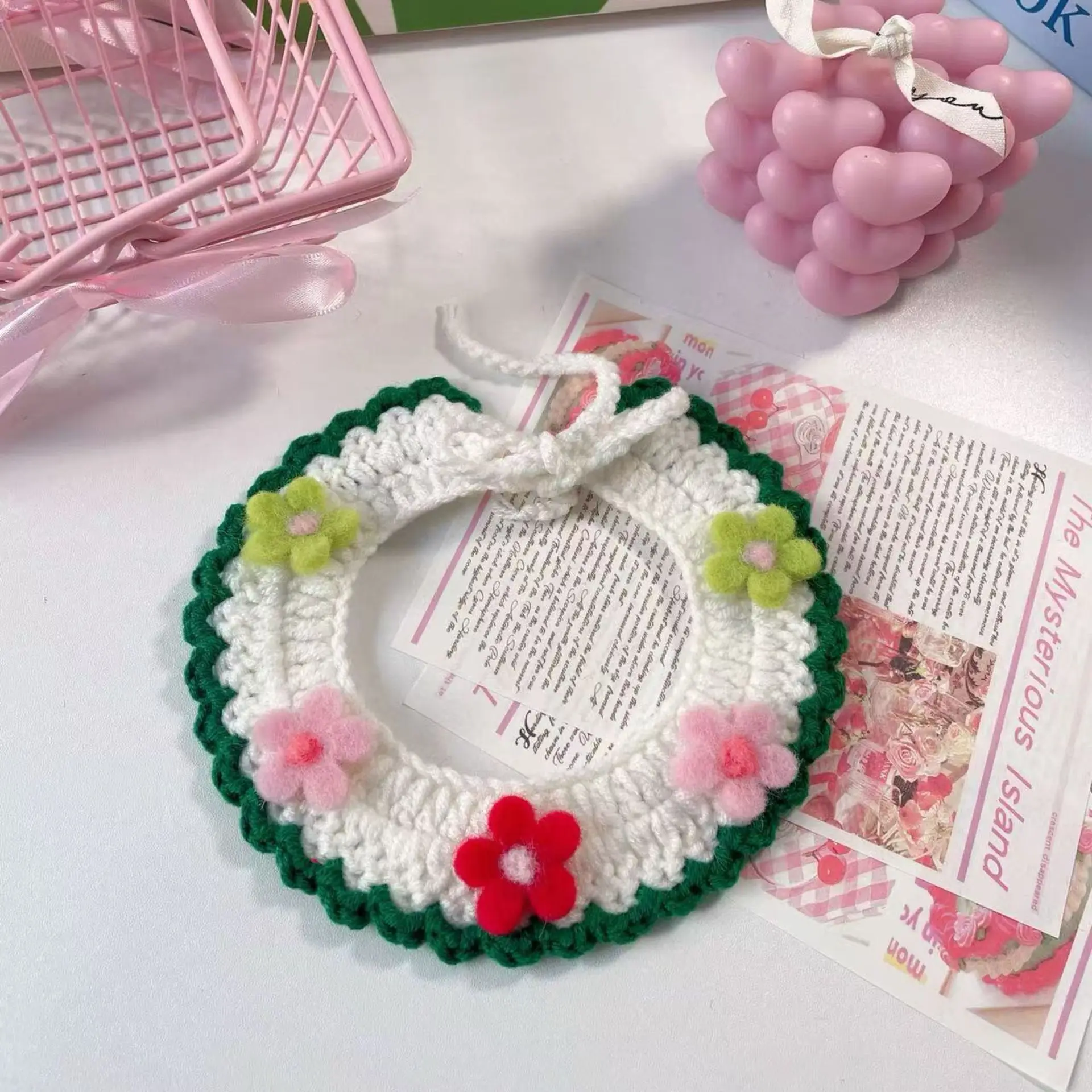 Collar de punto hecho a mano para perros y gatos, bufanda de lana con flores para las cuatro estaciones, bufanda de encaje, Collar de peluche, accesorios para perros pequeños