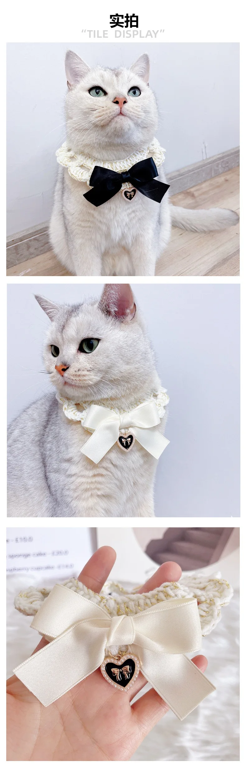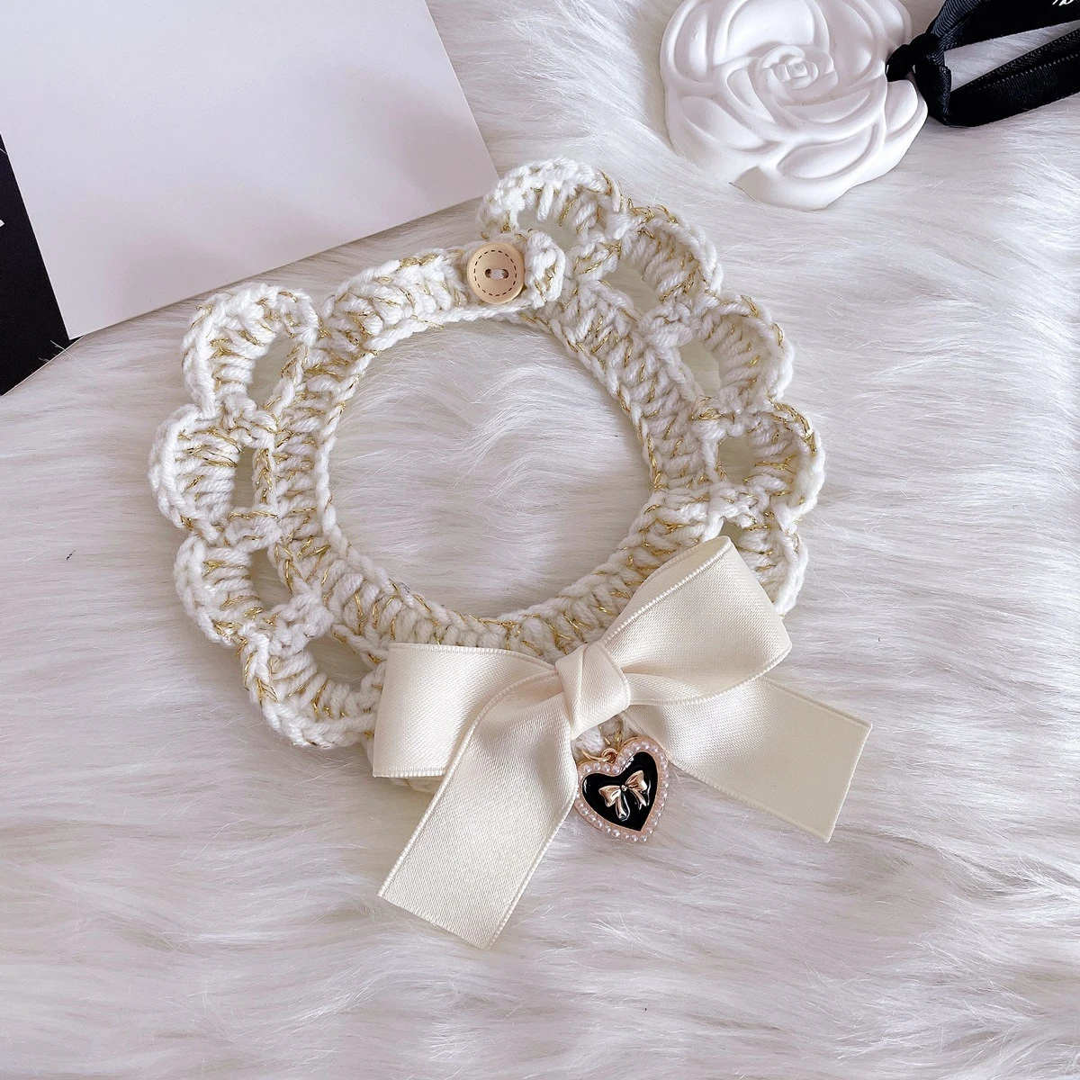 Collar de punto con lazo para mascotas, aro para el cuello con lazo para perro y gatito, gancho de mano, bufanda de lana, accesorios para perros pequeños y cachorros