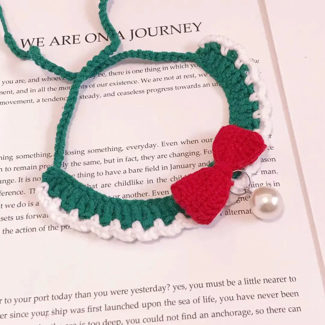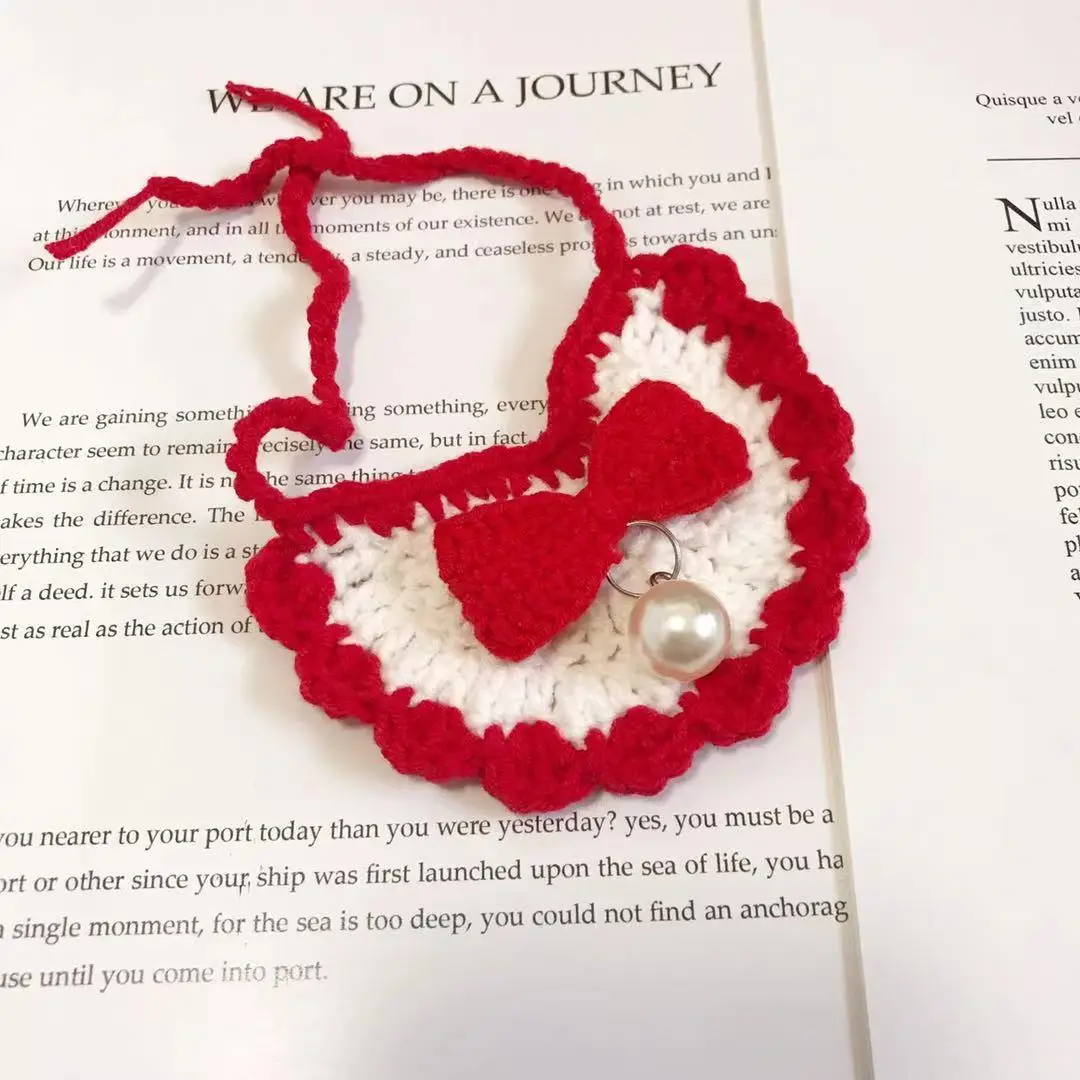 Collar de punto para mascotas del Día de San Valentín, babero tejido a mano para cachorros y gatos, pajarita, pañuelo para el cuello, bufanda roja, accesorios para mascotas, productos
