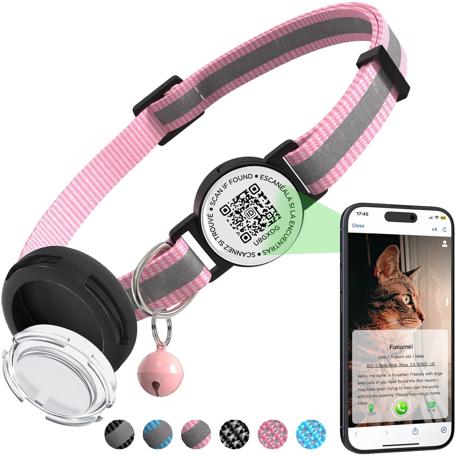 (Etiquetas personalizadas para gatos )El collar personalizado con etiquetas para gatos con código QR proporciona un perfil en línea personalizable e información de emergencia en microchip.Cuando los buscadores escan el código QR, recibirás una alerta en tiempo real por correo electrónico o llamada telefónica, no es un rastreador GPS.