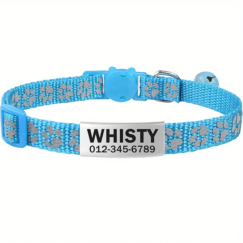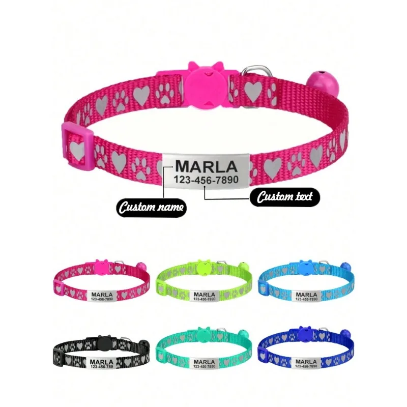Collar reflectante para gatos, etiqueta grabada, collares seguros para gatitos con campana, collar para cachorros, accesorios para gatos, perros pequeños, Chihuahua