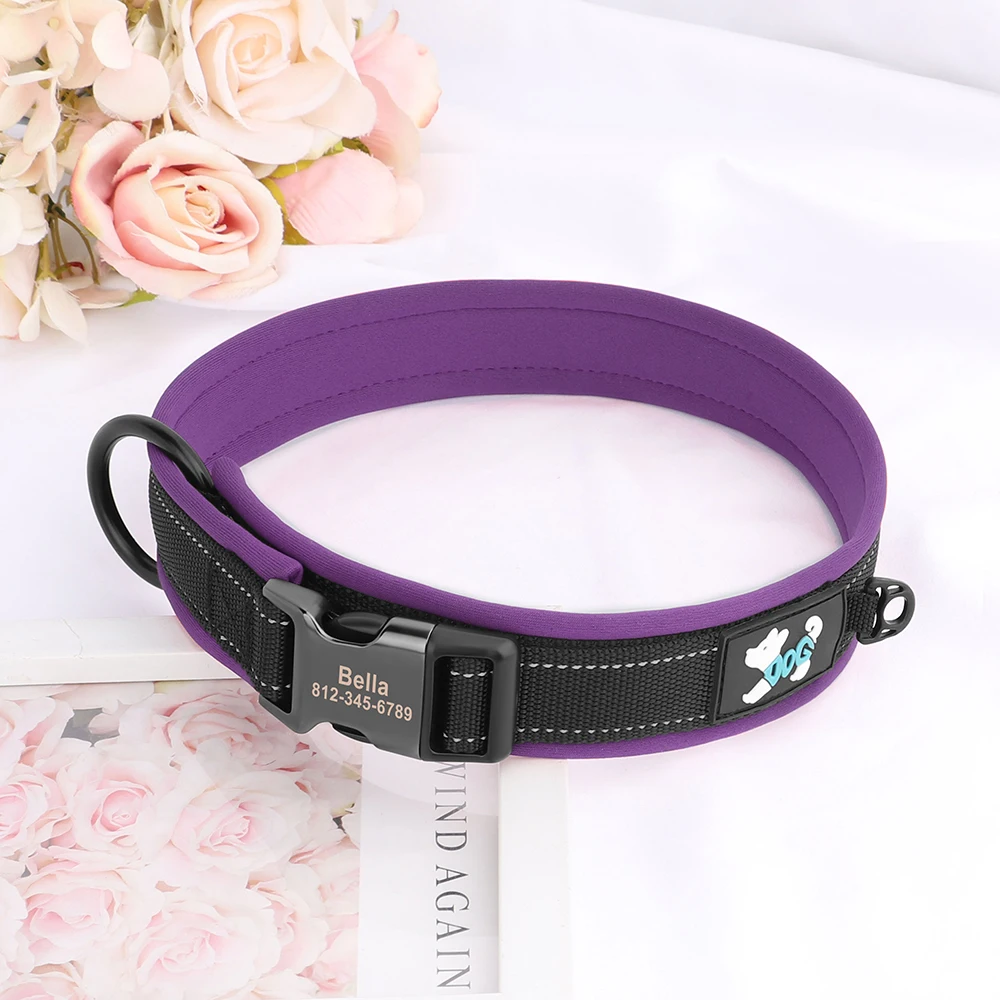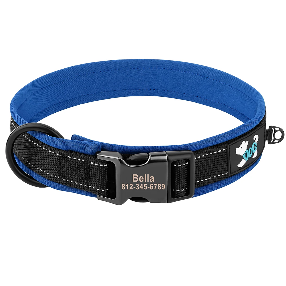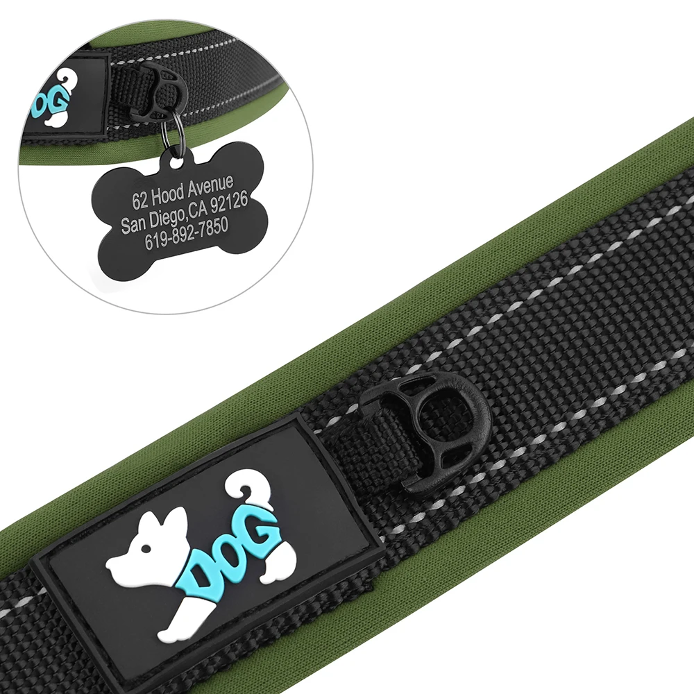 Reflective Dog Collar Personalized ID Buckle Collars Free Engrave Soft Padded Dogs Collar Adjustable for Small Medium Large Dogs