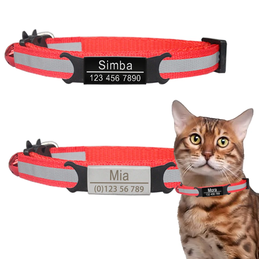 Artículo:ID personalizadoCollar de seguridad ajustable de nailon de alta calidad para gatos perros pequeños