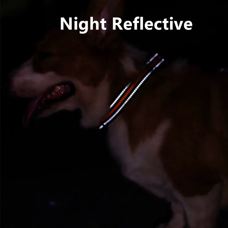 Collar reflectante de nailon para perro, cadena ajustable para caminar, impermeable, producto para mascotas