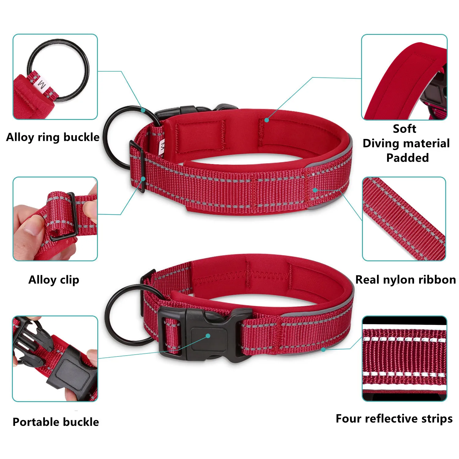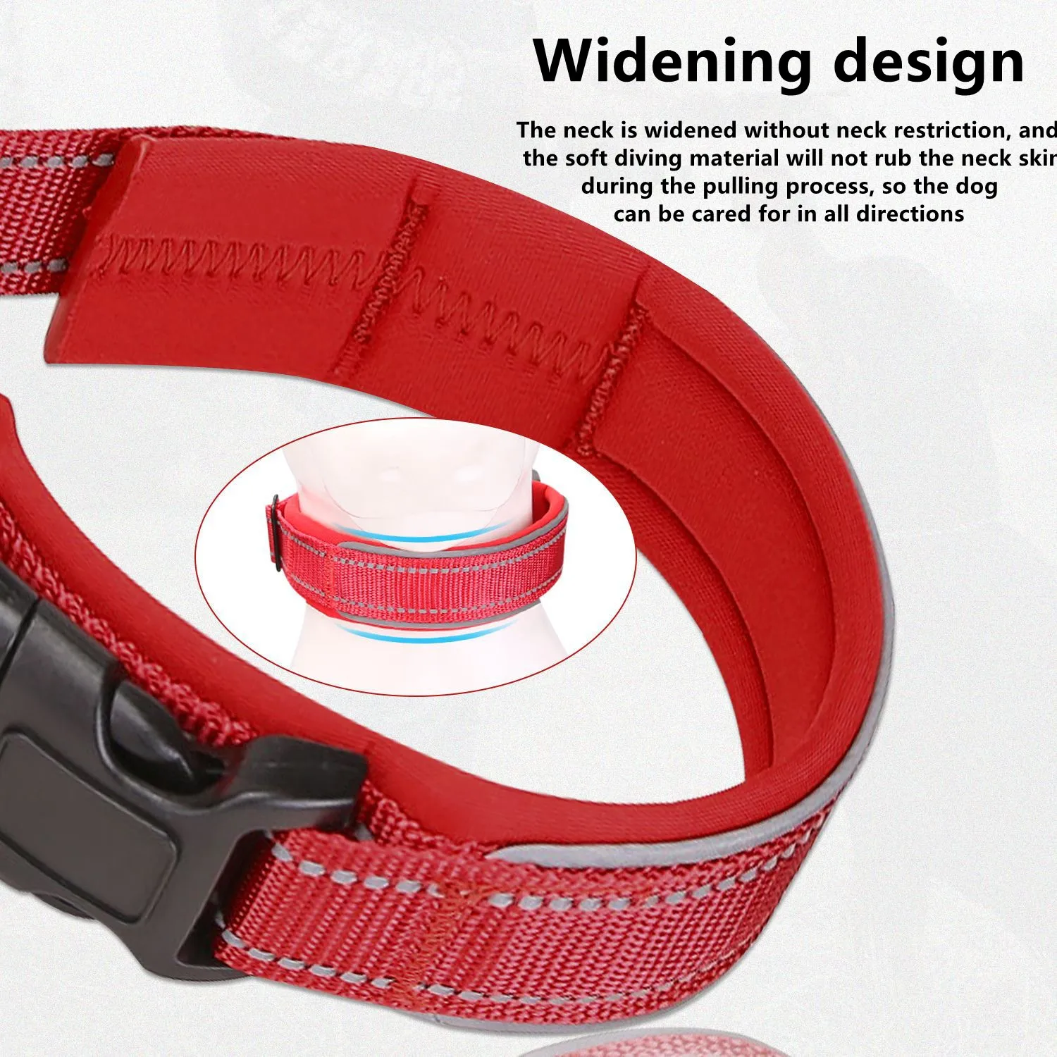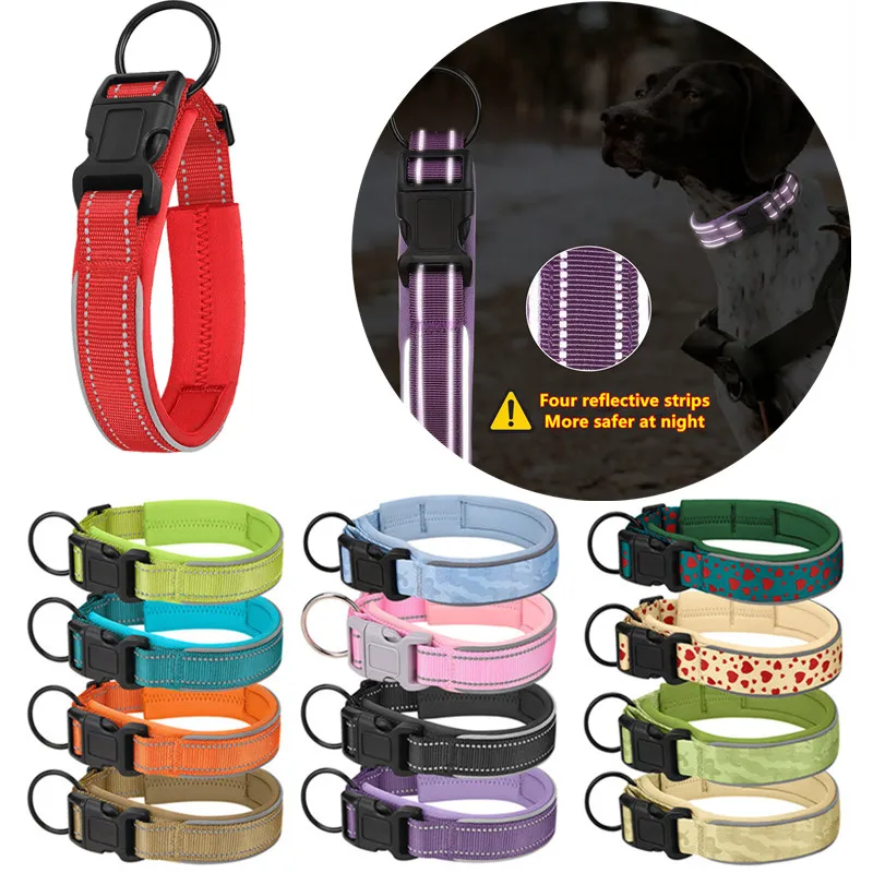 Collar reflectante de nailon para perros, Material de buceo, collares ajustables con acolchado, duradero, para perros medianos y grandes