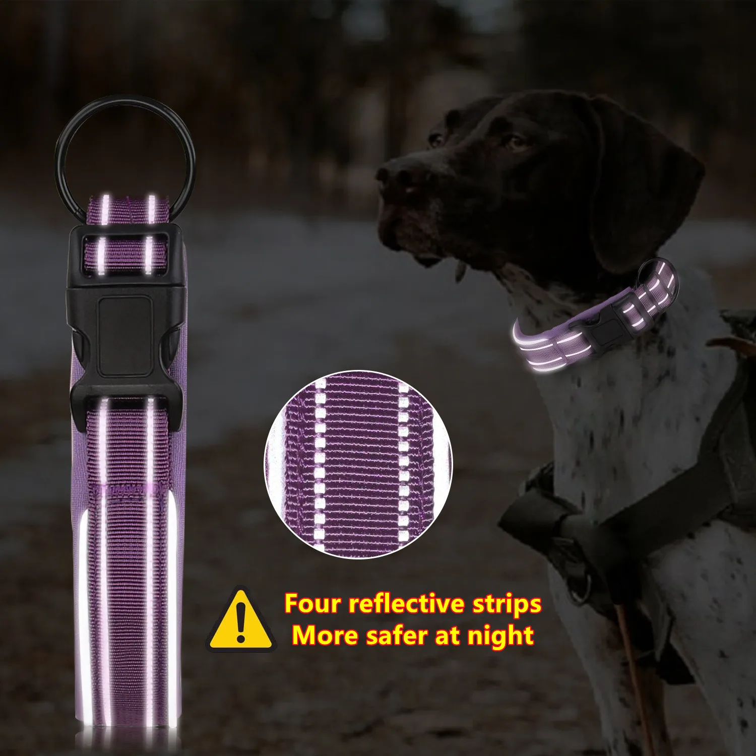 Ajustable y reflectante: el collar tiene 4 tiras reflectantes, es más seguro. Tiene 4 tamaños, se puede ajustar para todas las razas.