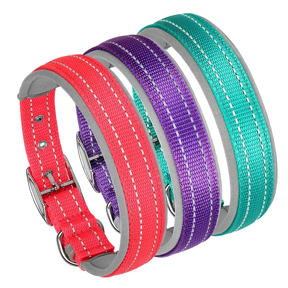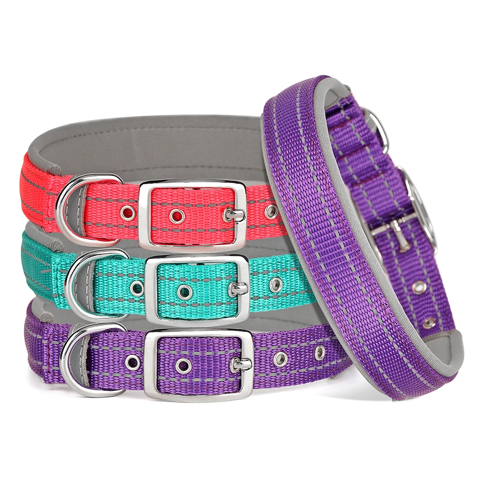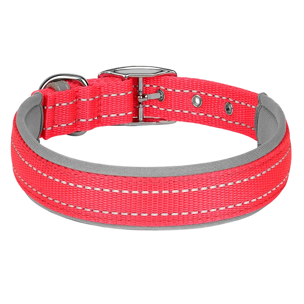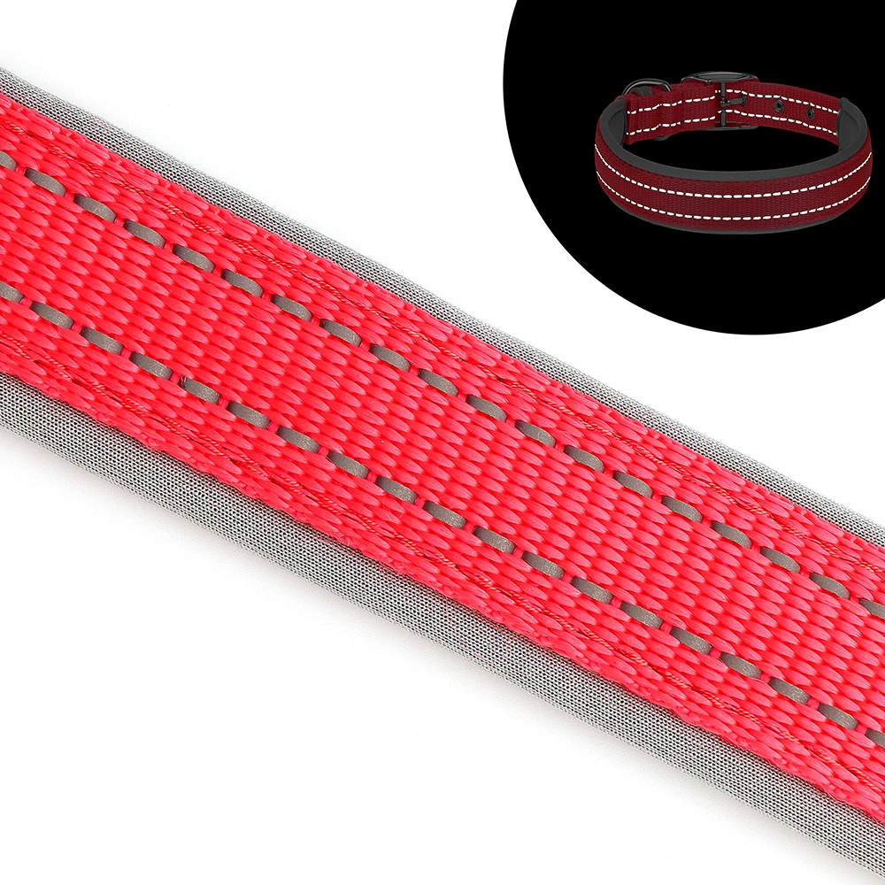 Collar reflectante de nailon suave para perros, collares seguros y fuertes para perros, collares acolchados duraderos para cachorros para perros pequeños, medianos y grandes, Pug