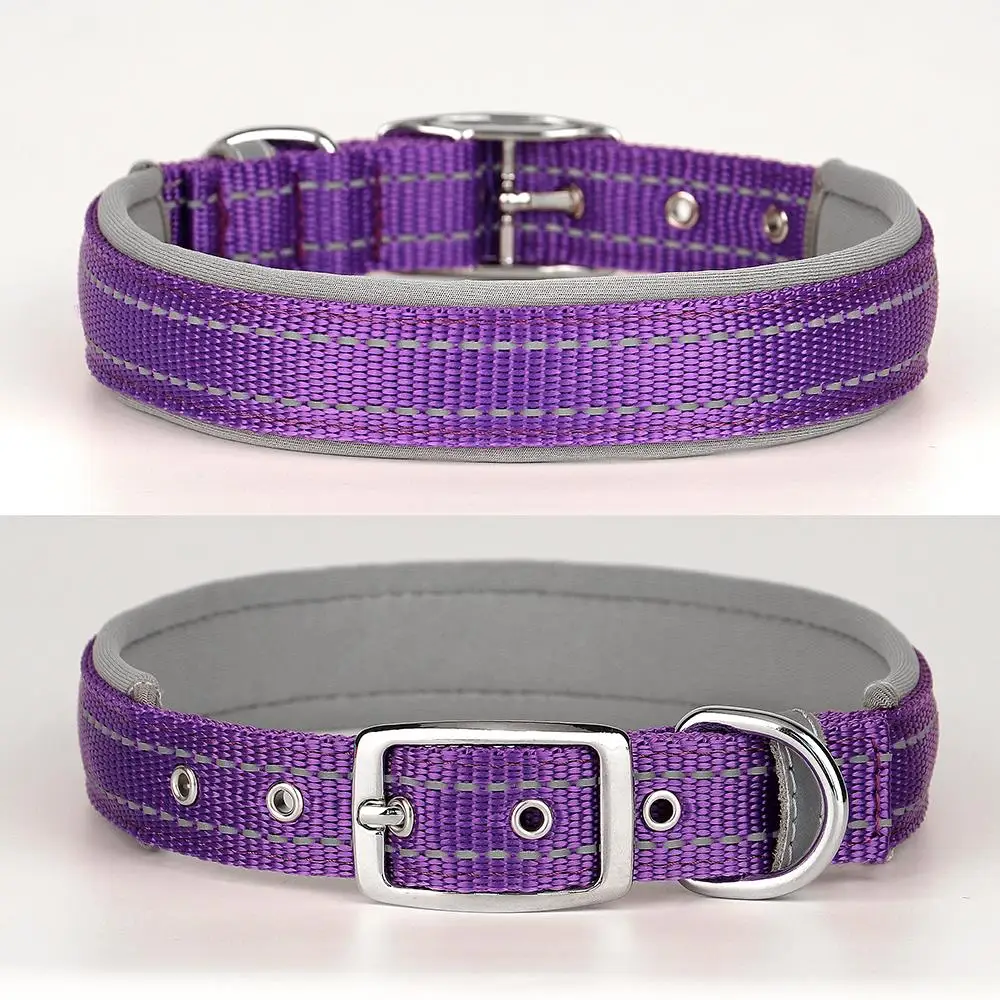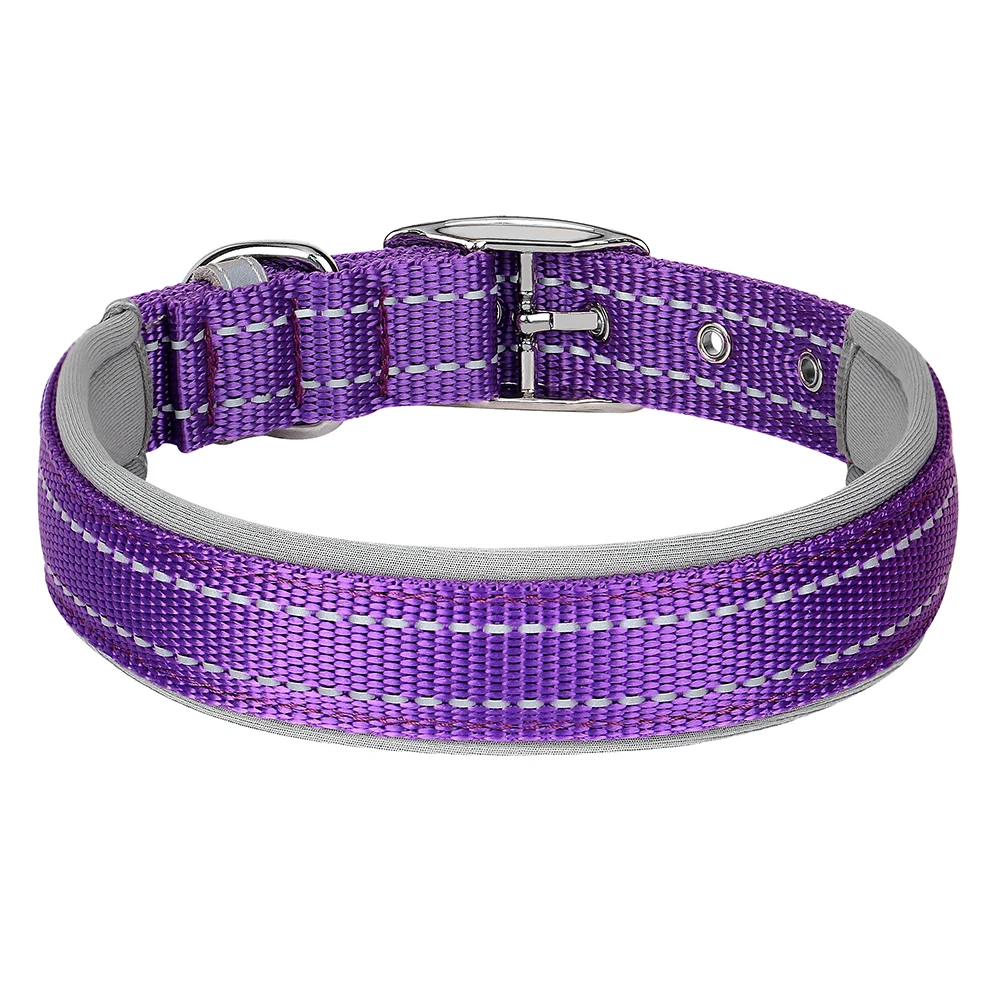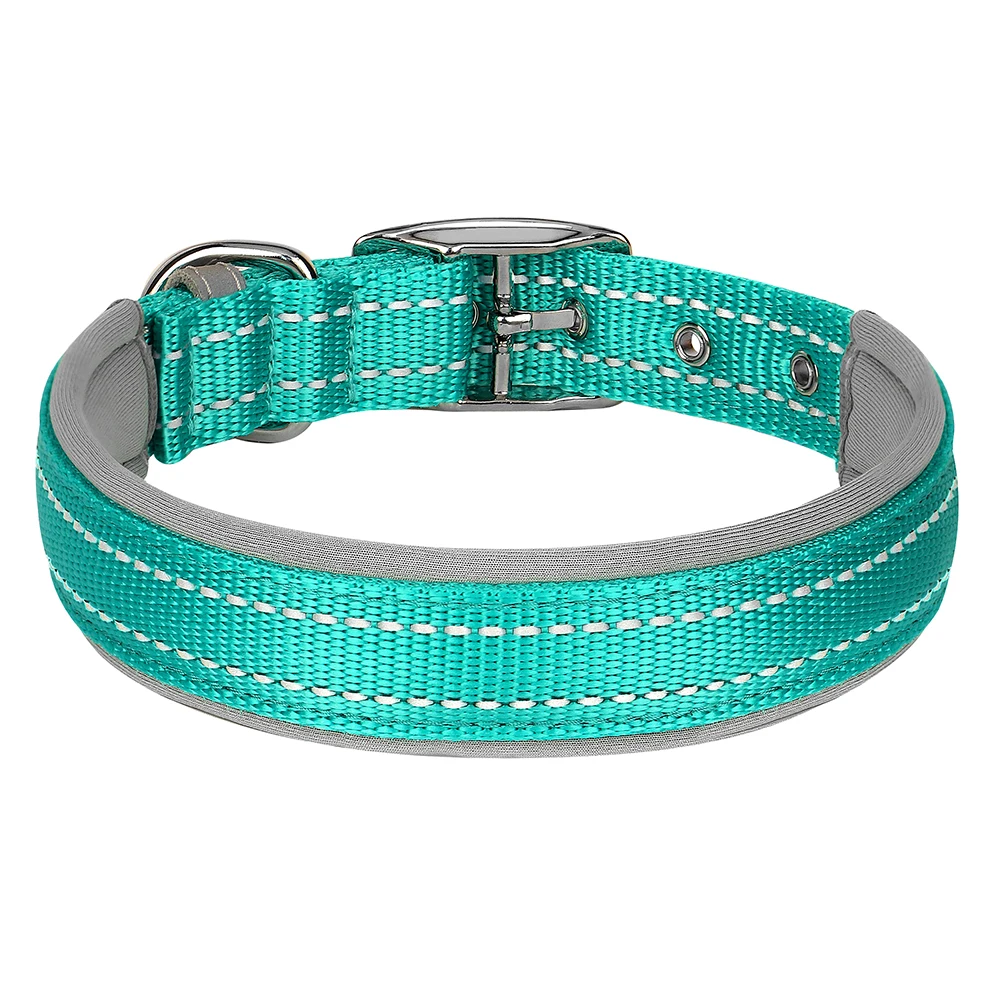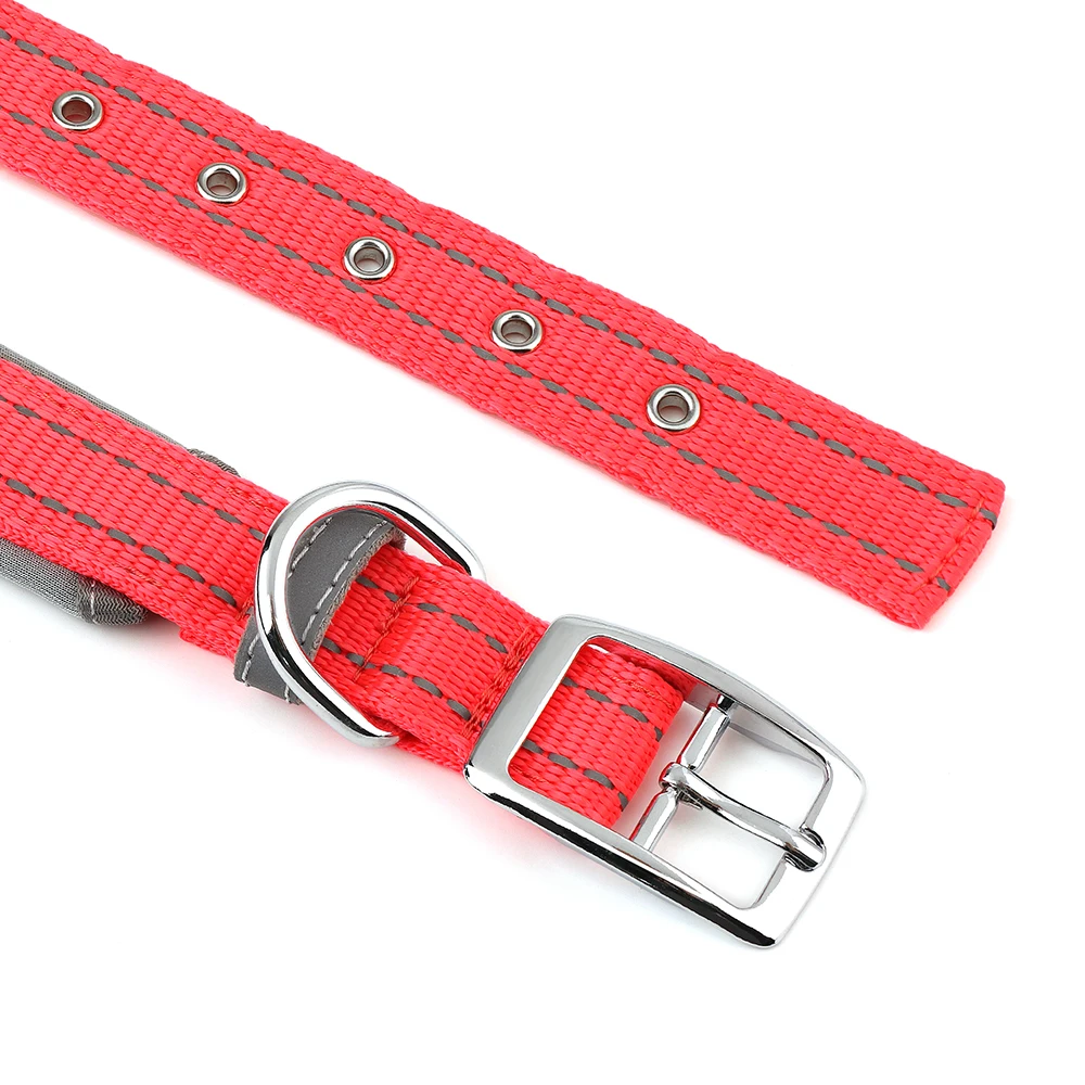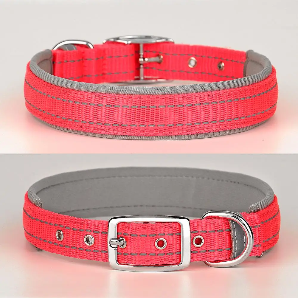 Collar reflectante de nailon suave para perros, collares seguros y fuertes para perros, collares acolchados duraderos para cachorros para perros pequeños, medianos y grandes, Pug