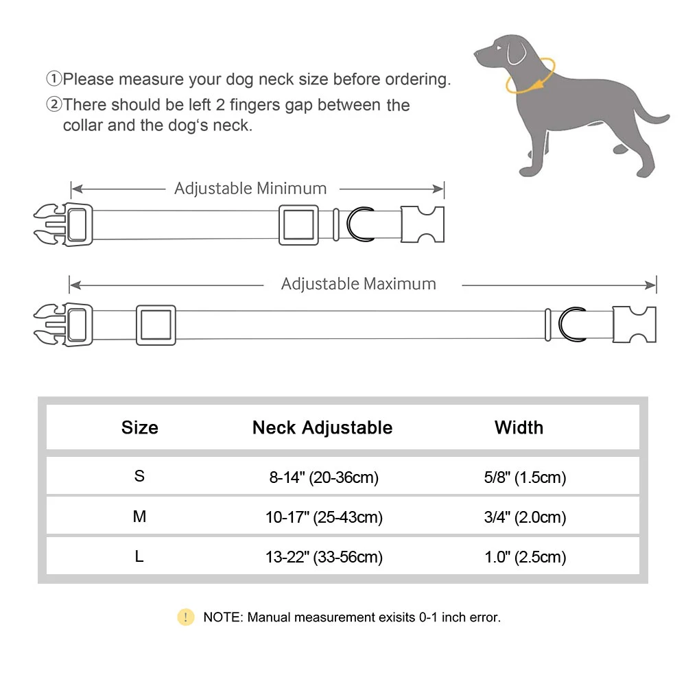 Collar reflectante para perro mascota de 6 colores, collares de nailon transpirable para perro, collares ajustables para cachorros para perros pequeños y medianos Pug