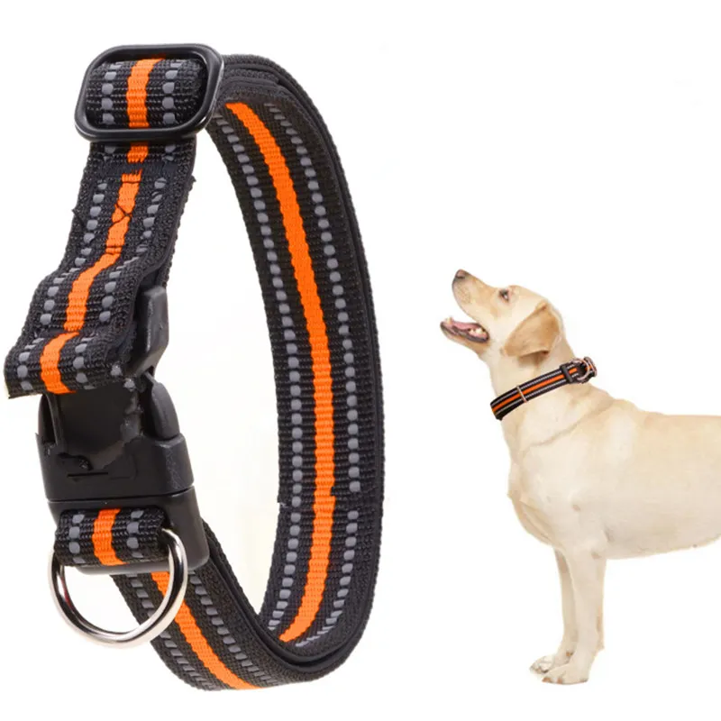 Collar reflectante para perros, Collar con anillo en D para caminar, ajustable, cadenas de nailon para mascotas, andador, suministros para mascotas