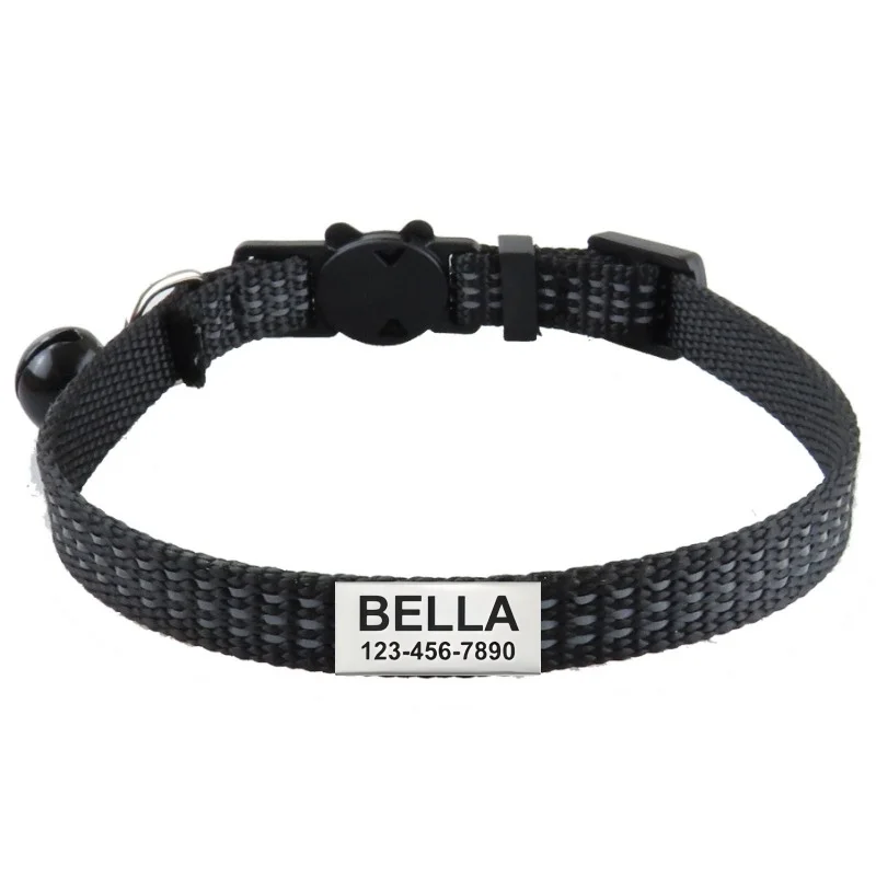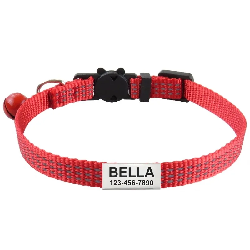 Collar reflectante personalizado con nombre de gato y etiqueta de identificación, accesorios personalizados de liberación rápida para perros pequeños, Collar para gatos, grabado gratis