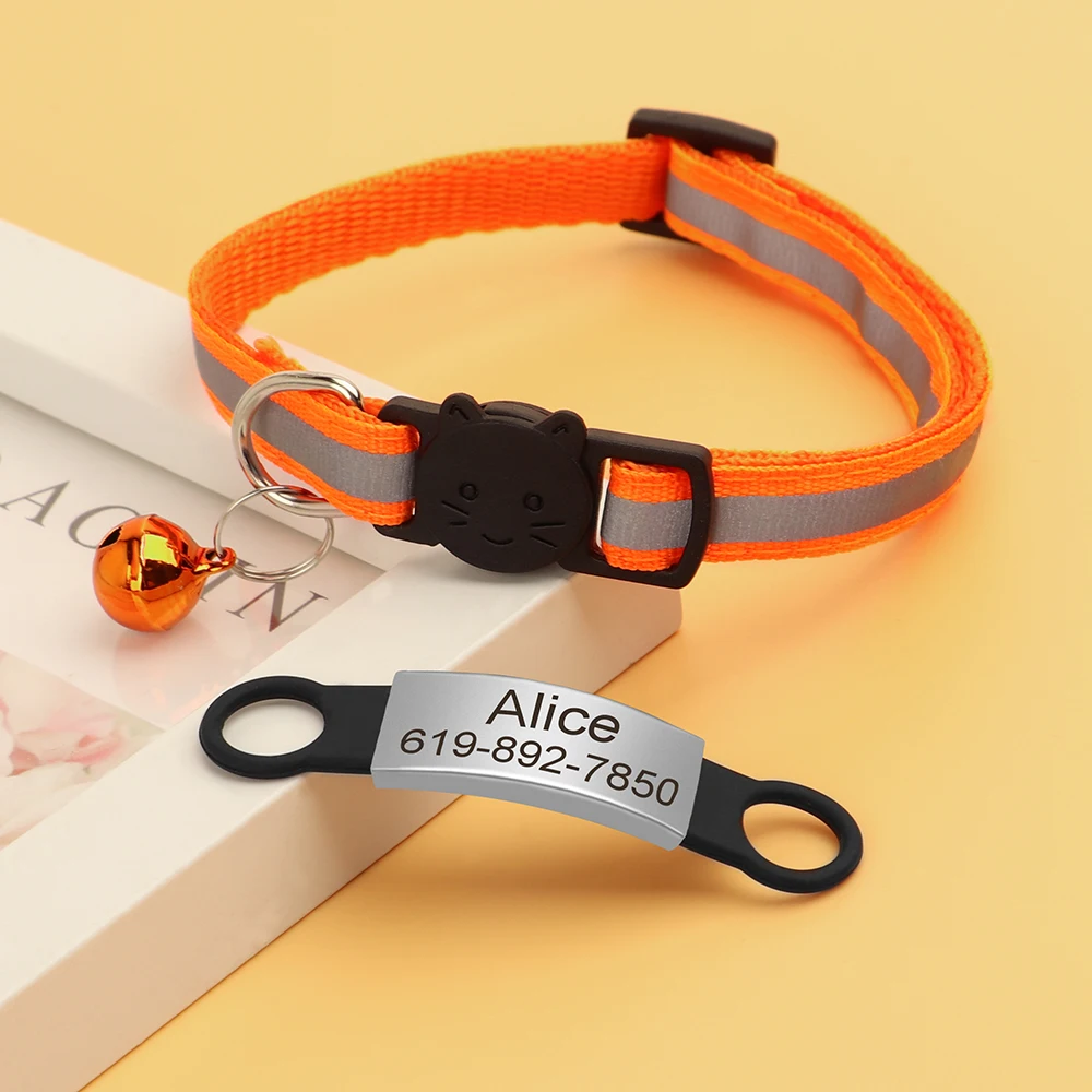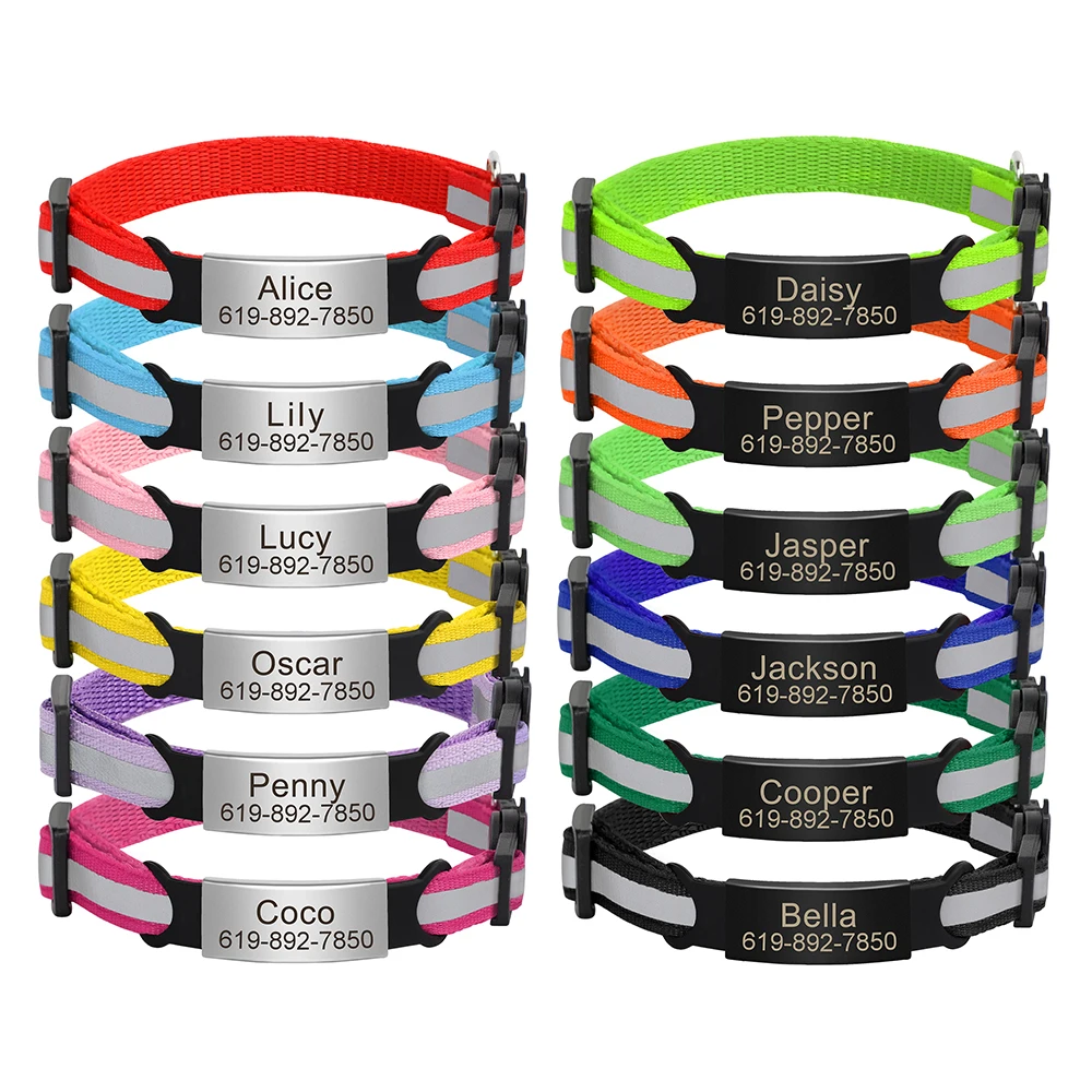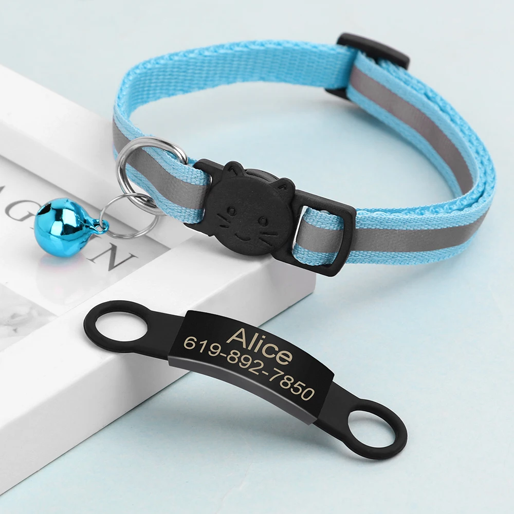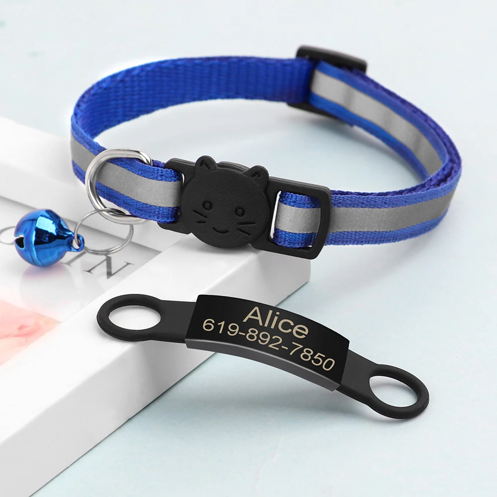Reflective Personalized Cat Name ID Tag Collar Accessories Custom Quick Release Small Dogs Cats Necklace Collar Free Engraving